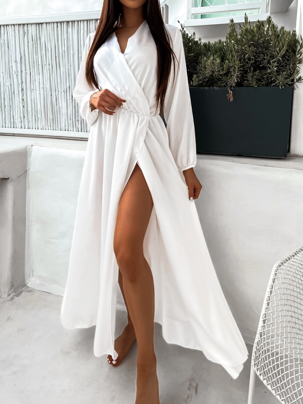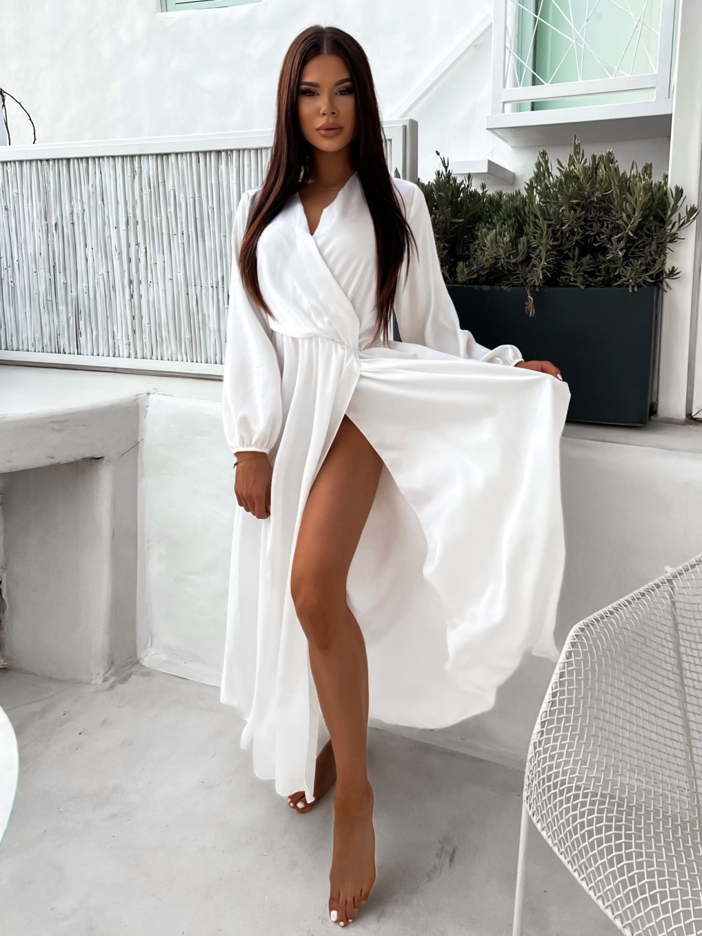 Bílé elegantní šaty WOMAN s dlouhým rukávem