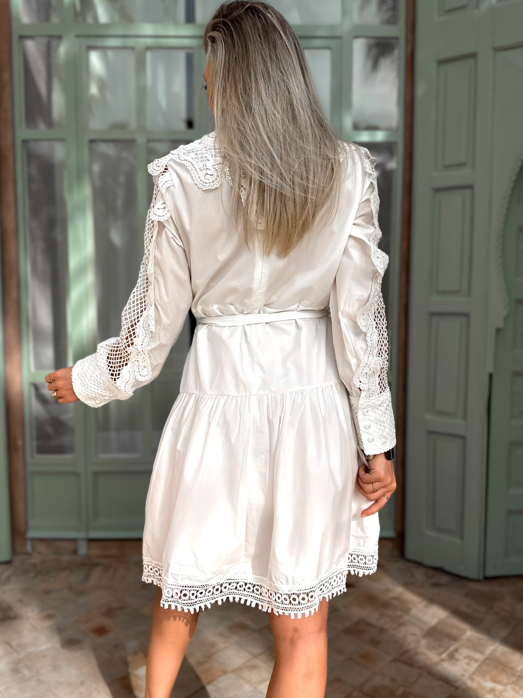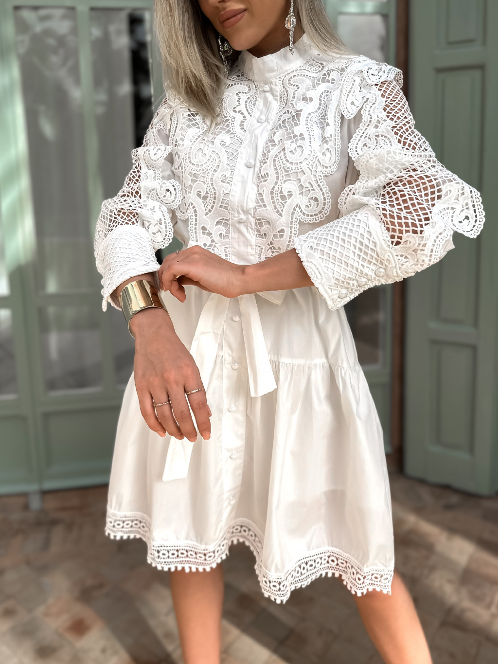 Bílé košilové krajkové šaty RAYNAS