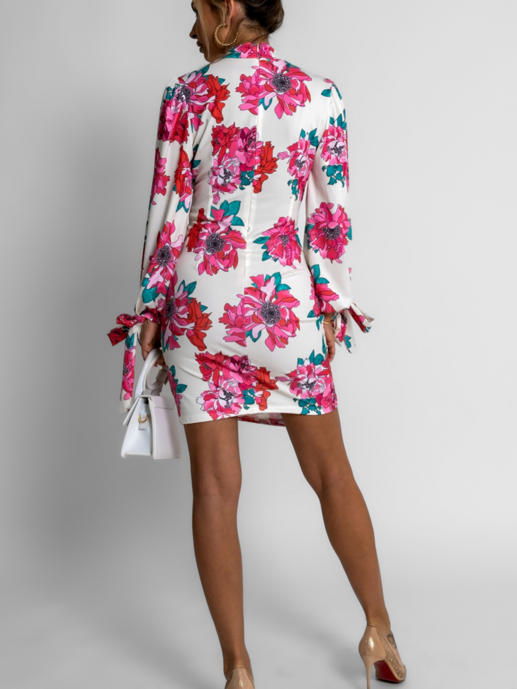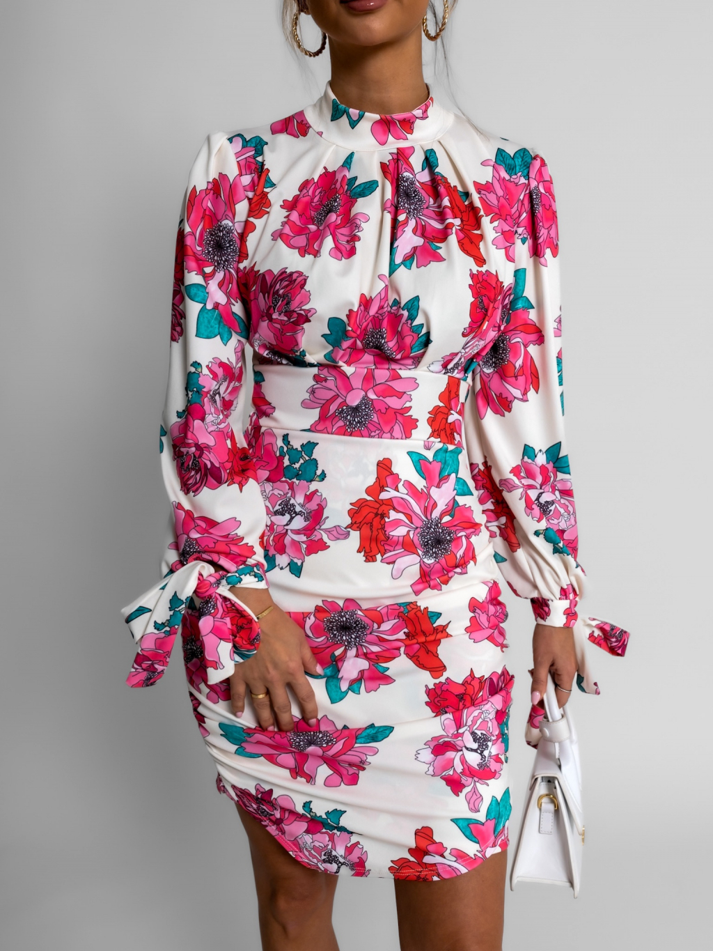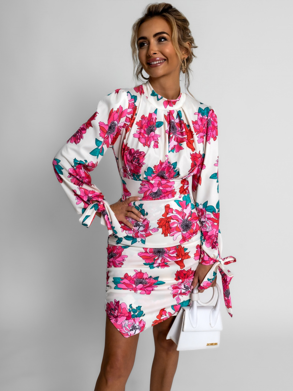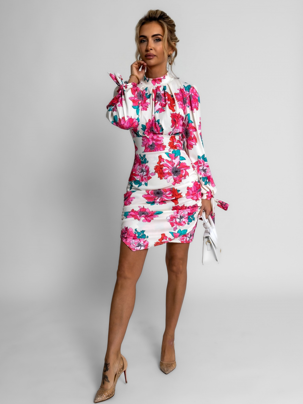 Bílé krátké šaty BRAIS s květinovým vzorem