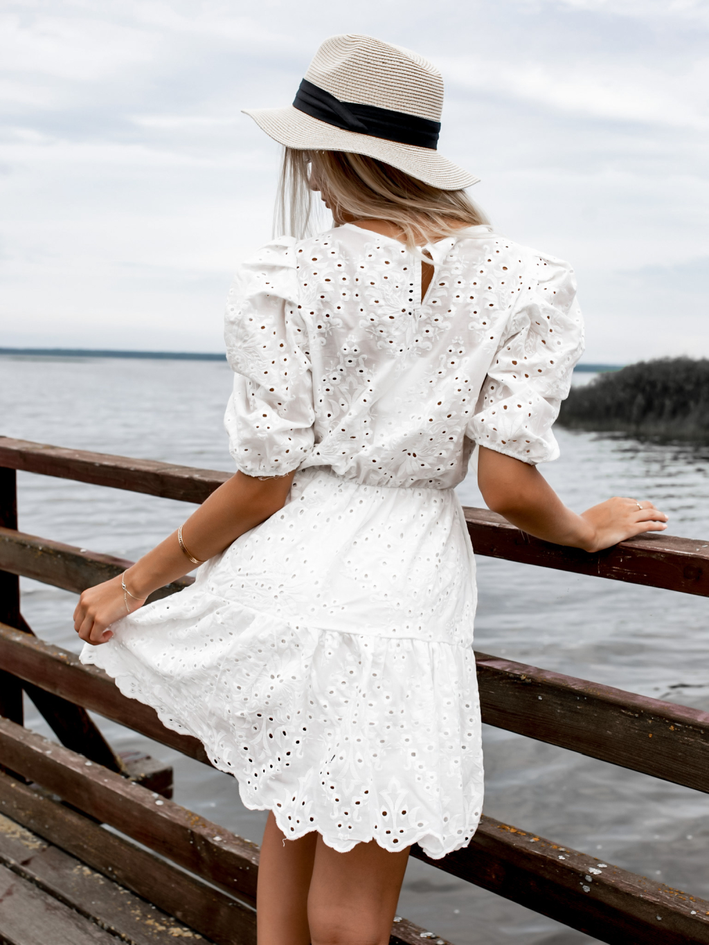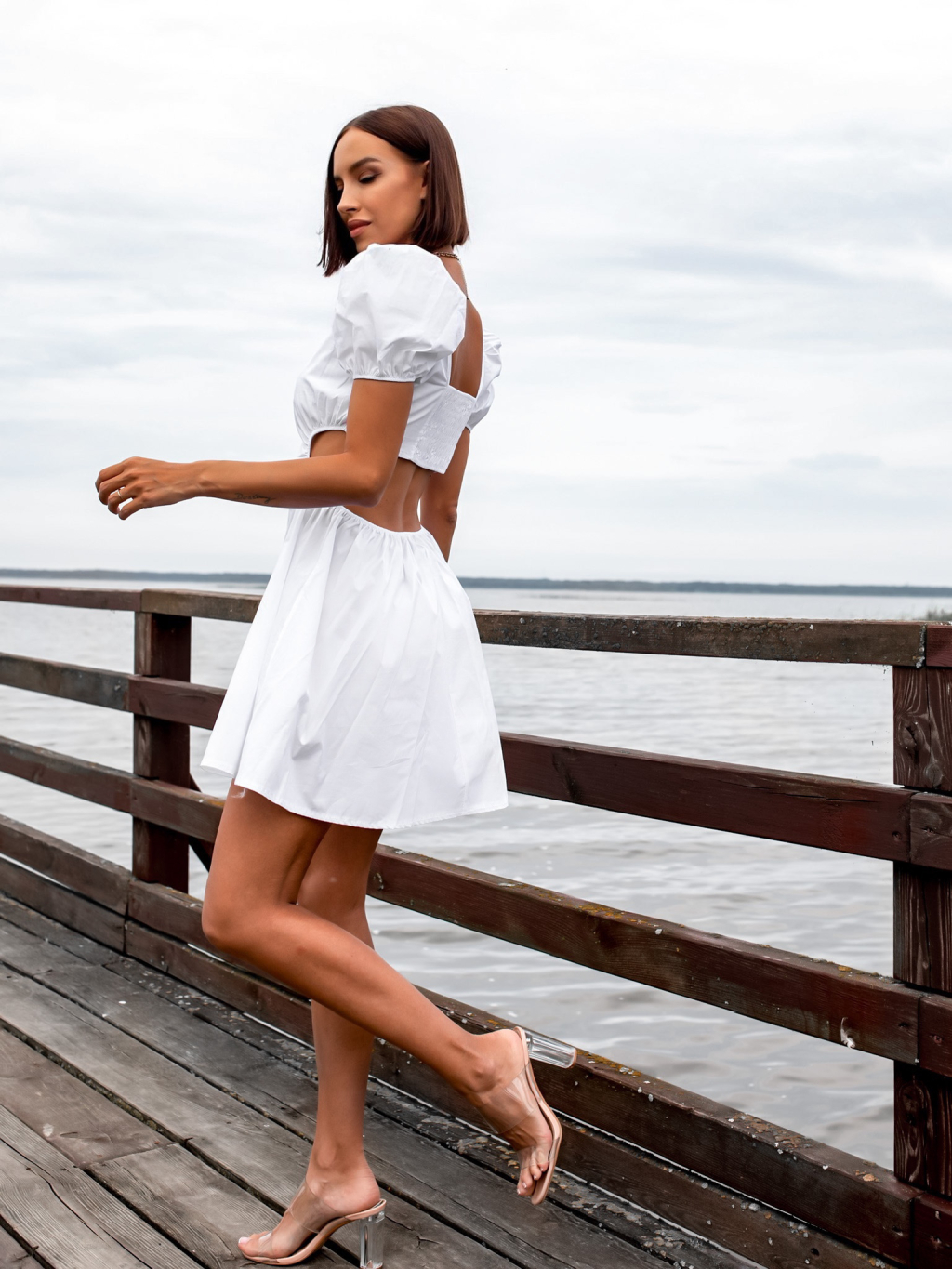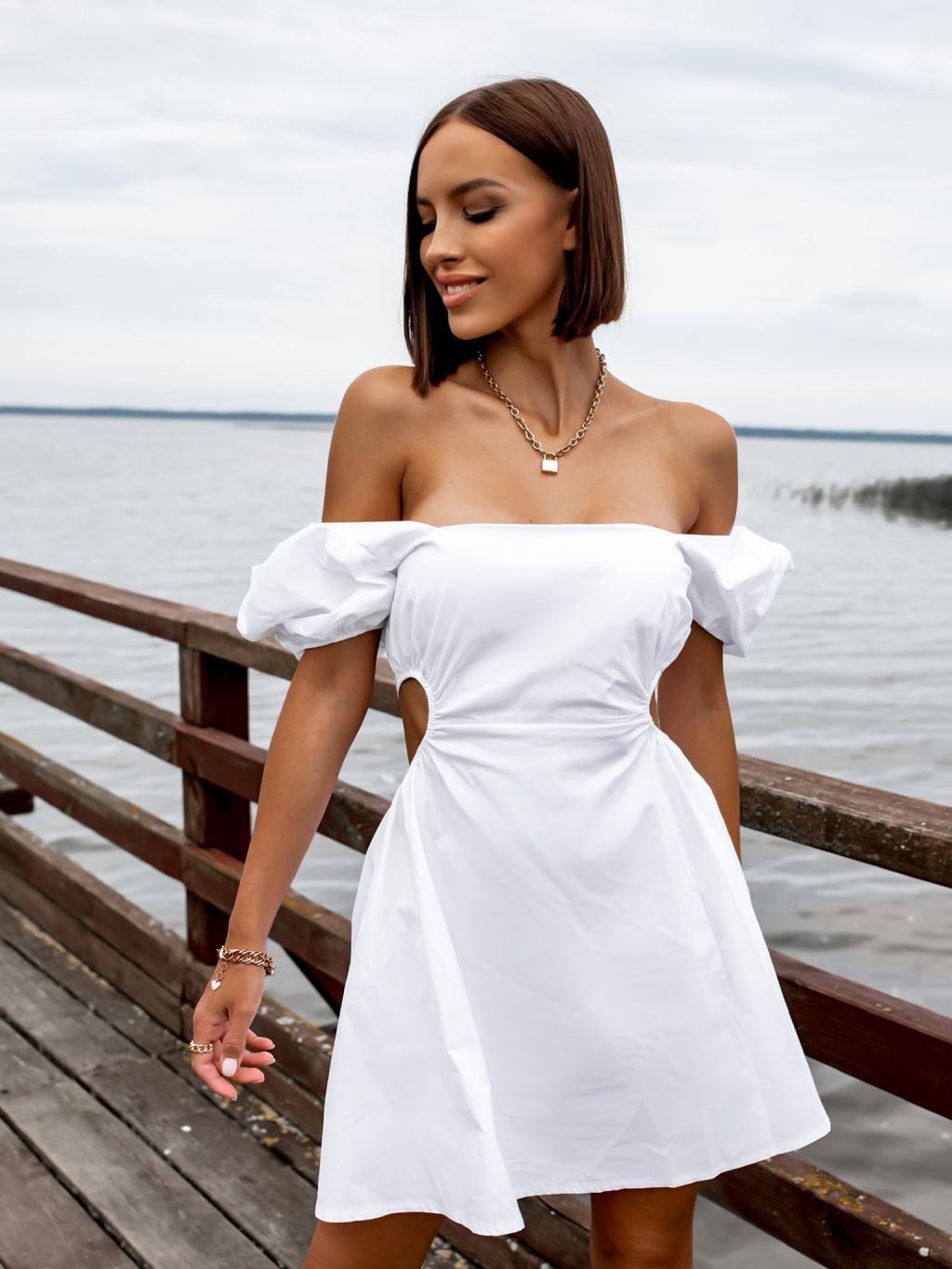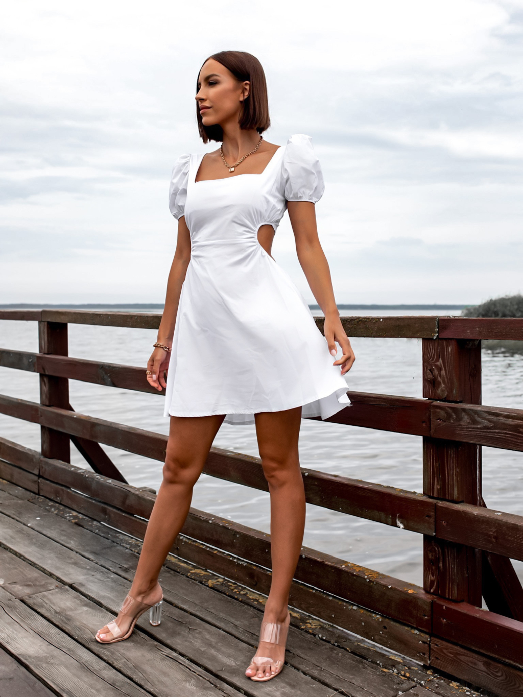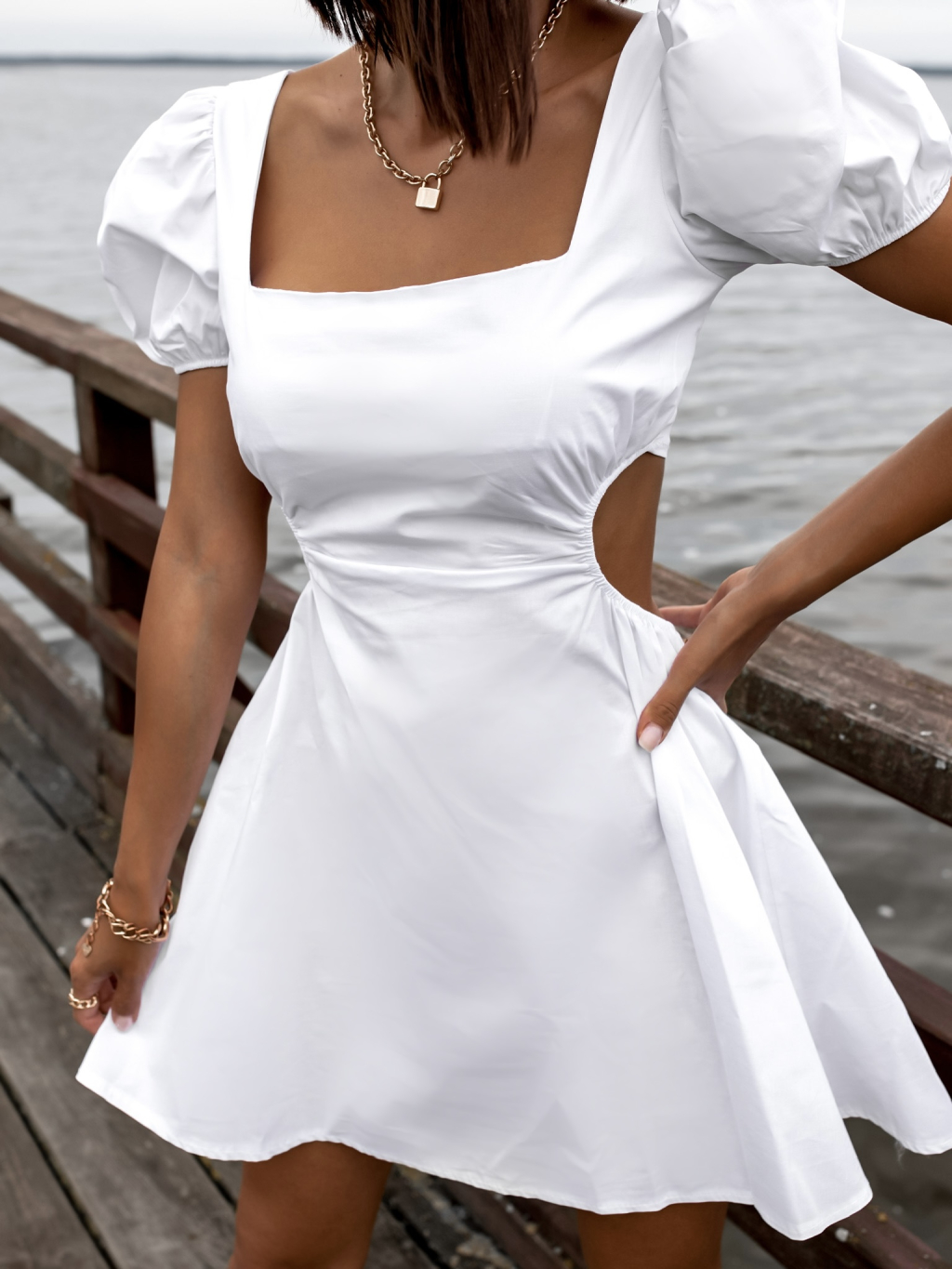 Bílé kratší šaty GROW s průstřihy