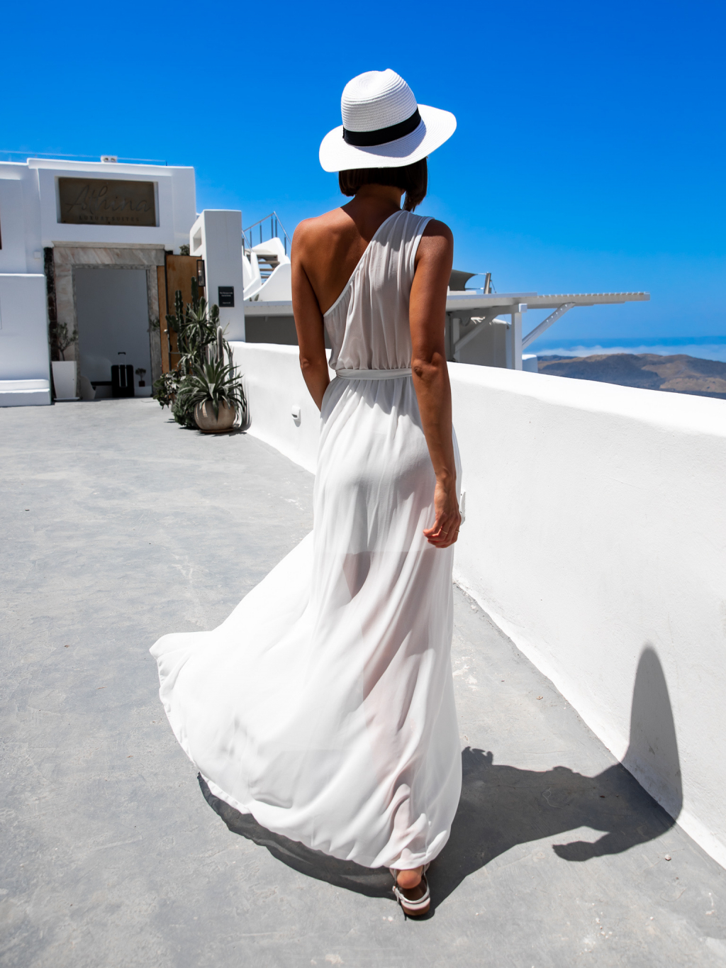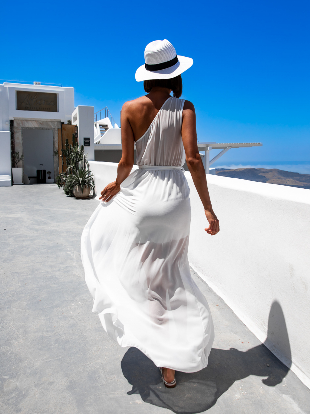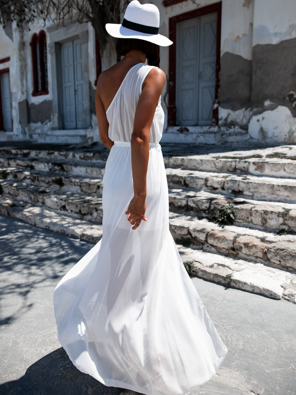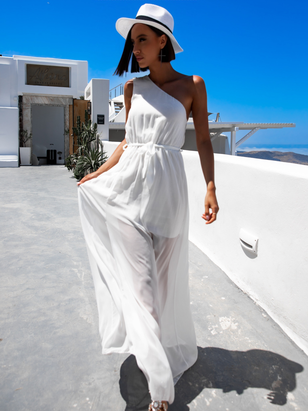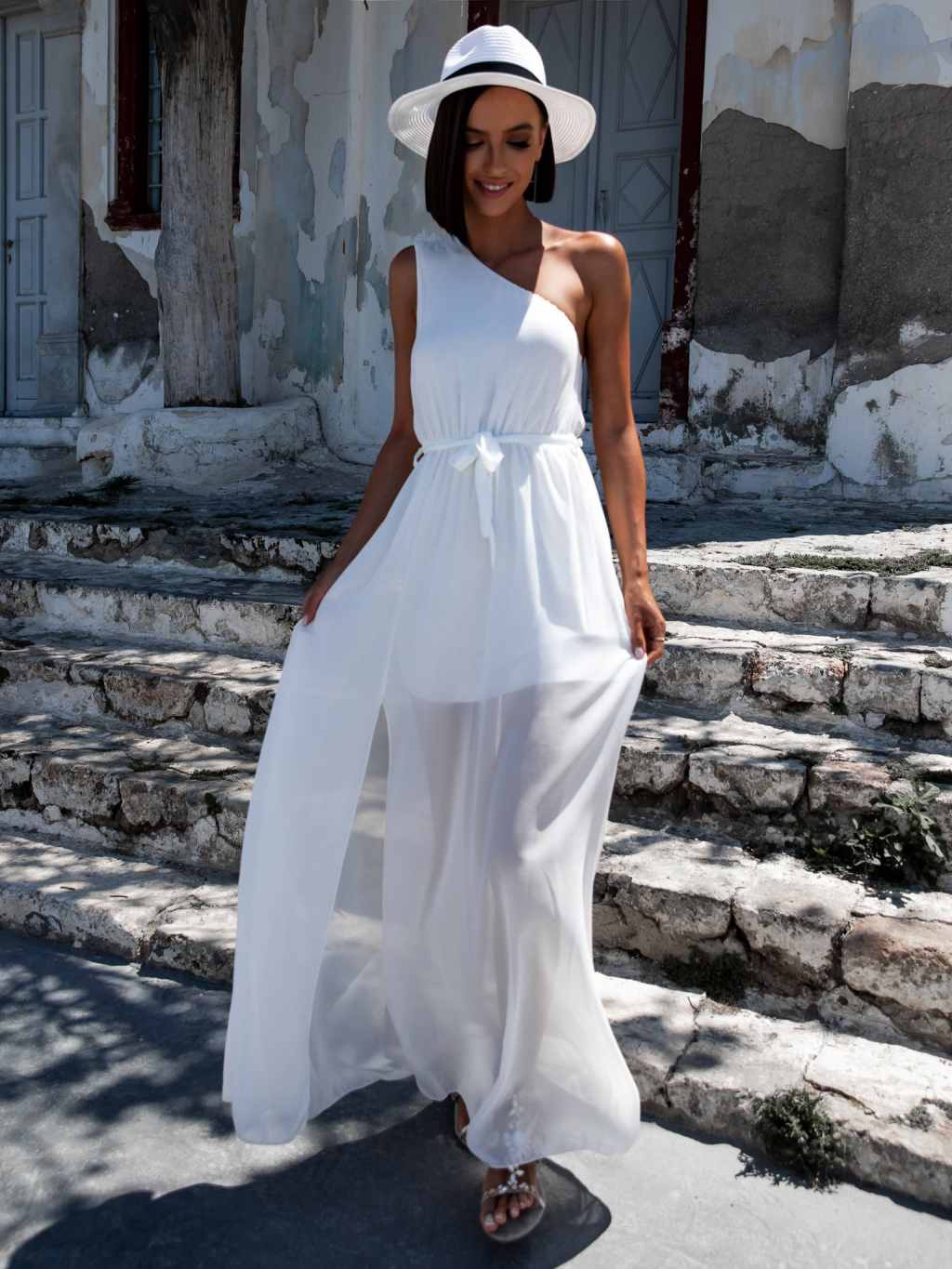 Bílé lehké dlouhé šaty LORRI na jedno rameno