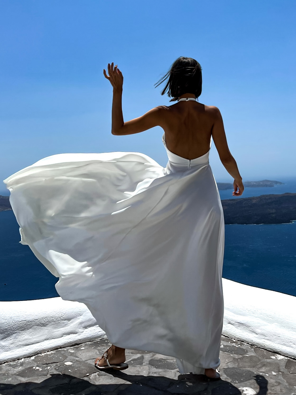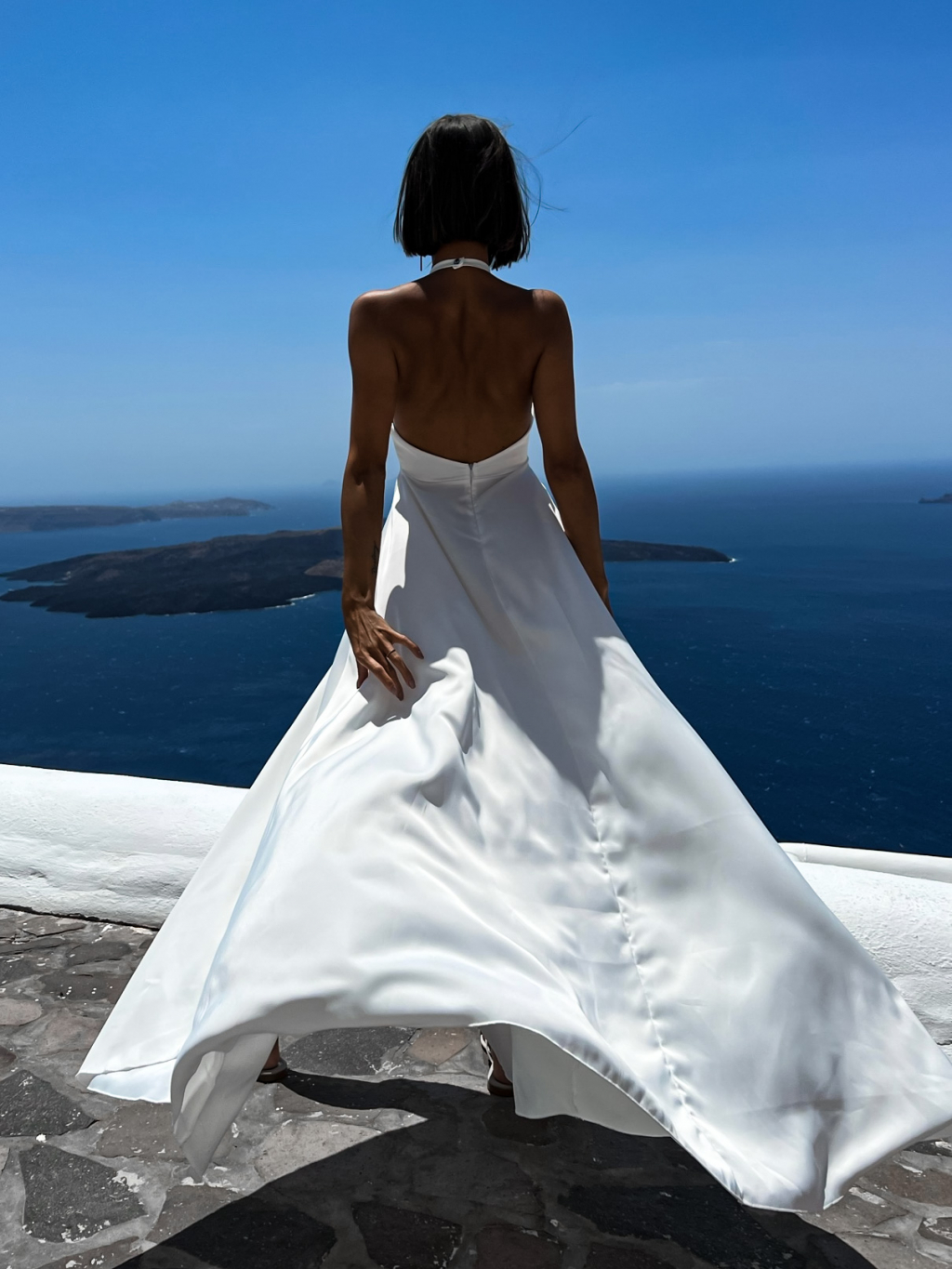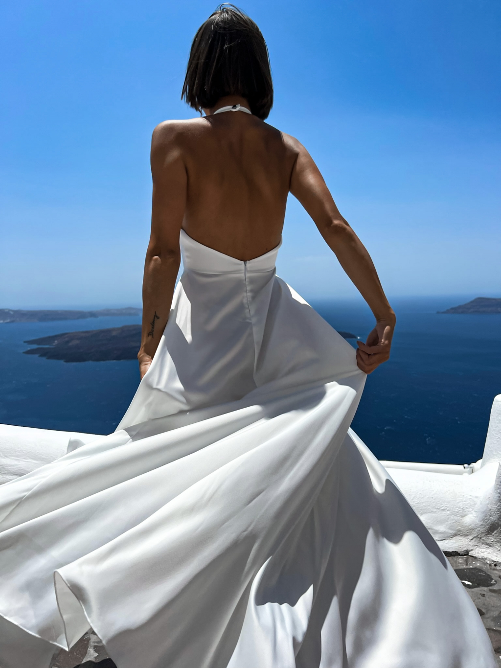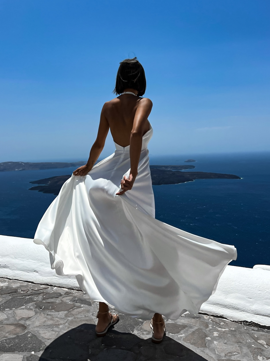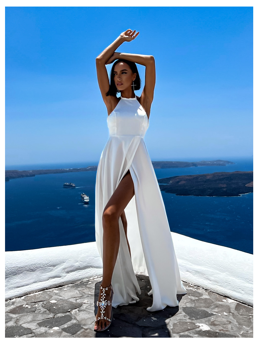 Bílé lesklé elegantní šaty KENNEDIA s rozparkem