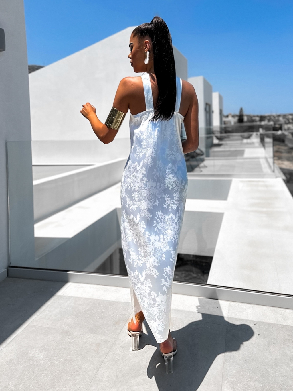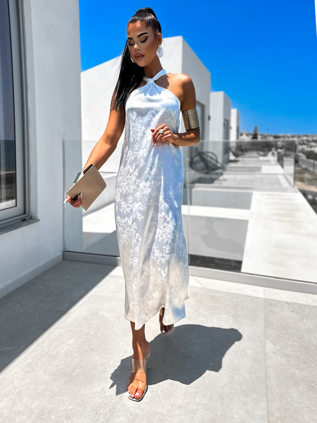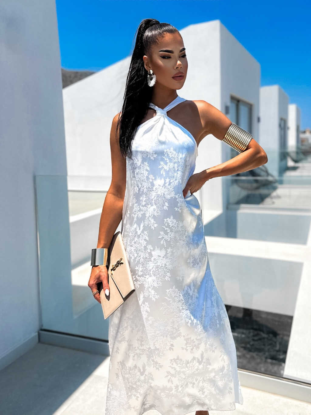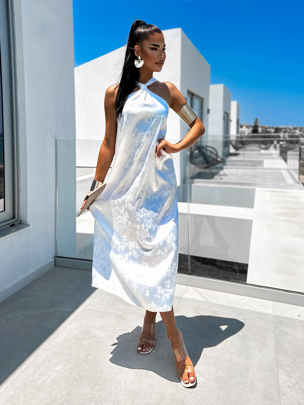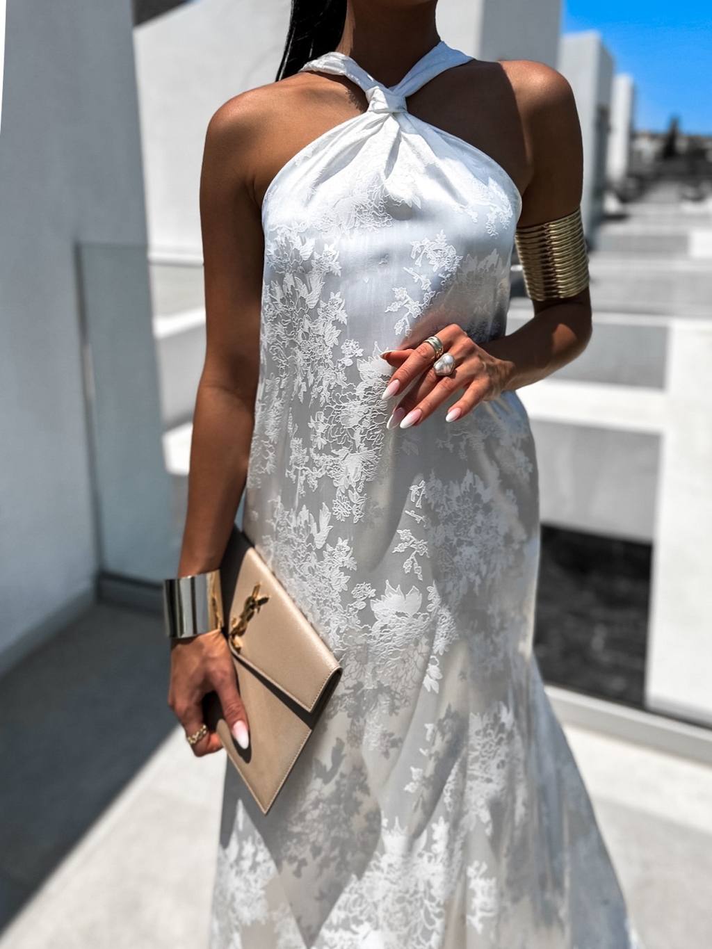 Bílé lesklé elegantní šaty TARSENTI se vzory