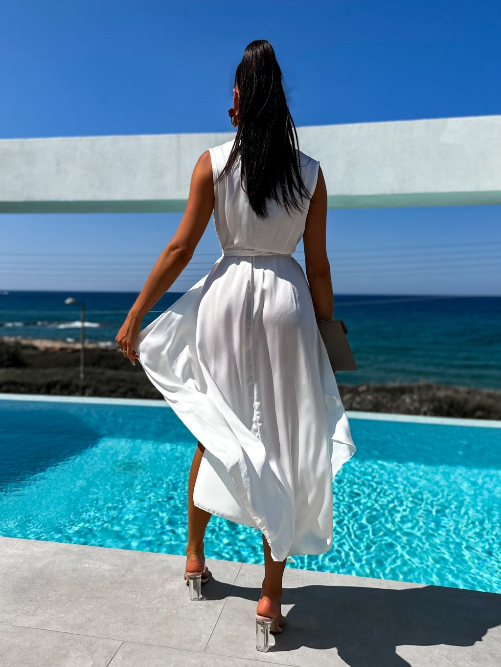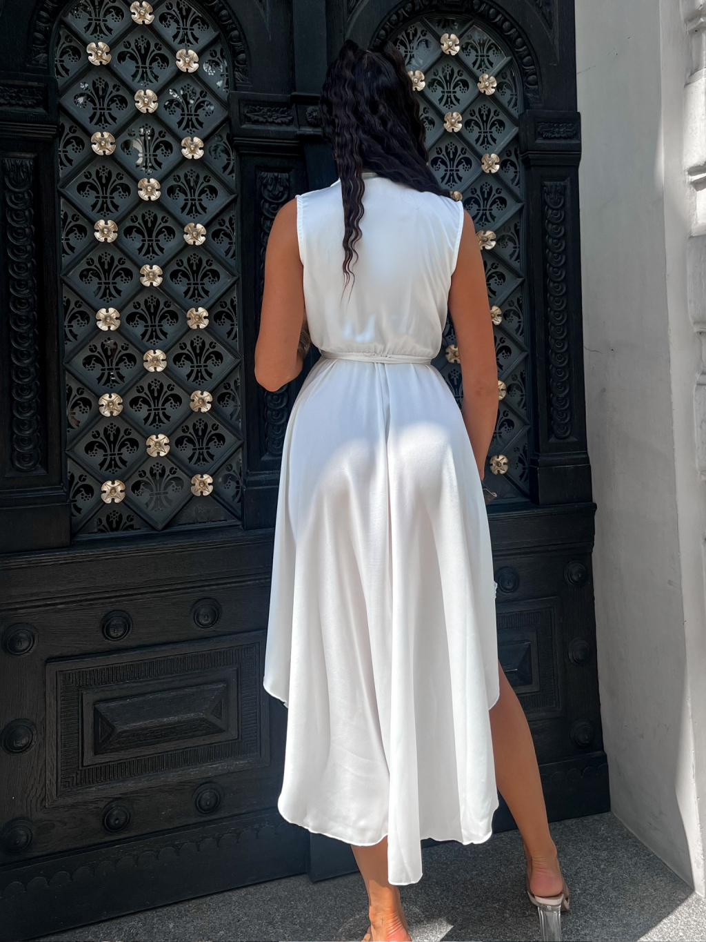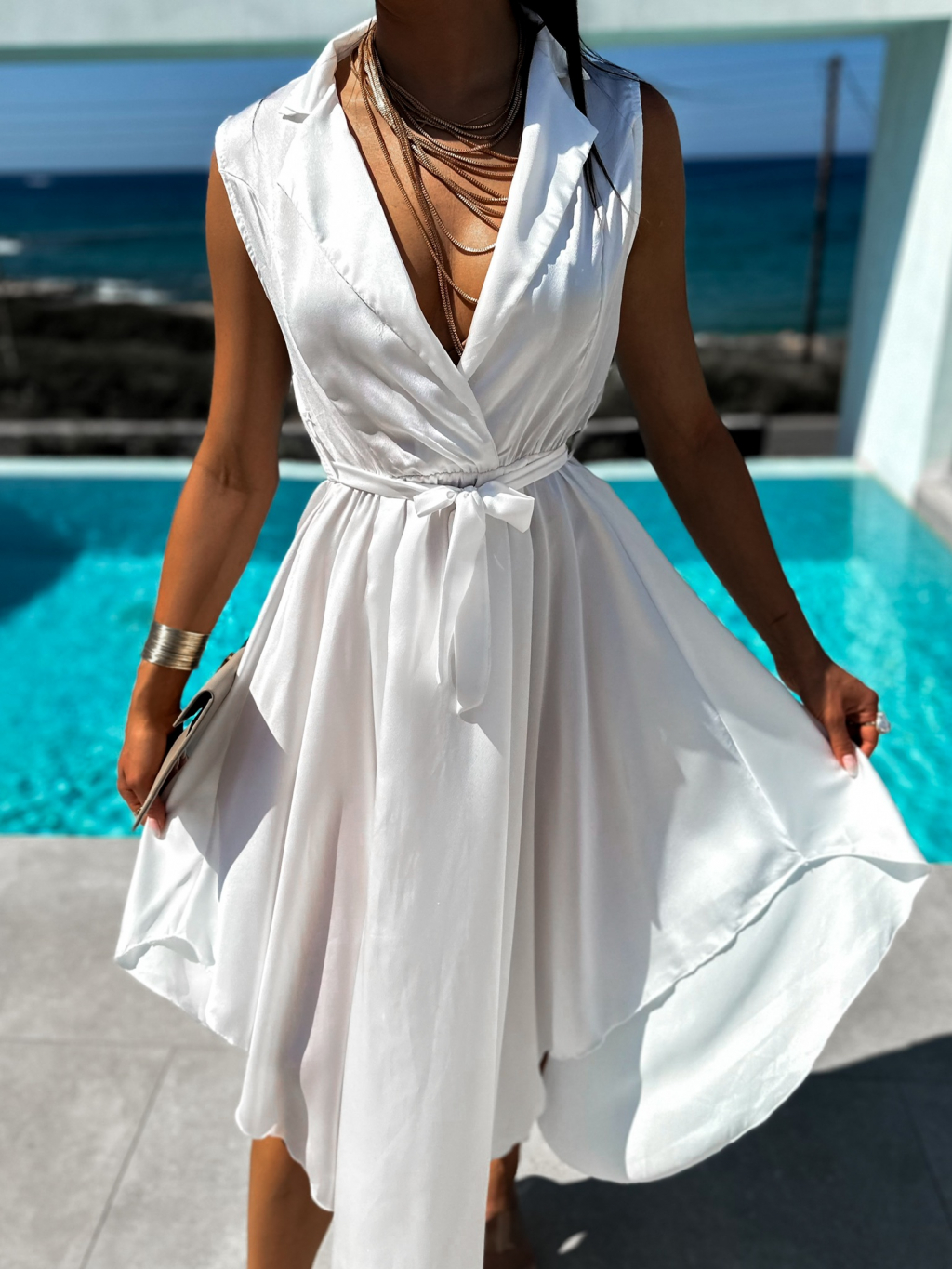 Bílé lesklé šaty BLAINE s vázáním