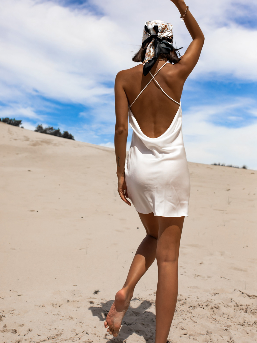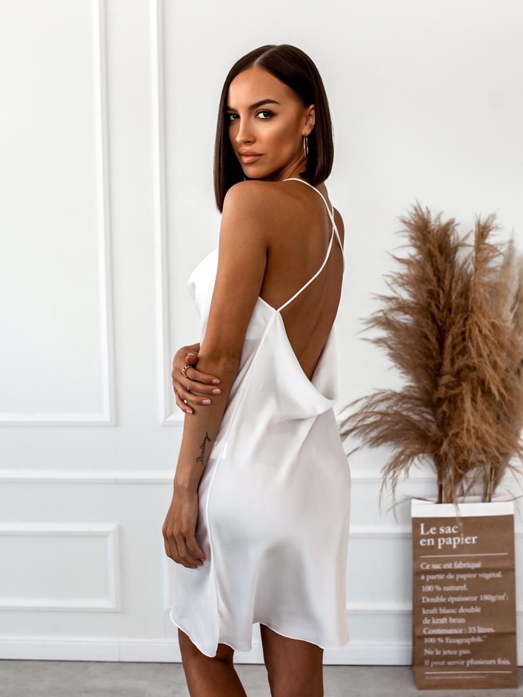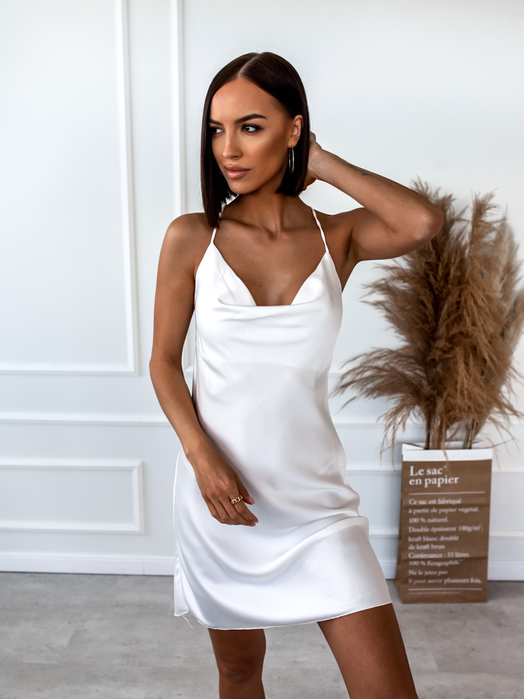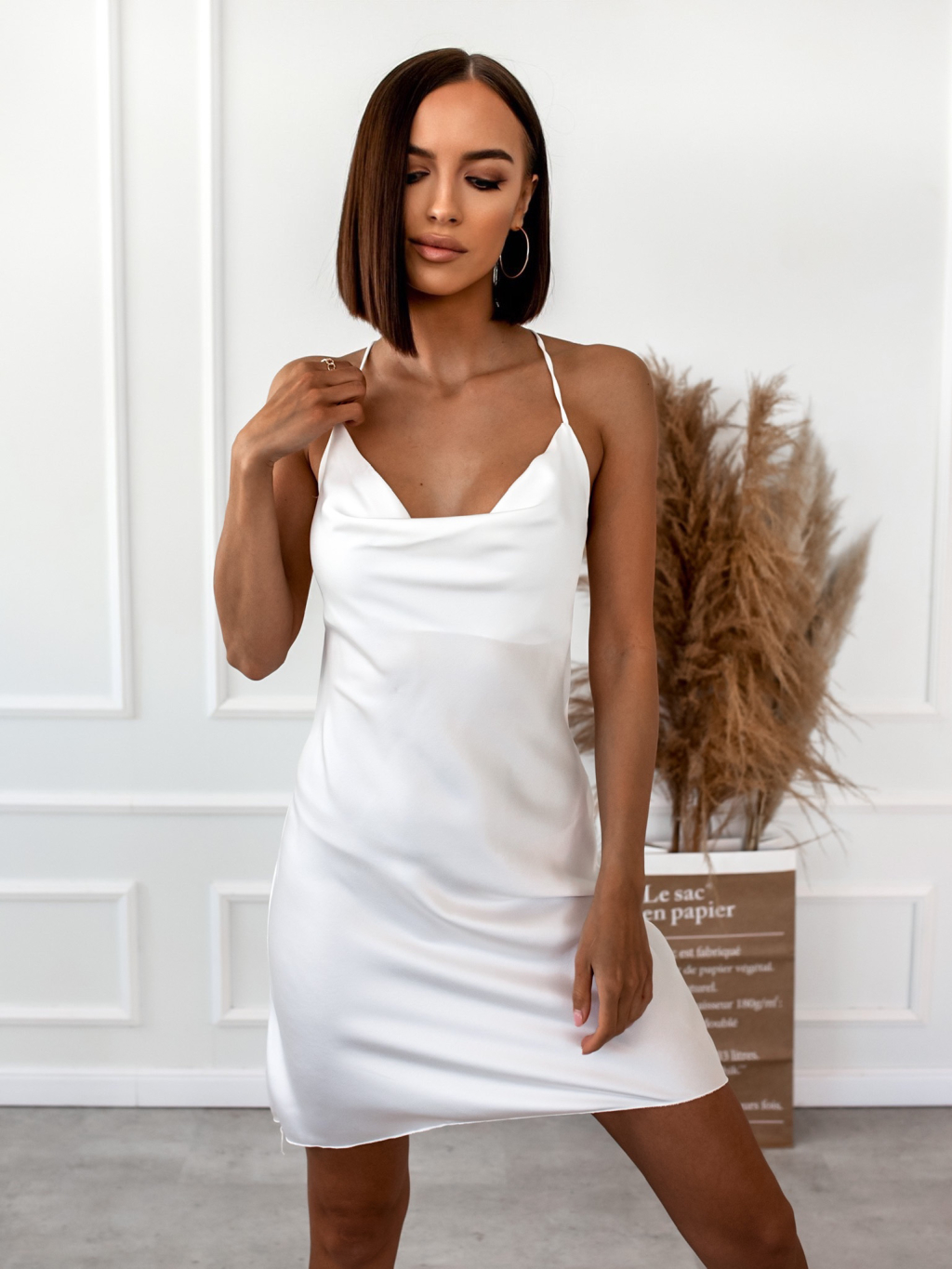 Bílé lesklé šaty IZZY s tenkými ramínky