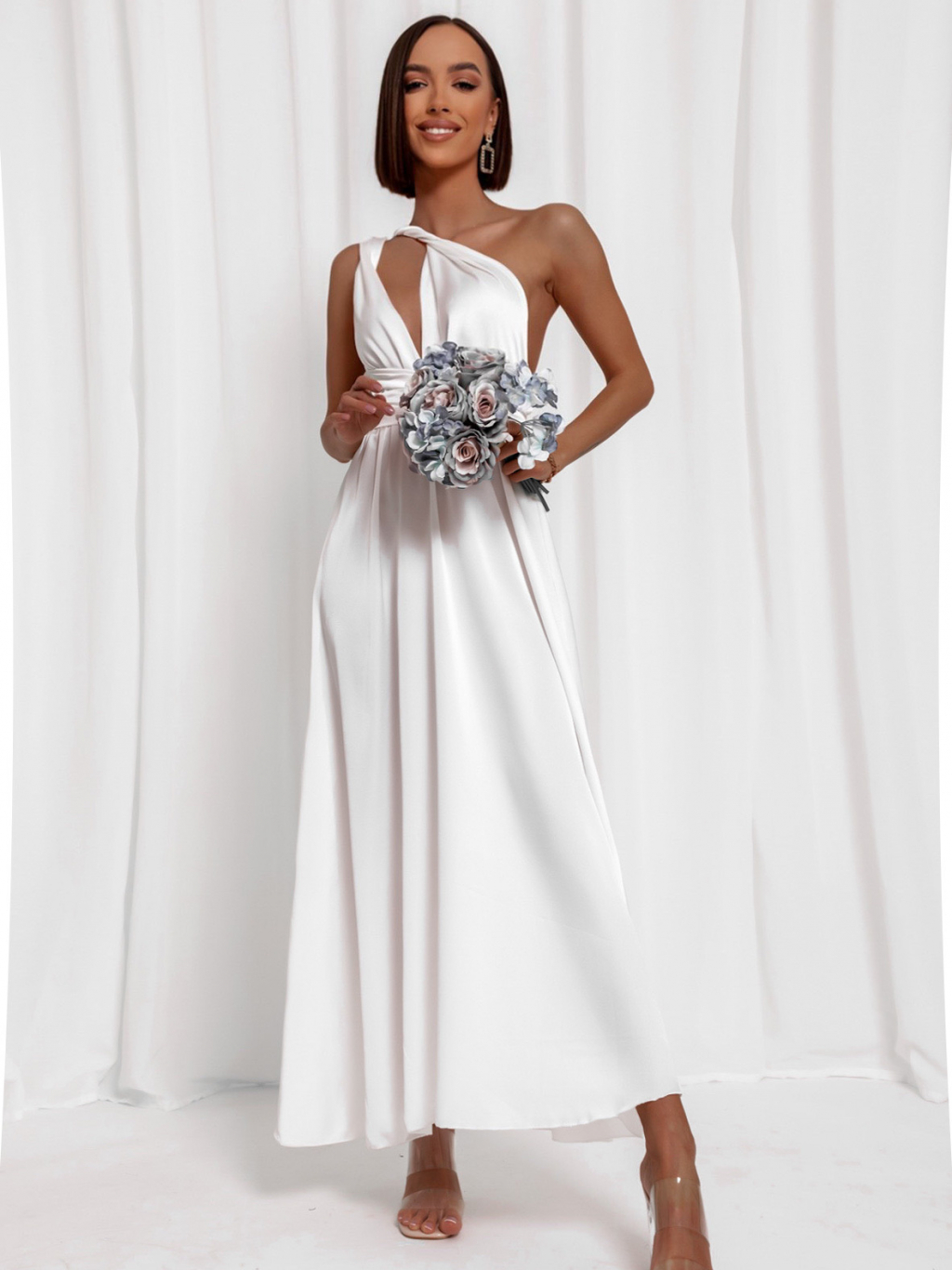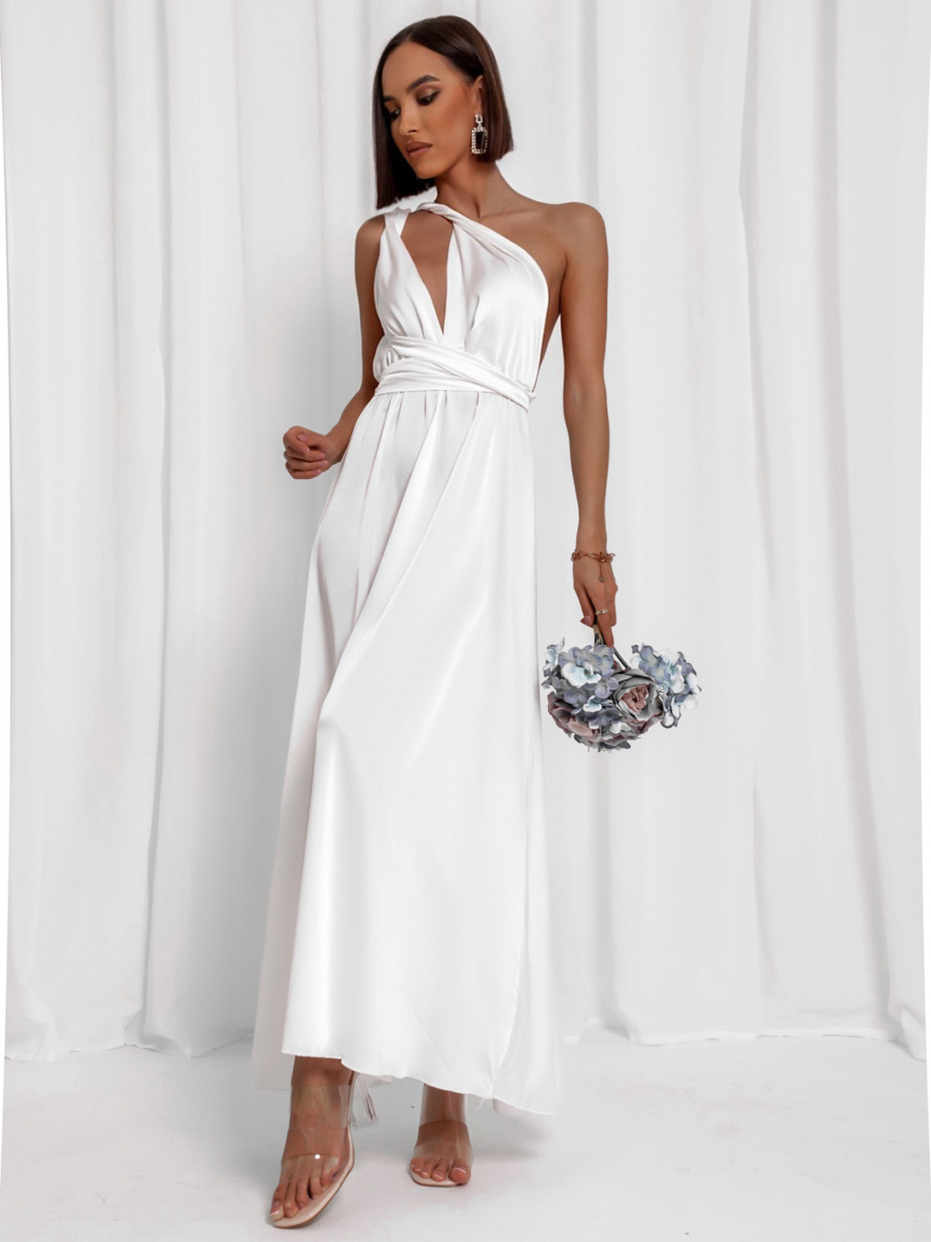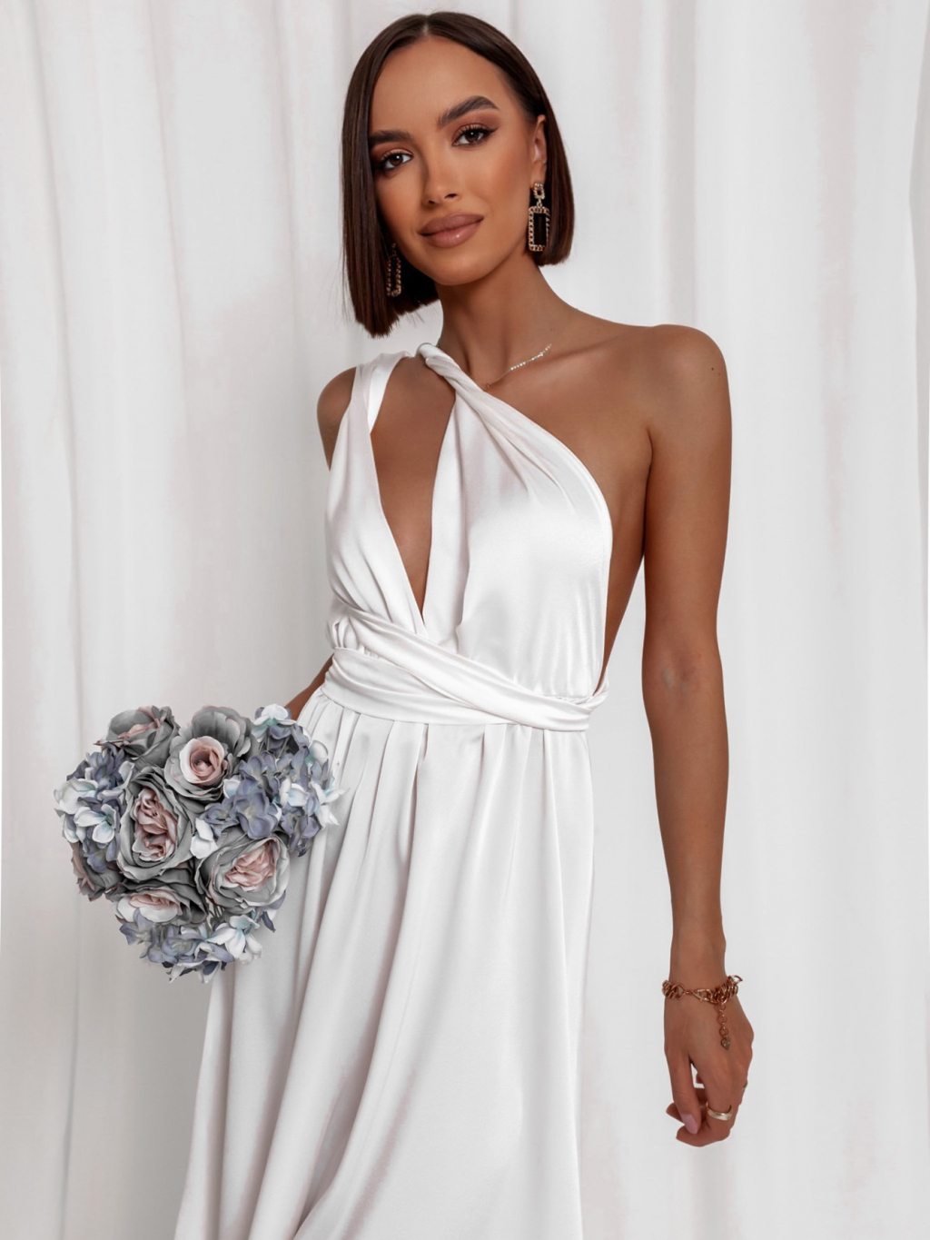 Bílé lesklé šaty VALERDY s variabilním vázáním / bez rozparku
