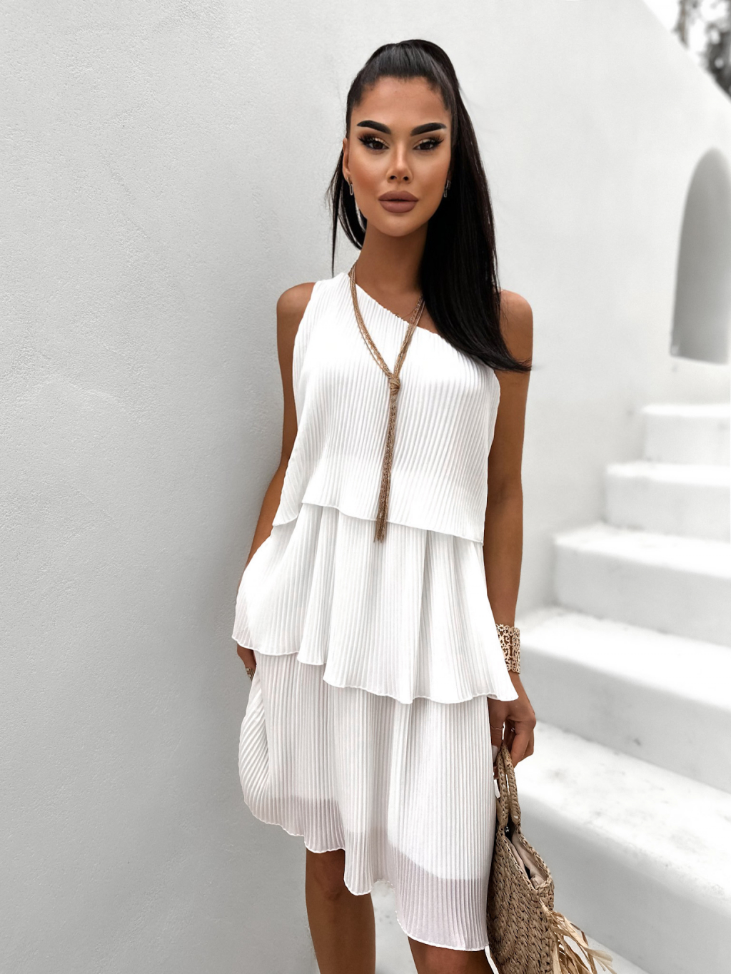 Bílé plisované šaty RANULI s volánky