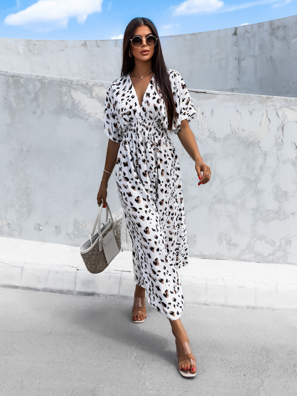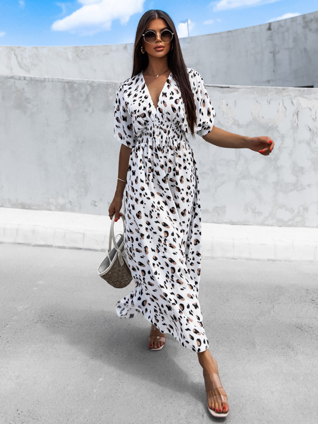 Bílé šaty MILLEY s gepardím vzorem a výstřihem do V