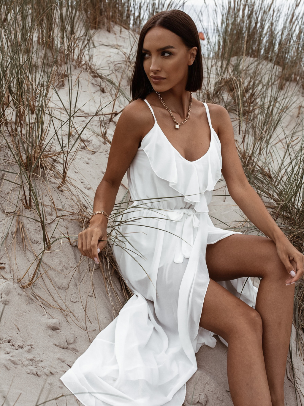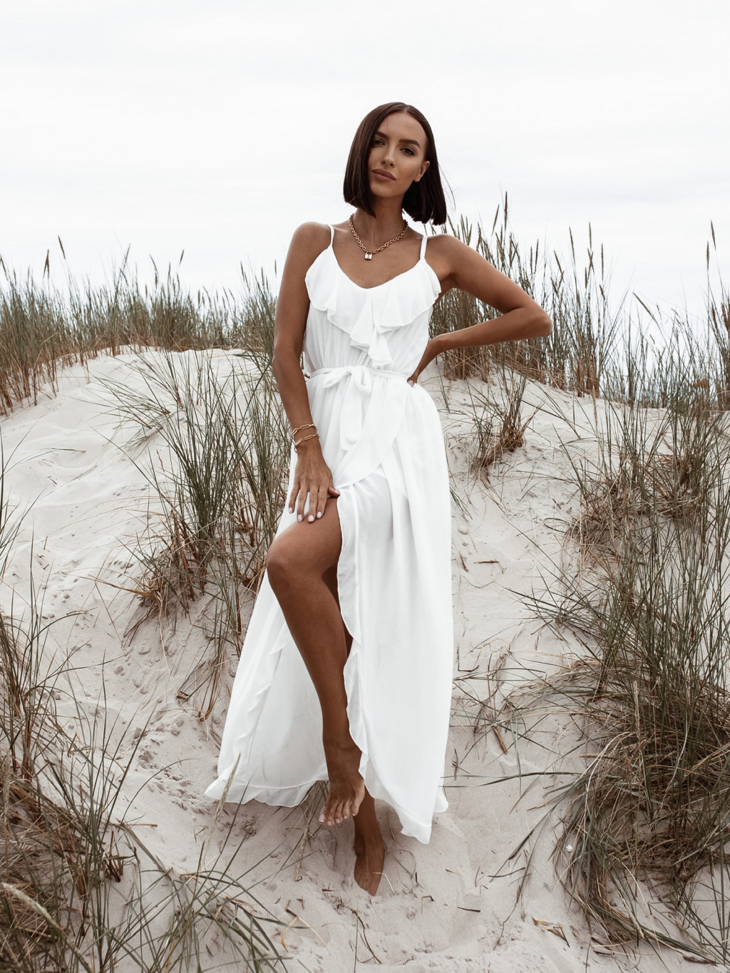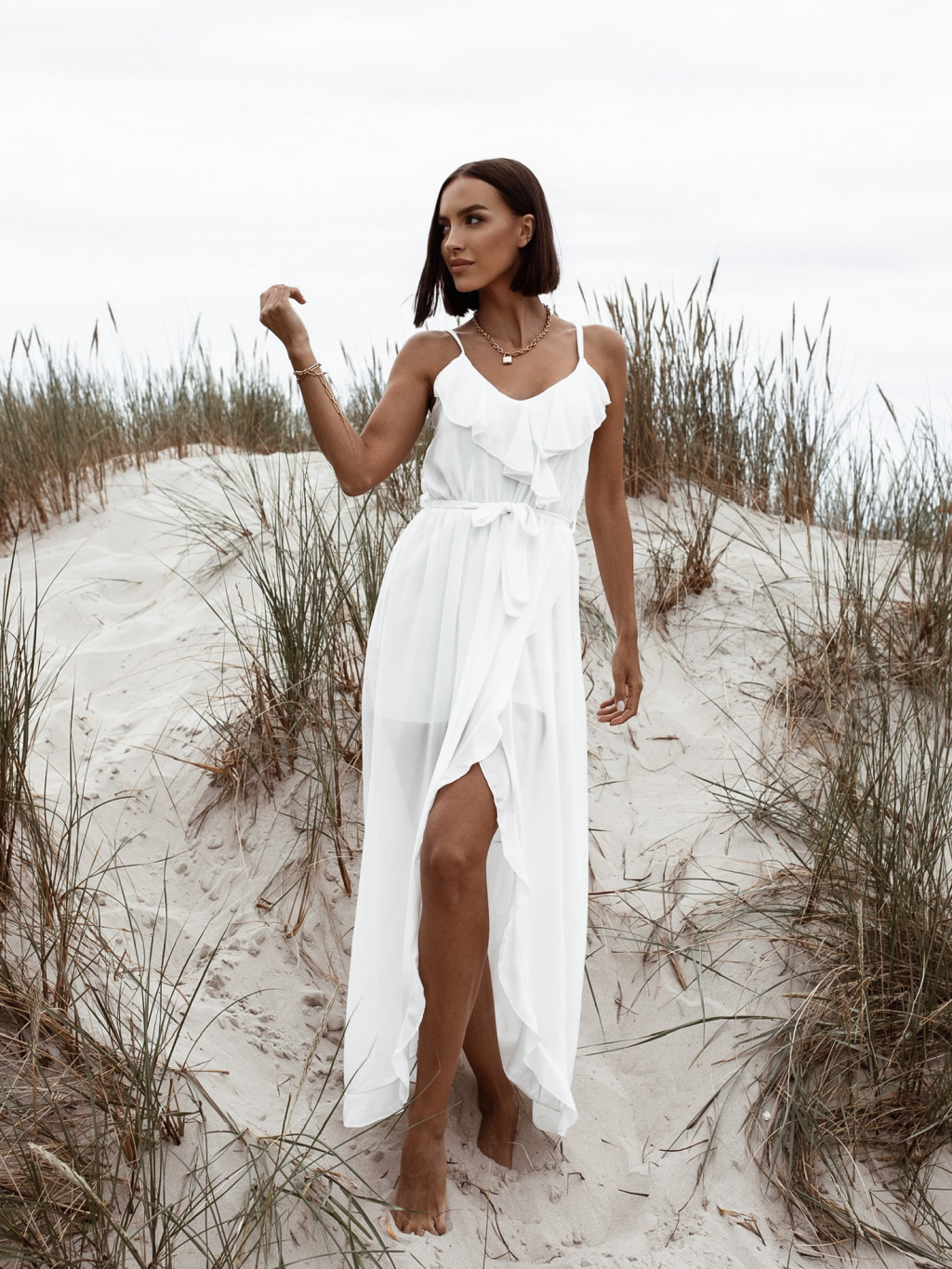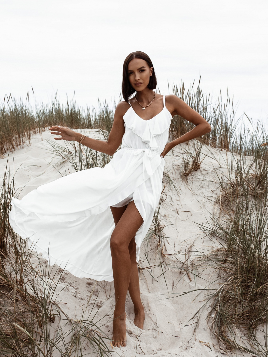 Bílé volánkové šaty RHEA na ramínka