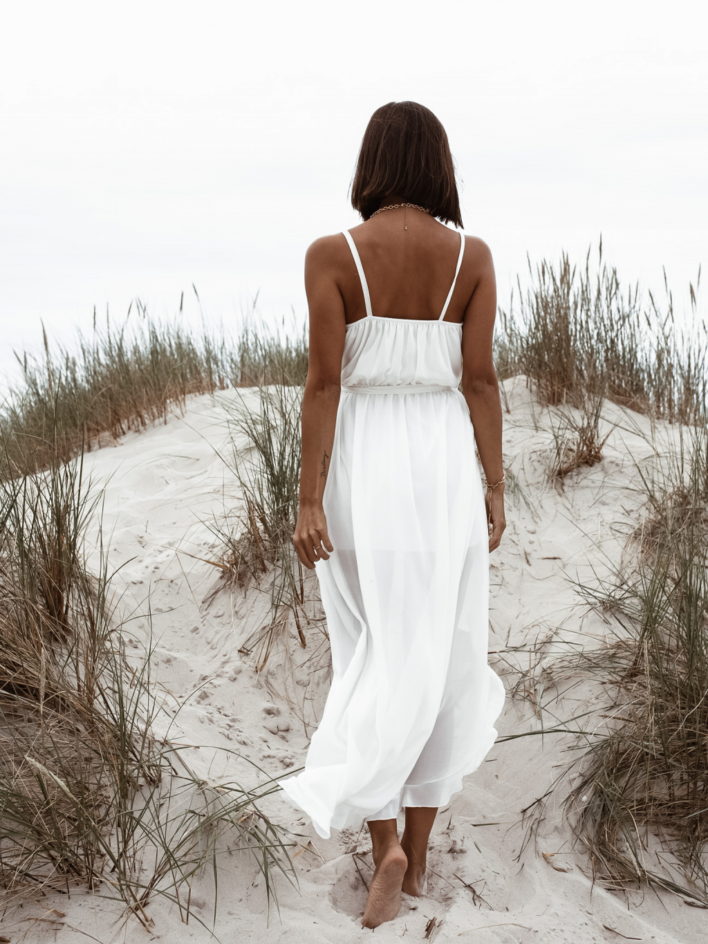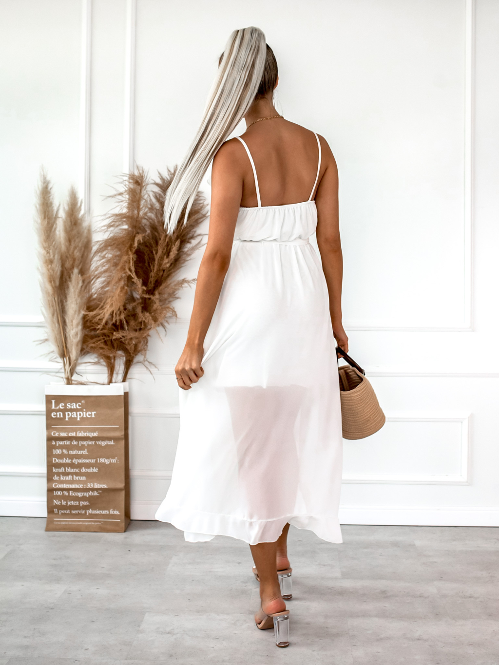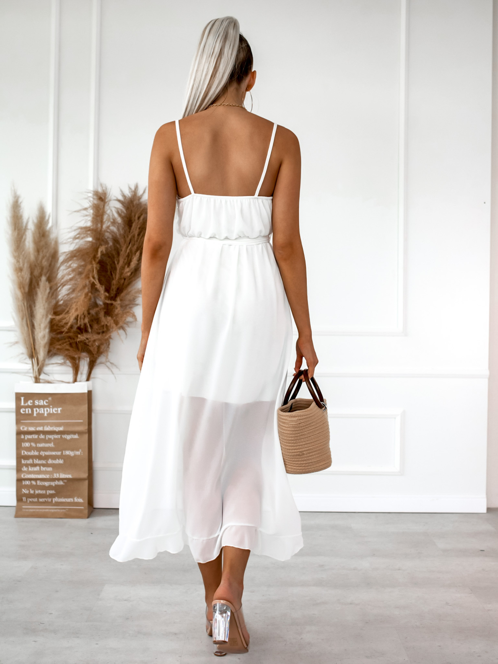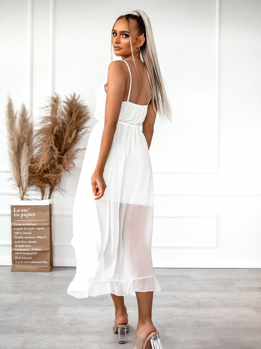 Bílé volánkové šaty RHEA na ramínka