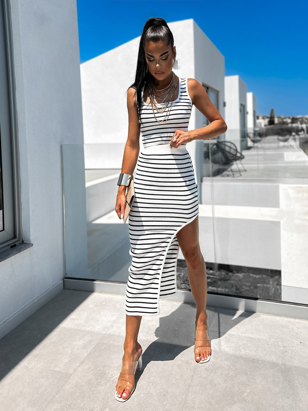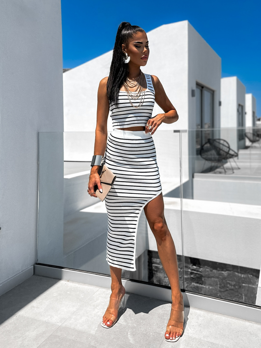 Bílý dvoudílný komplet MAEGEL s pruhy