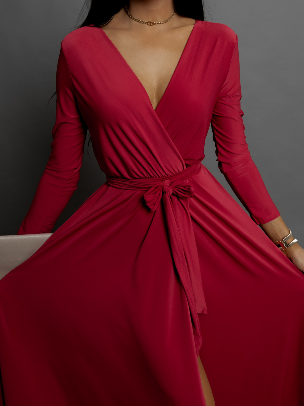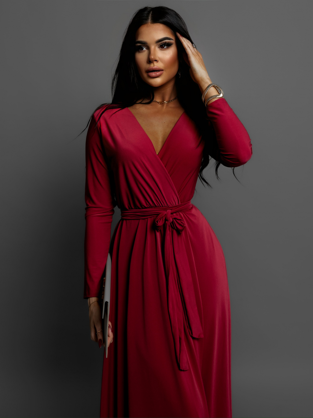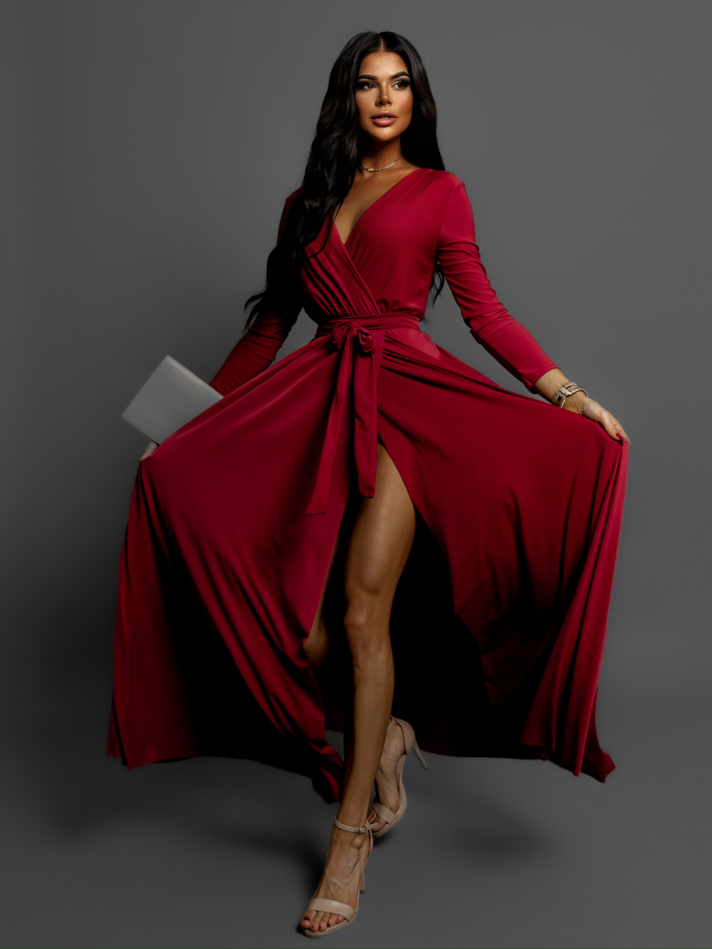 Bordó dlouhé elegantní šaty JOELLIAN