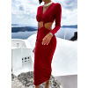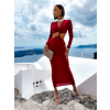 Bordó dlouhé elegantní šaty LANTIC s dlouhým rukávem