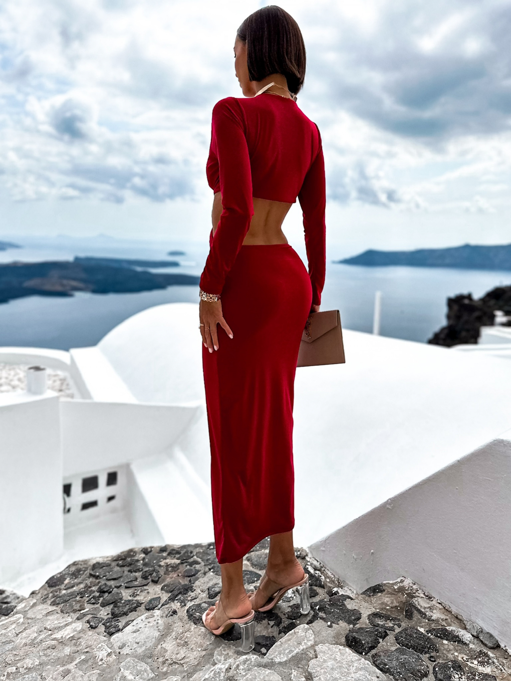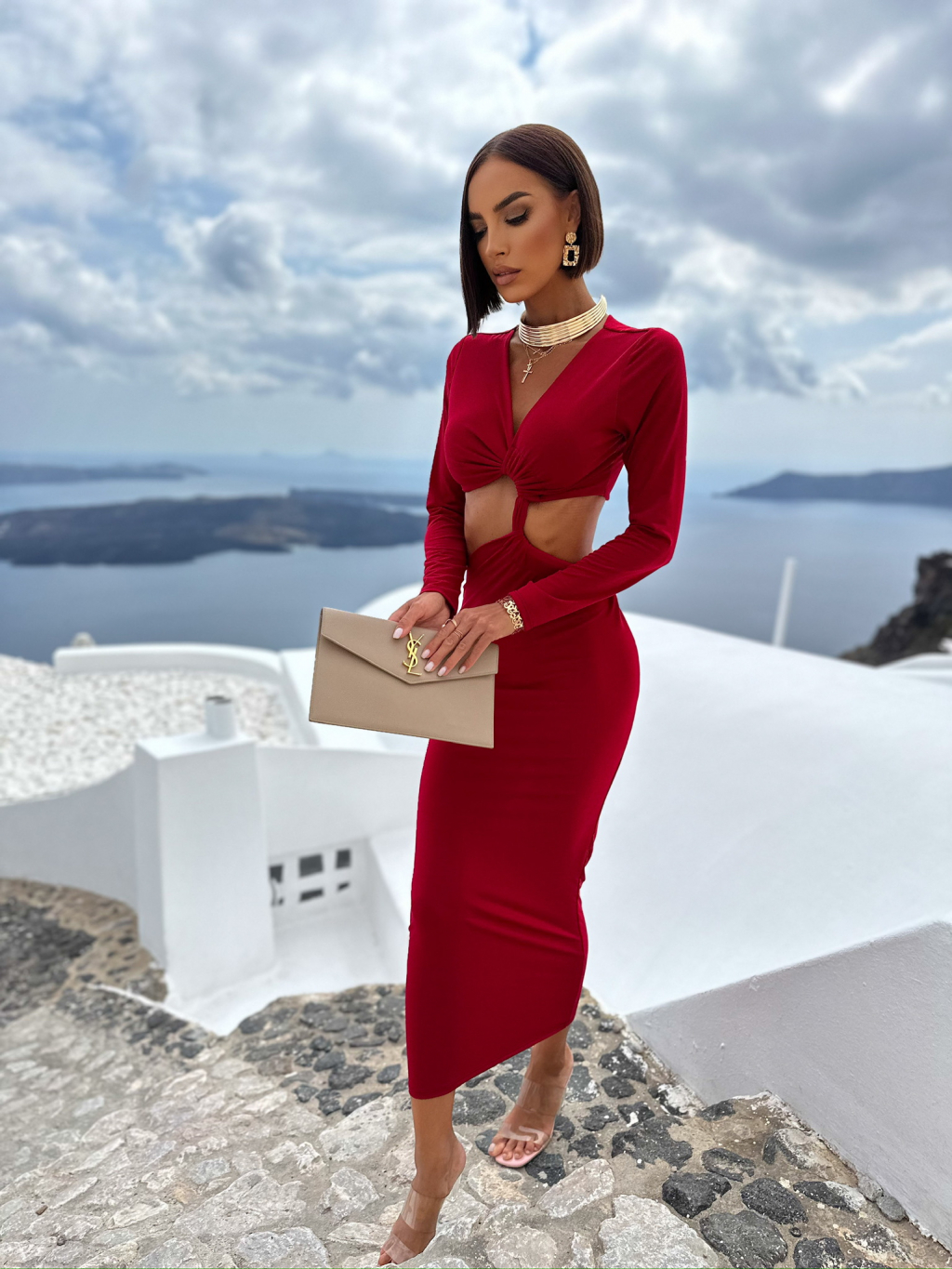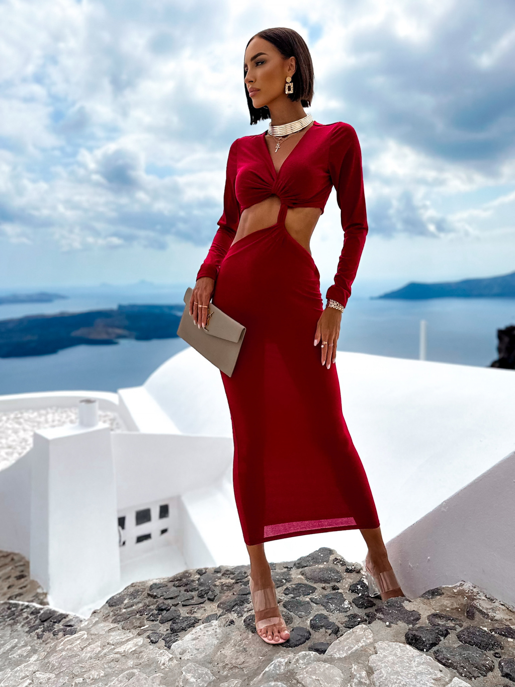 Bordó dlouhé elegantní šaty LANTIC s dlouhým rukávem