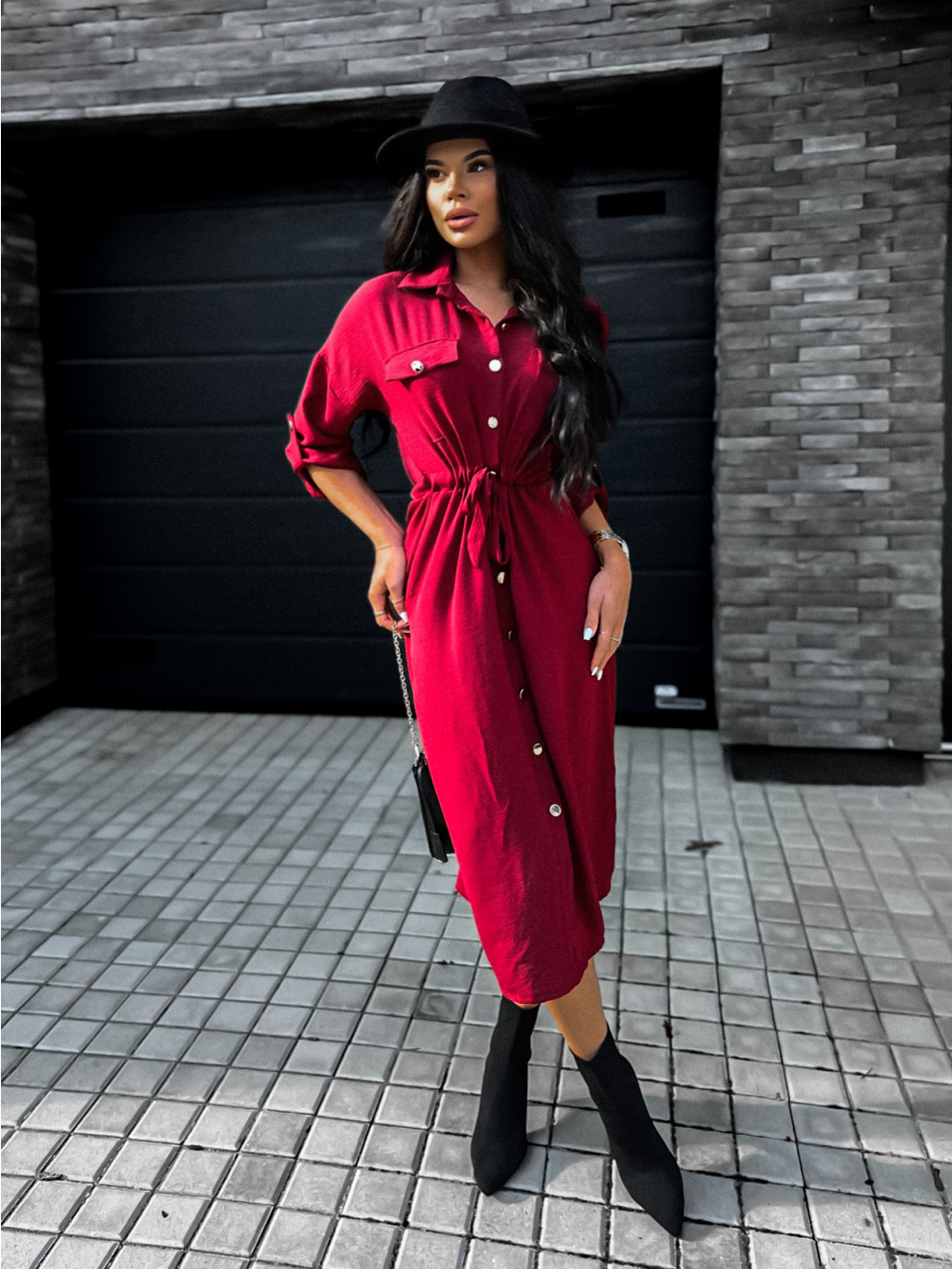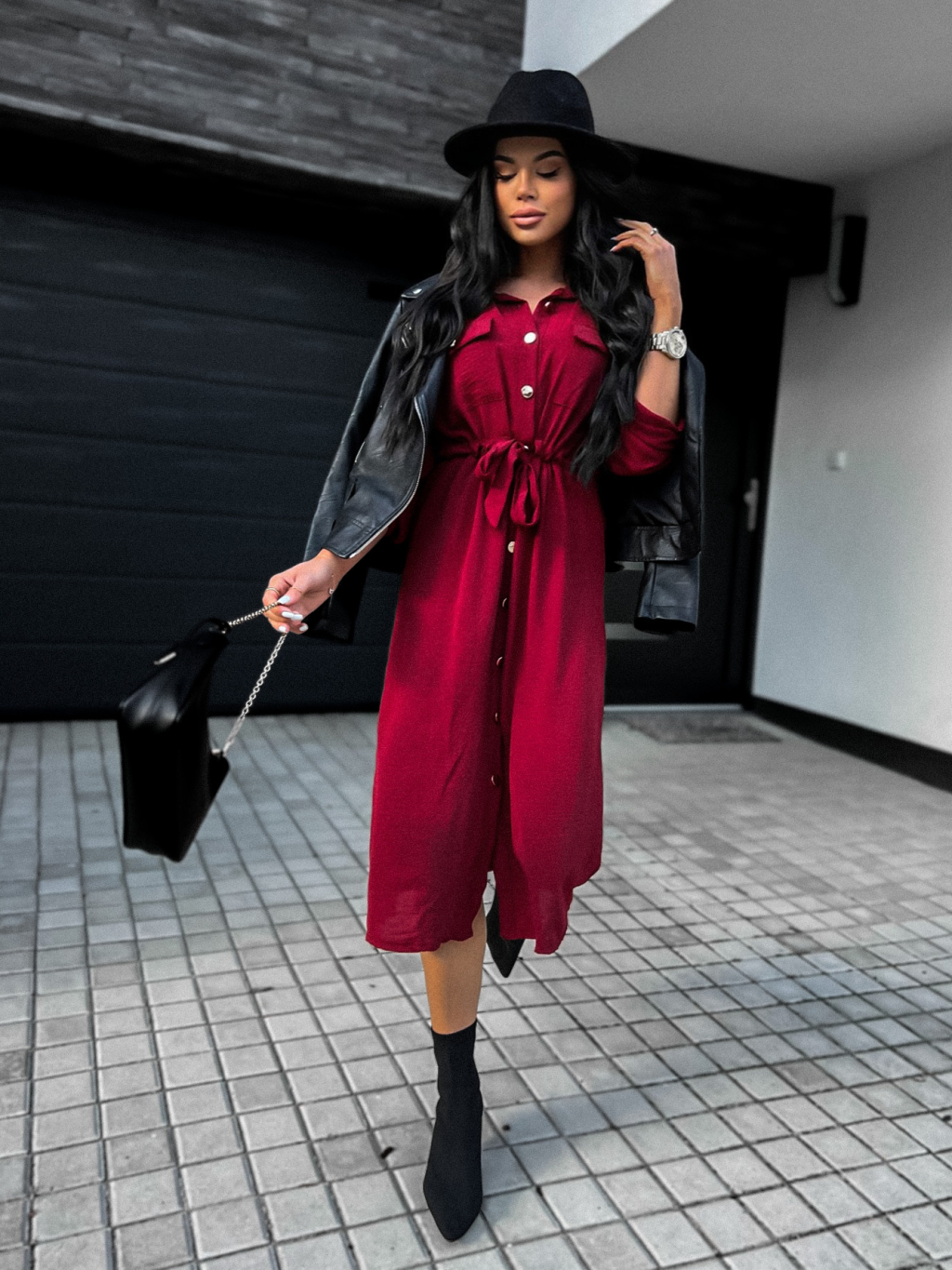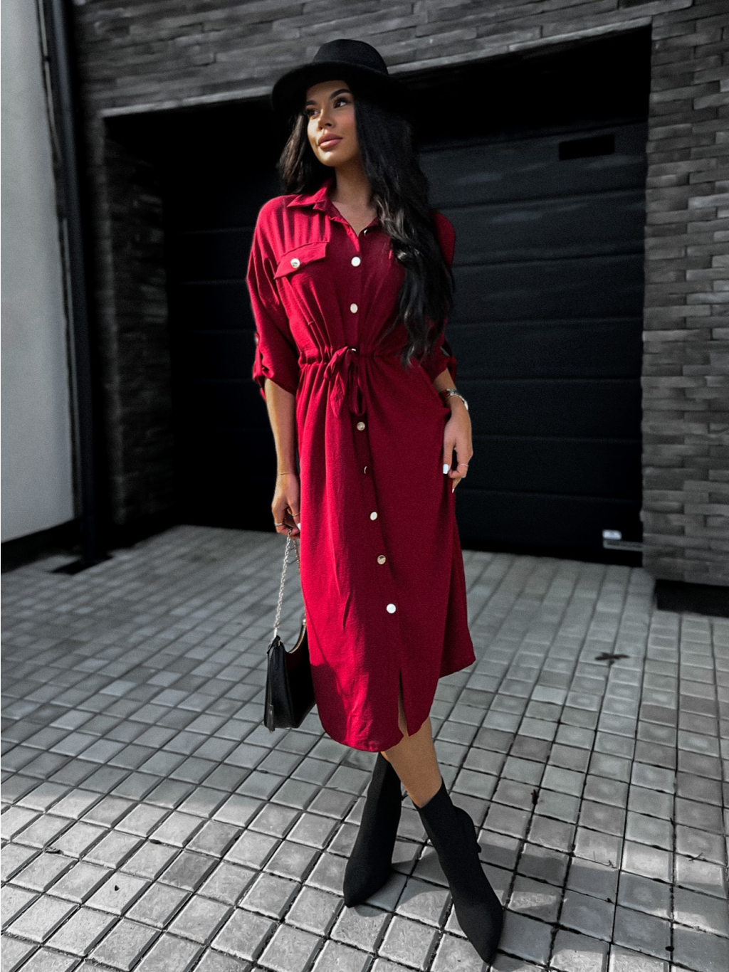 Bordó elegantní šaty ETNAME na zavazování