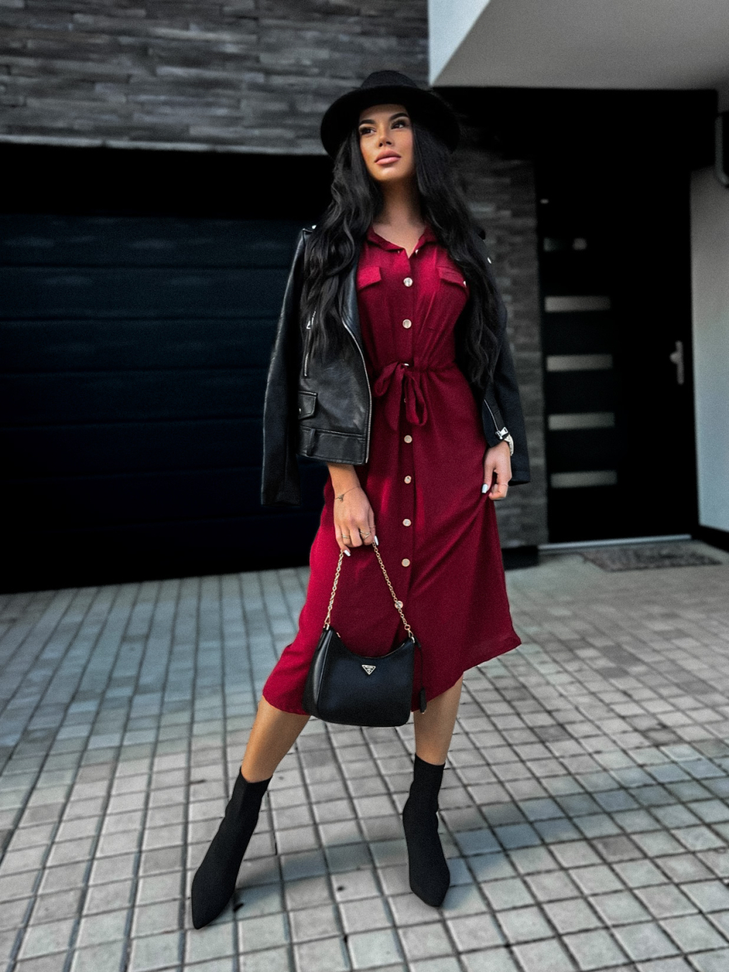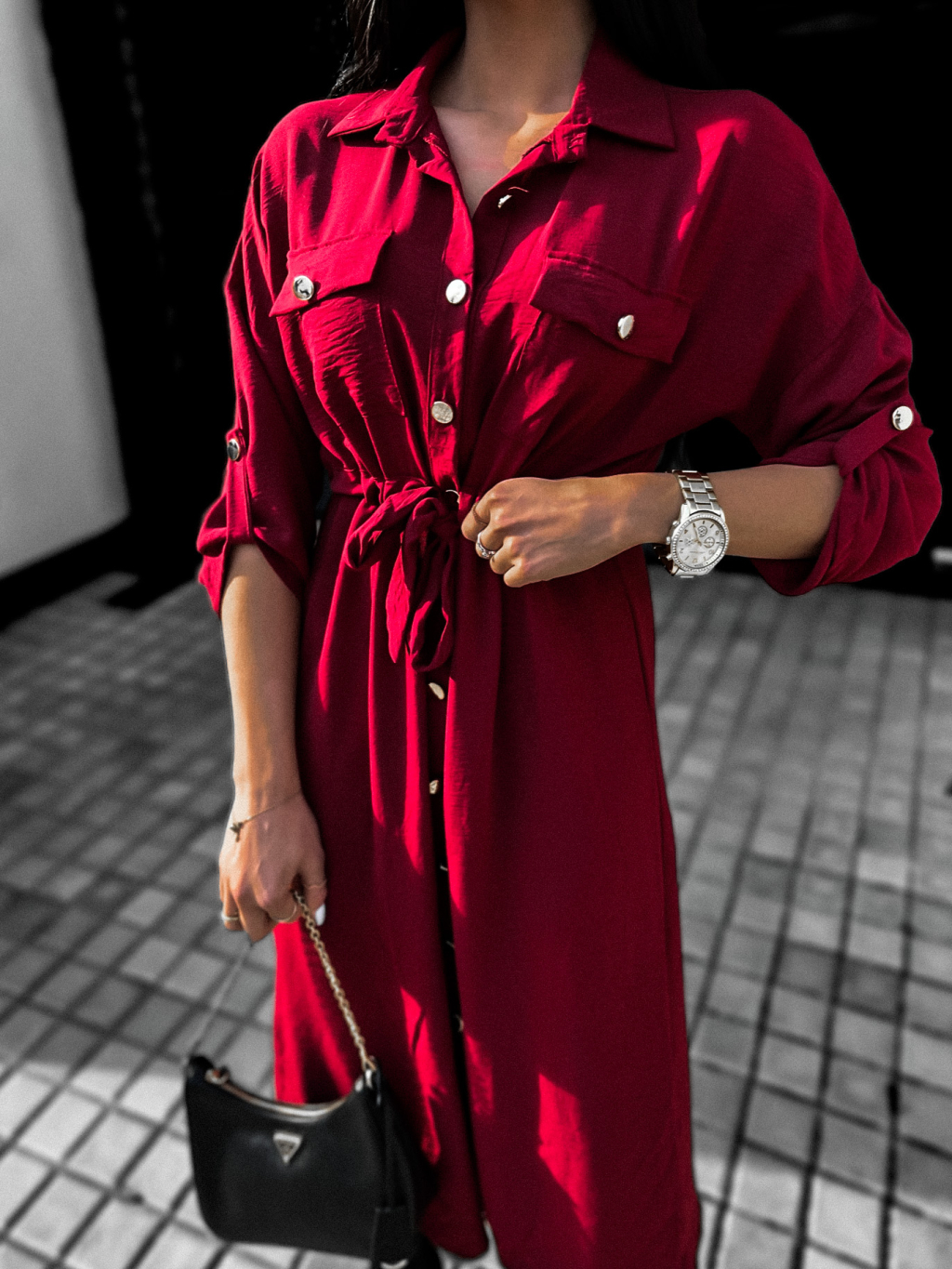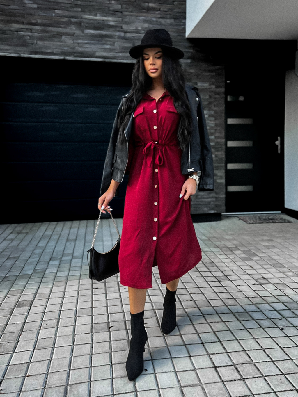 Bordó elegantní šaty ETNAME na zavazování