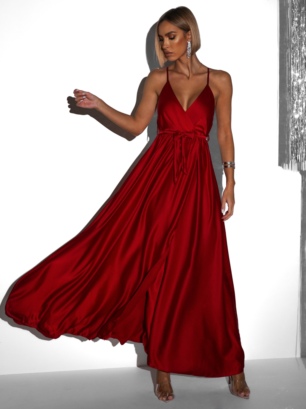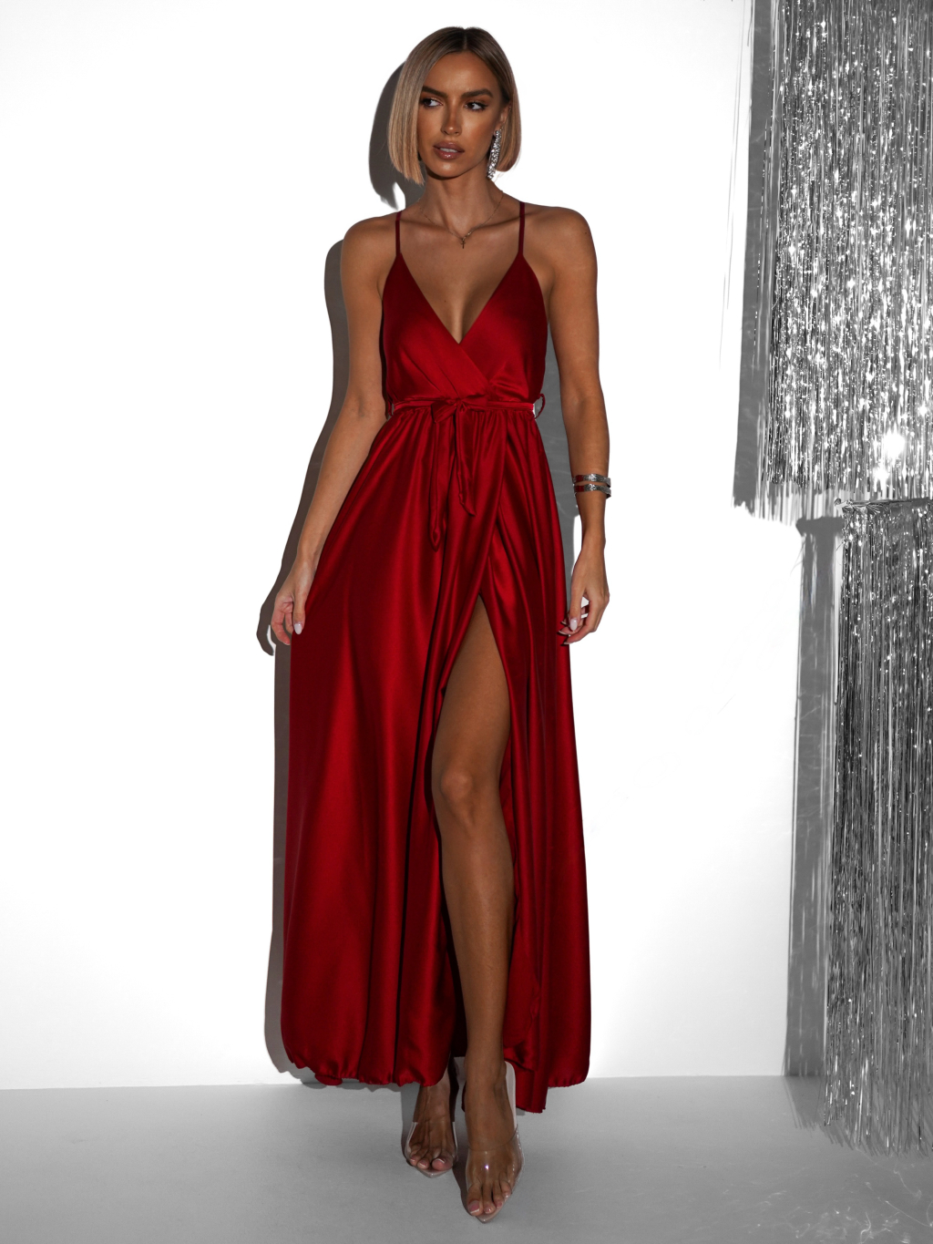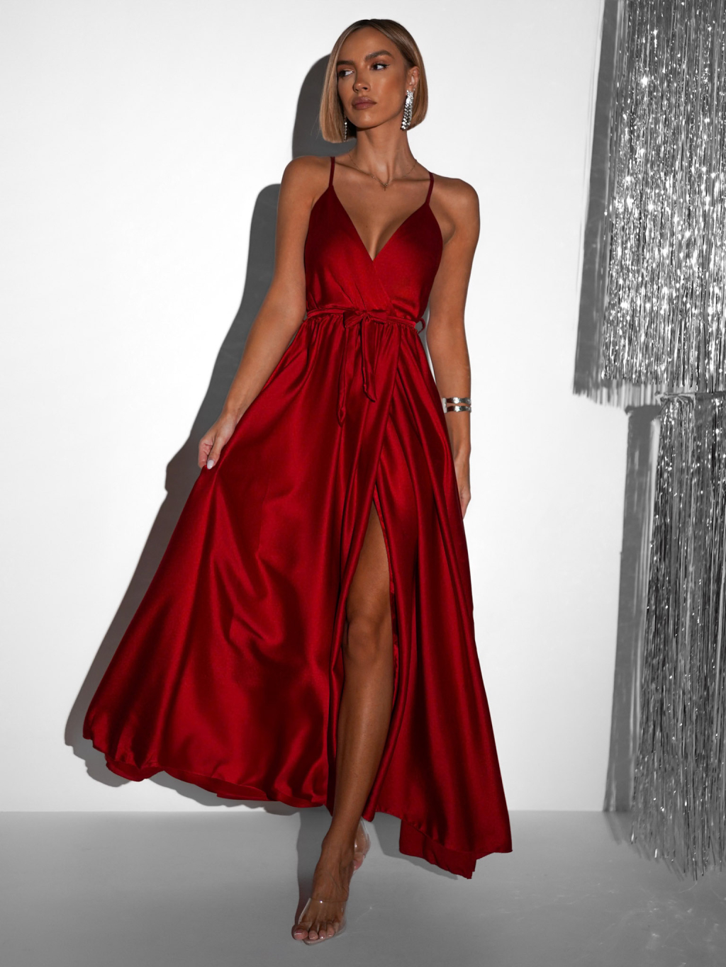 Bordó lesklé dlouhé plesové šaty FAIRYTALE
