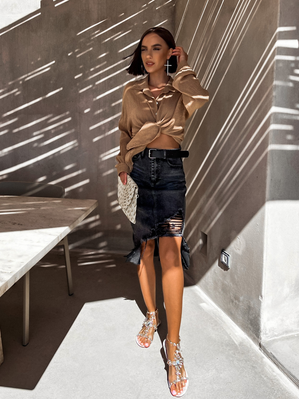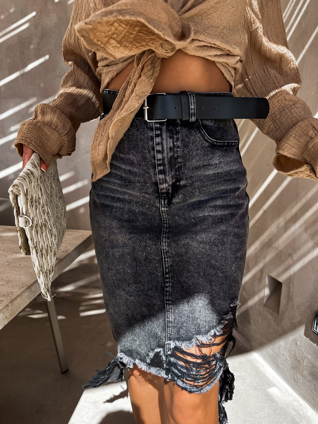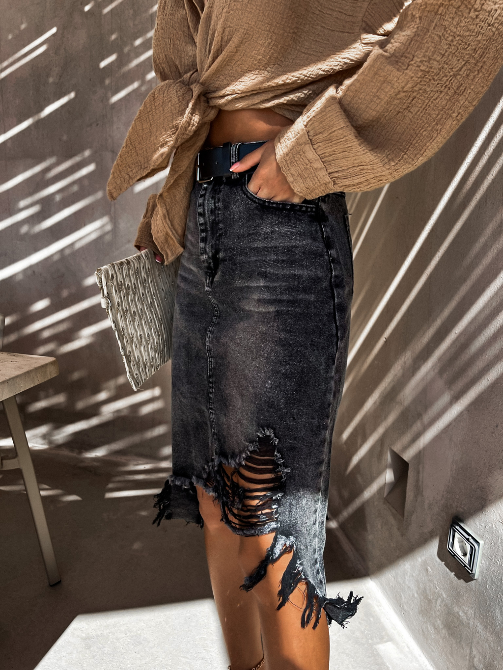 Černá potrhaná džínová sukně ADRIENA