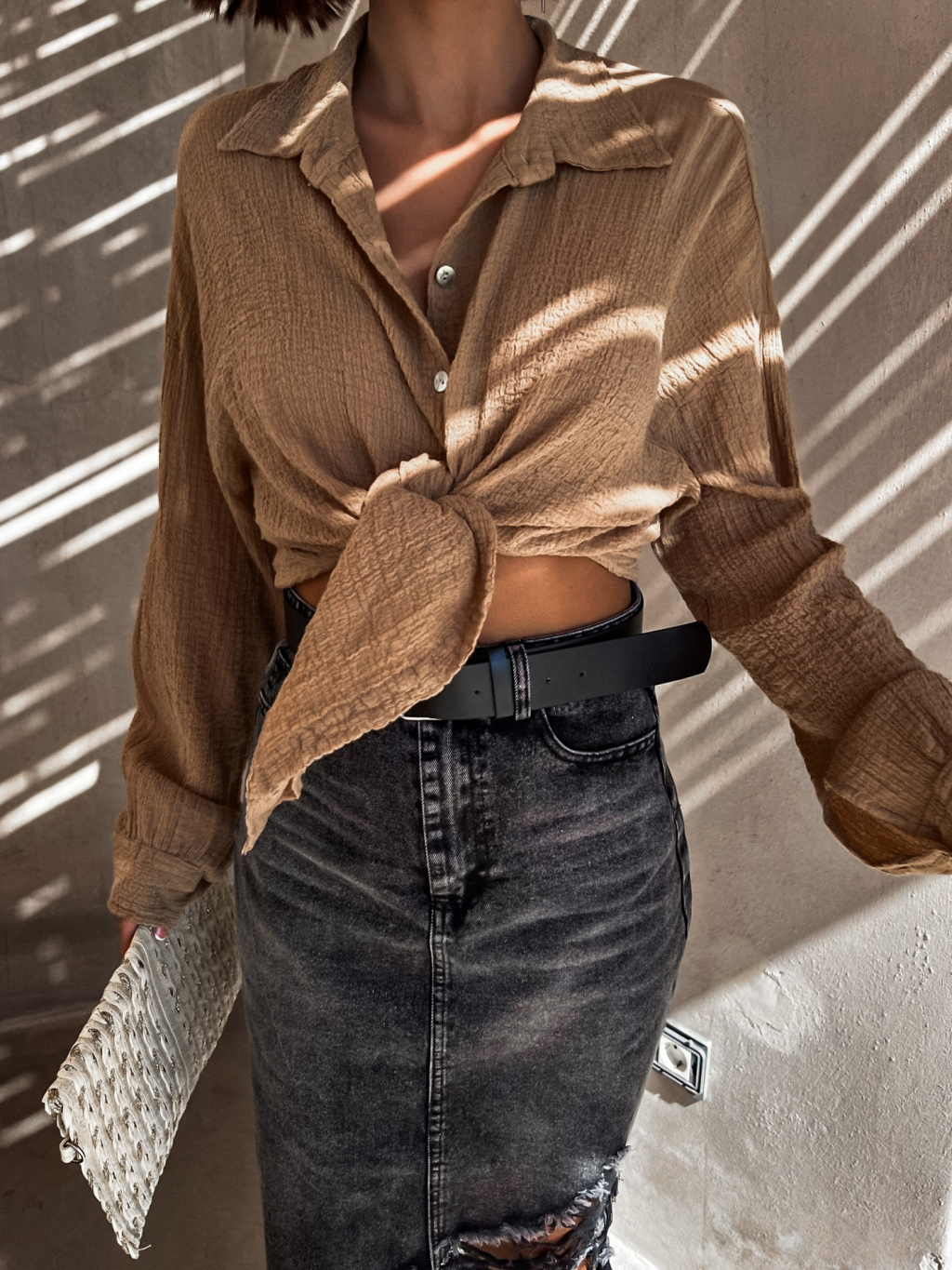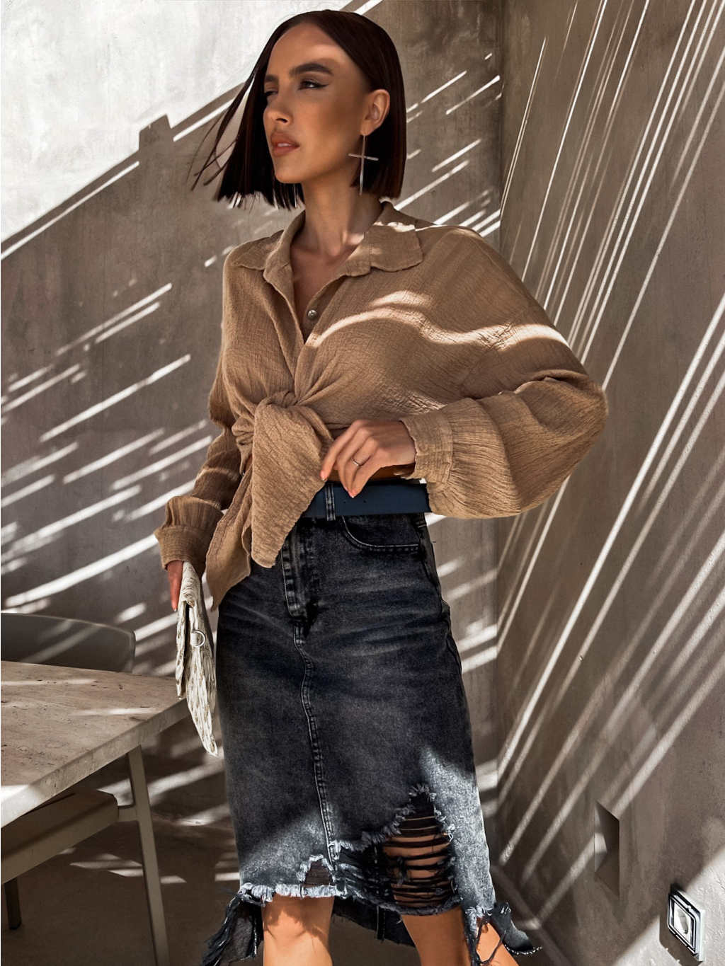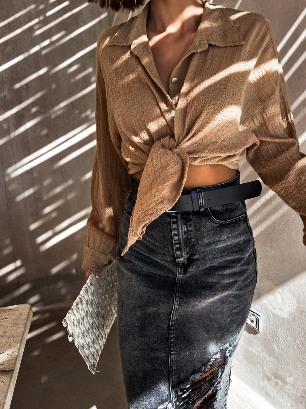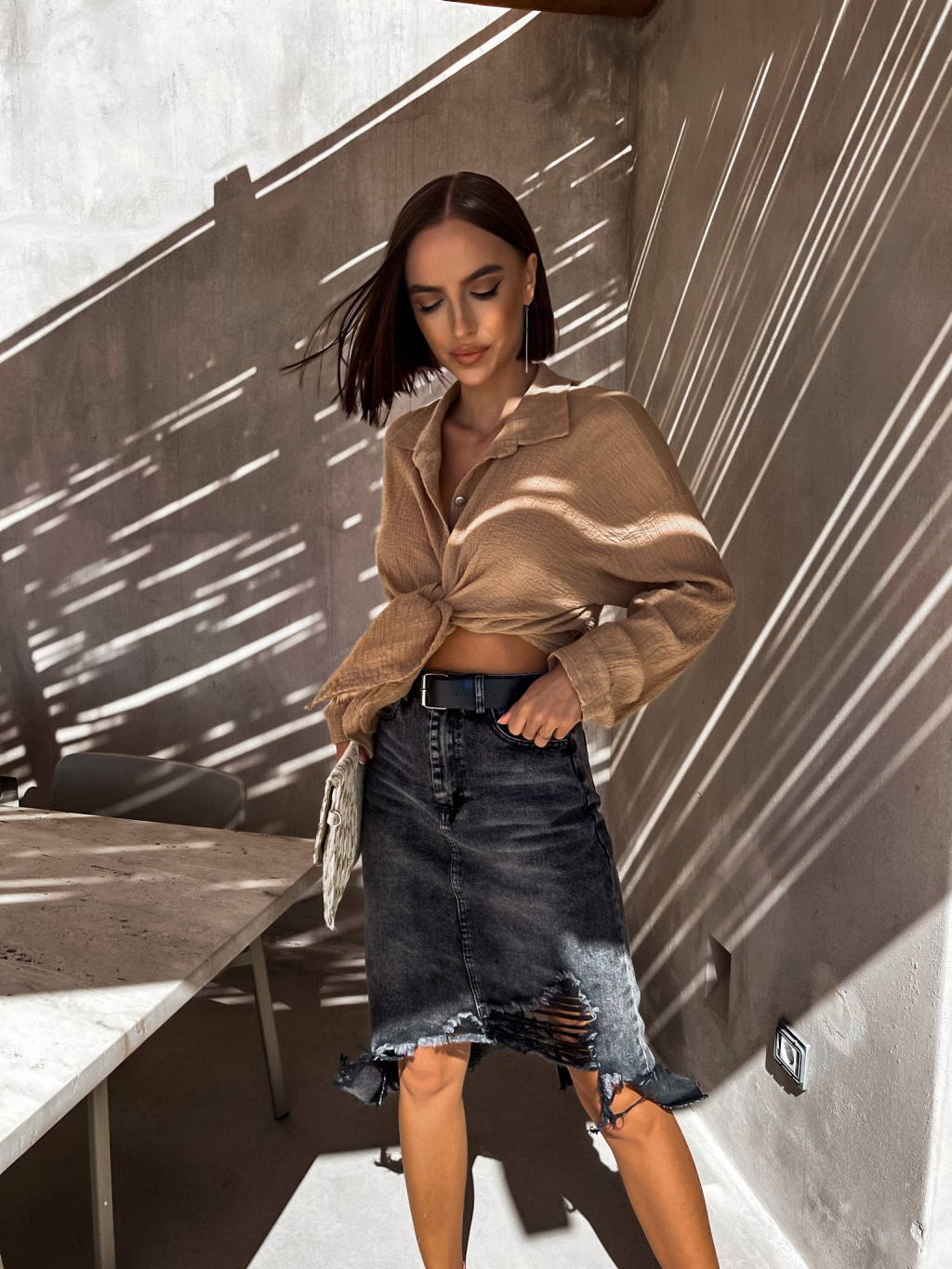 Černá potrhaná džínová sukně ADRIENA