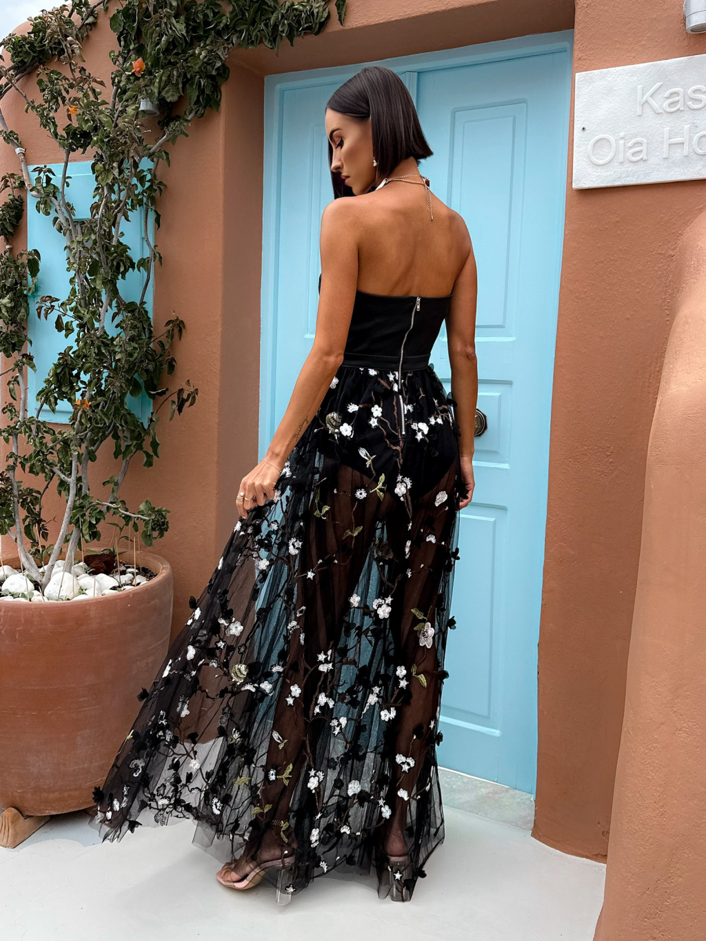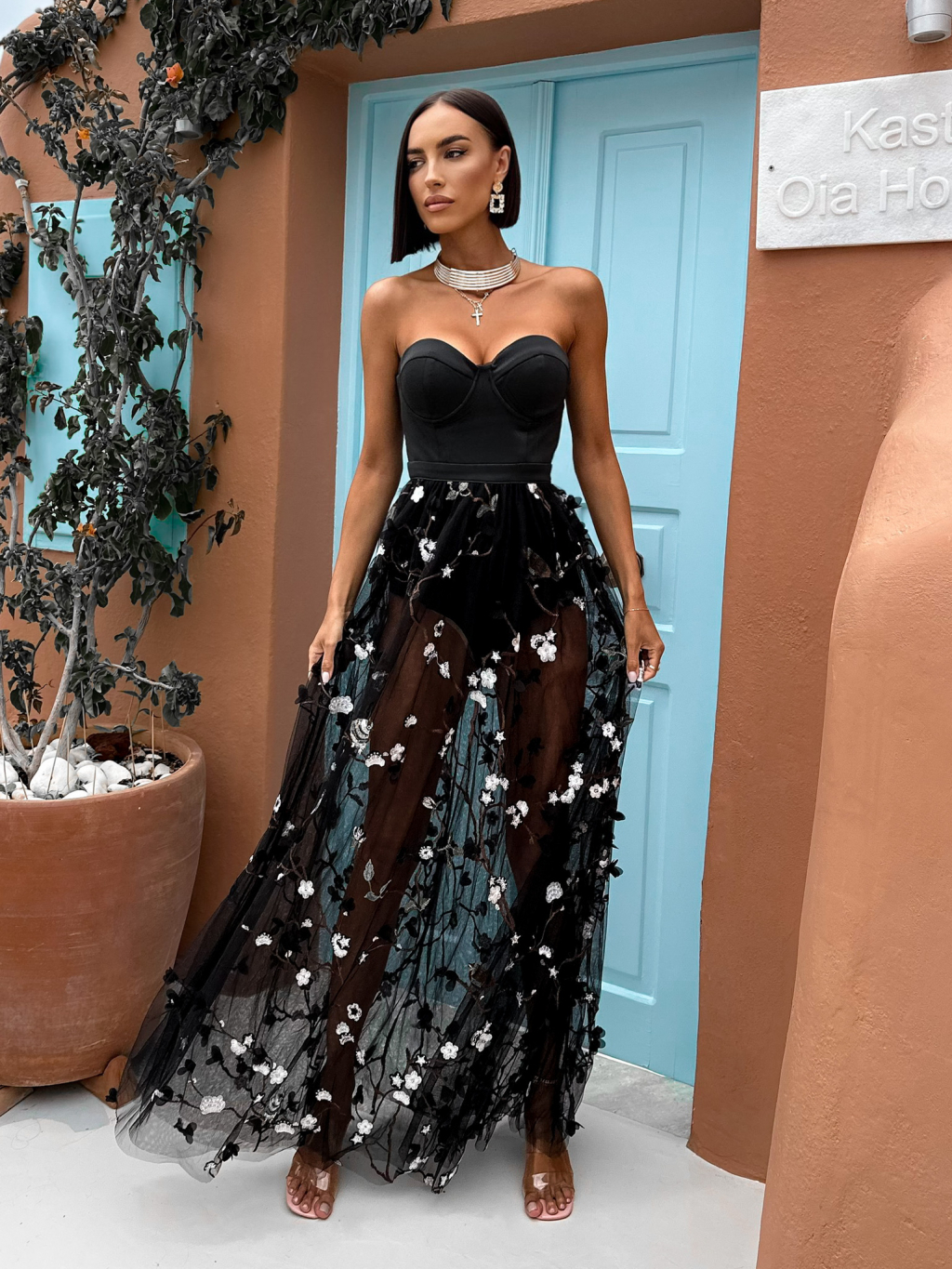 Černé dlouhé elegantní šaty COPPYRE s květinovým vzorem