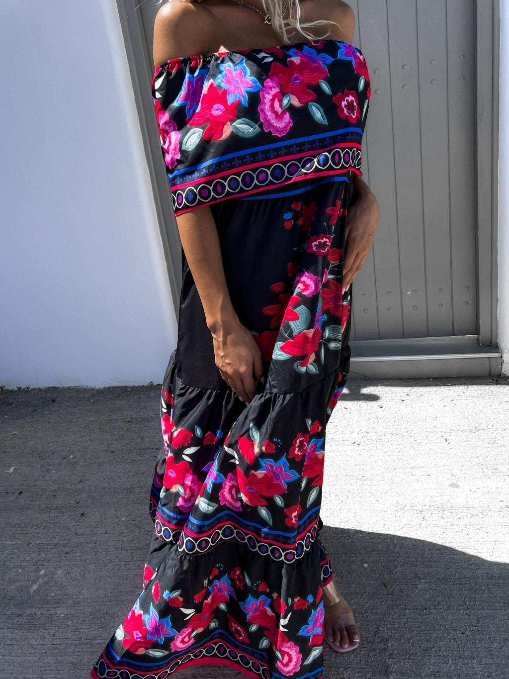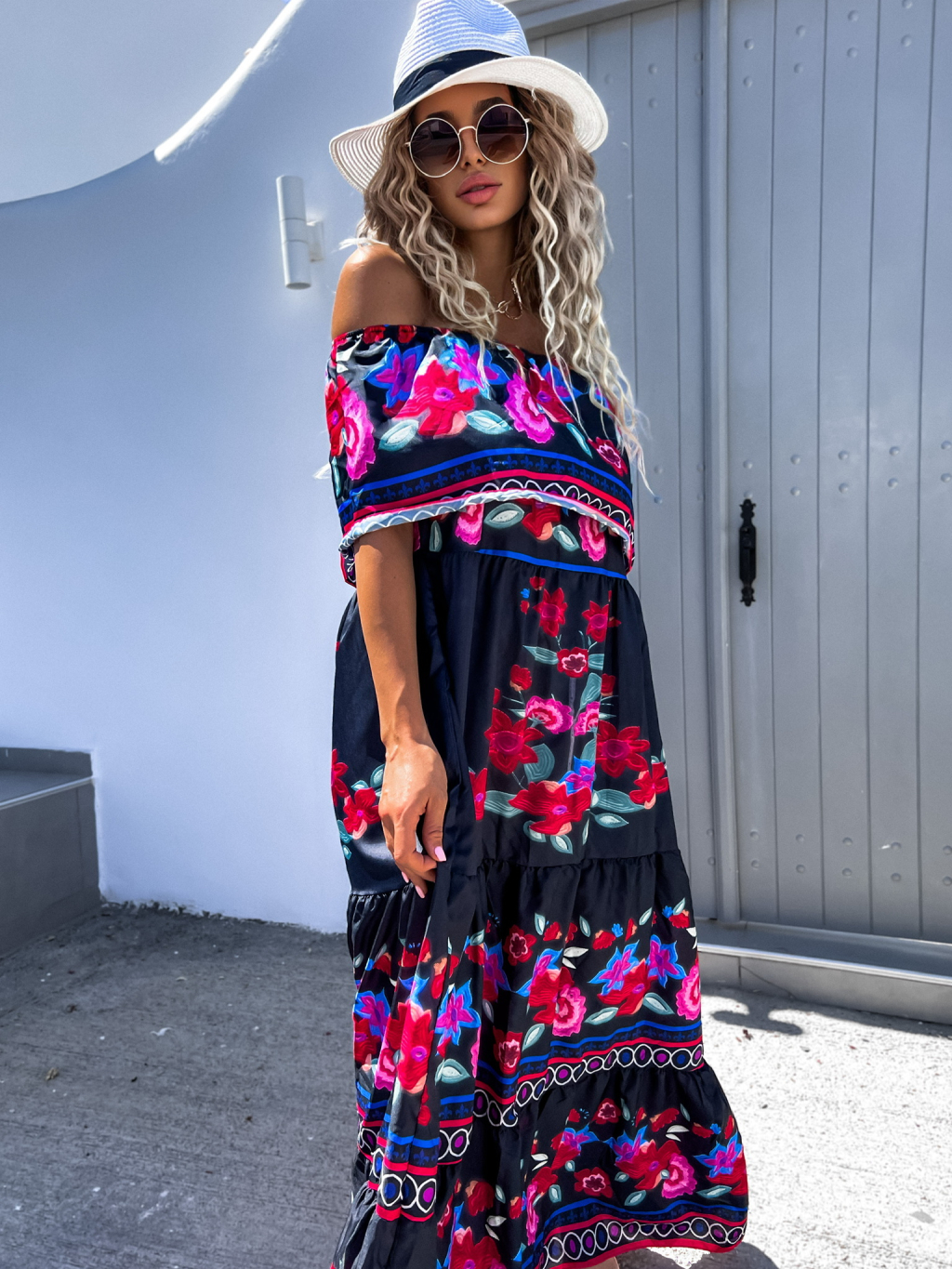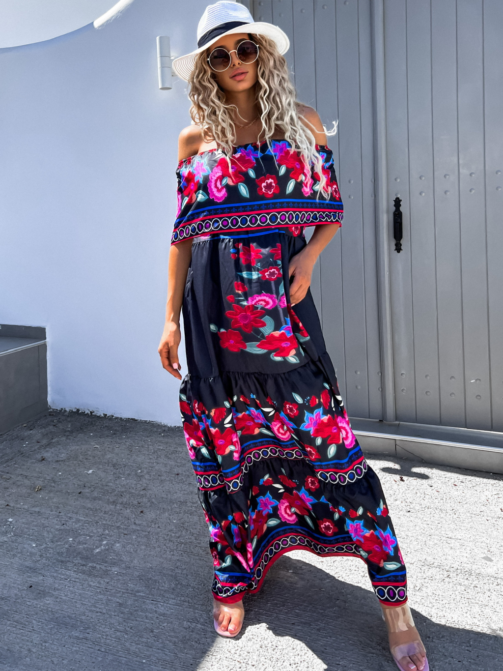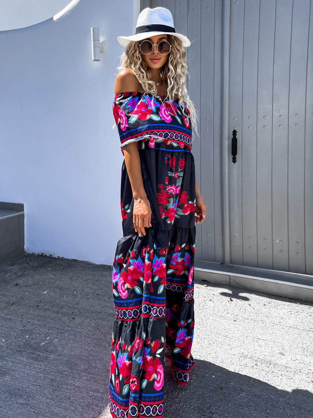 Černé dlouhé elegantní šaty DRILTY s květinovým vzorem