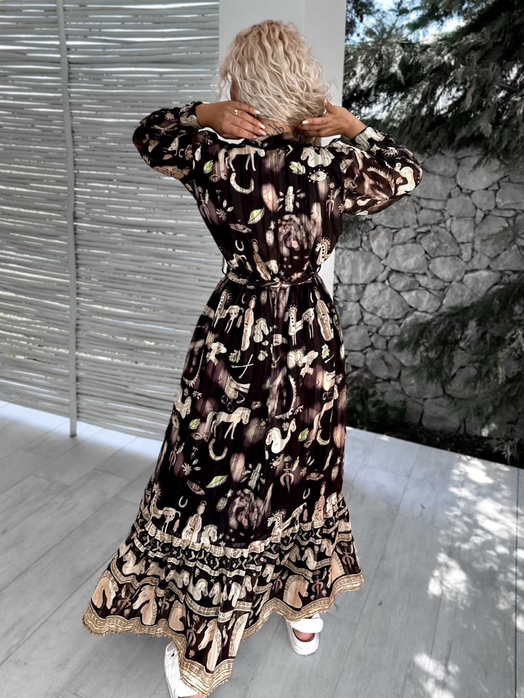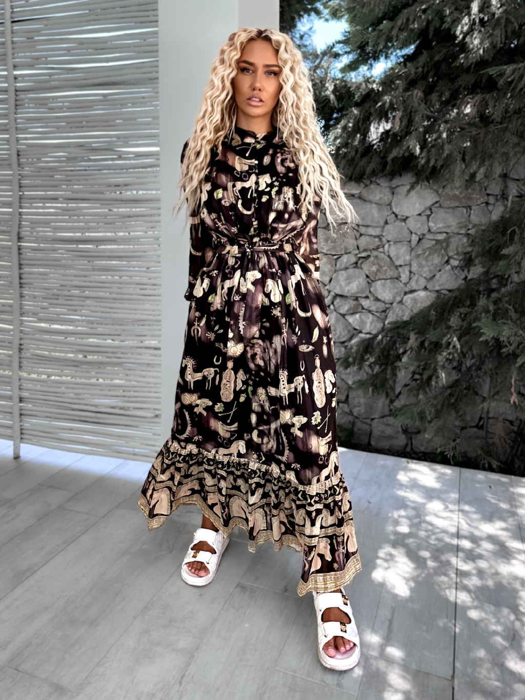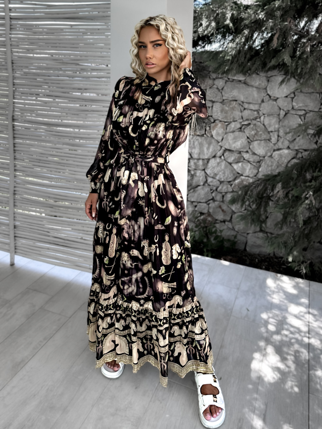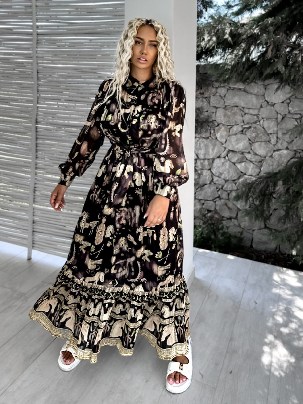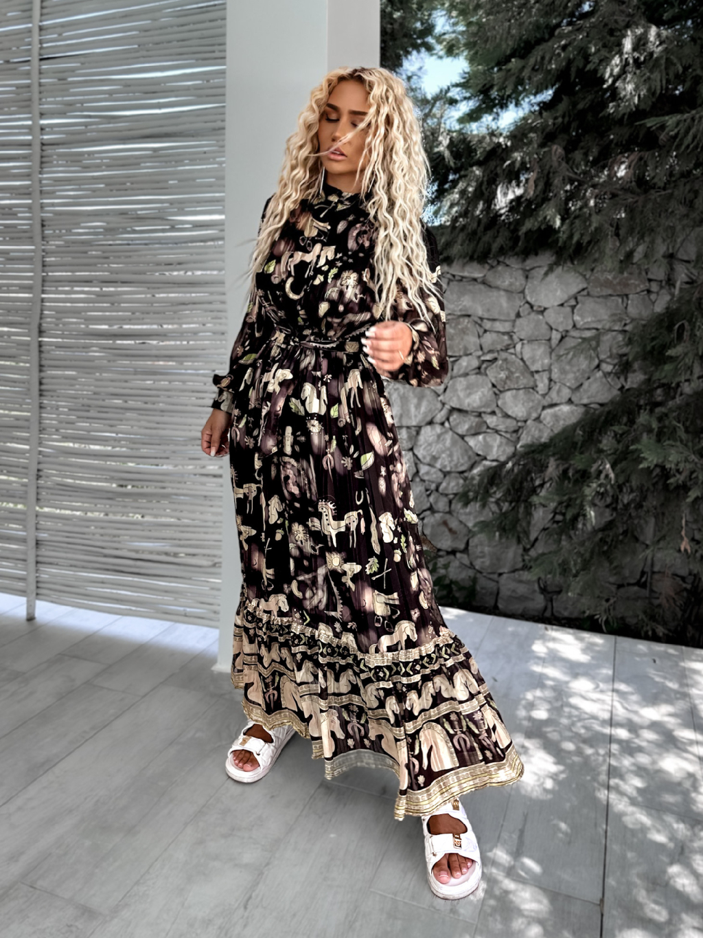 Černé dlouhé elegantní šaty KASELT se vzory