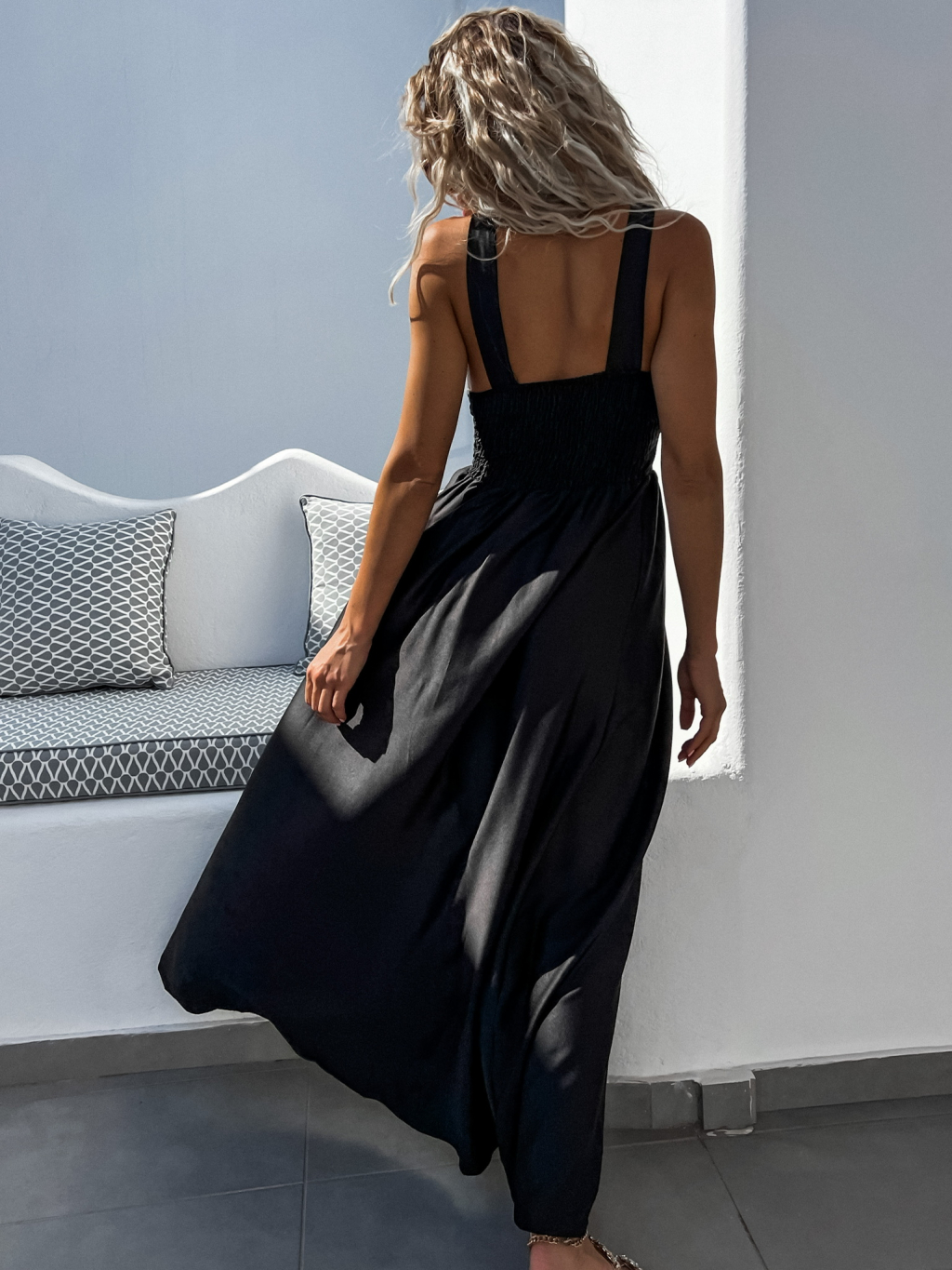 Černé dlouhé elegantní šaty LIESE s rozparkem