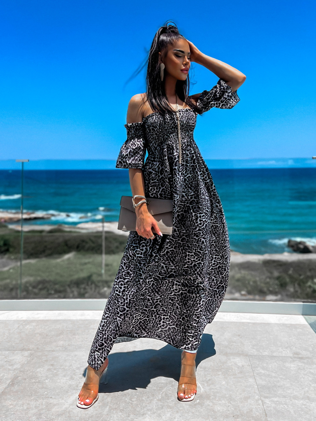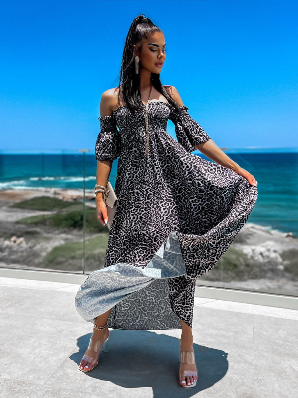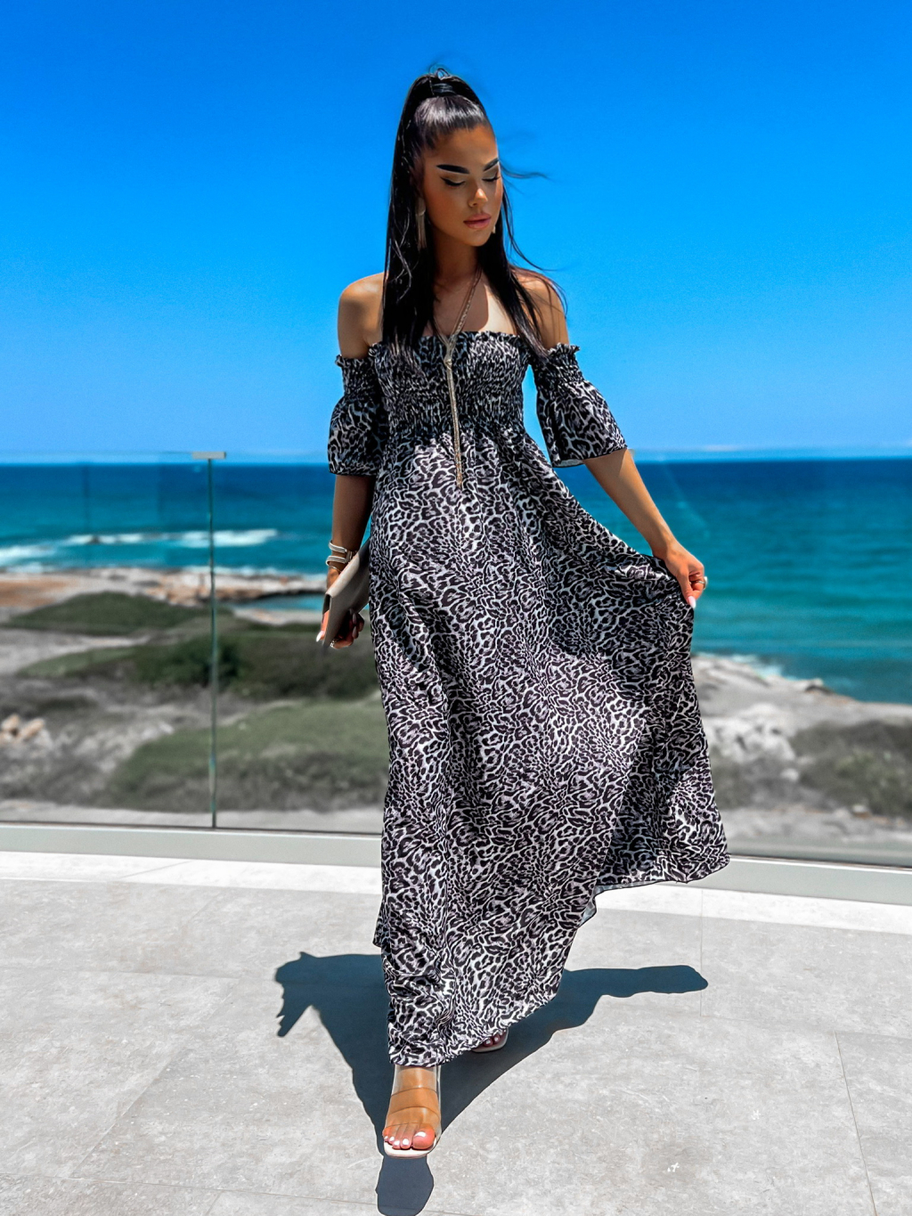 Černé dlouhé elegantní šaty MARIGOL s gepardím vzorem