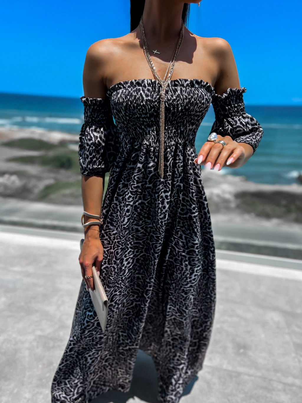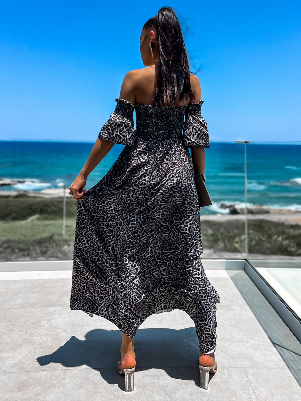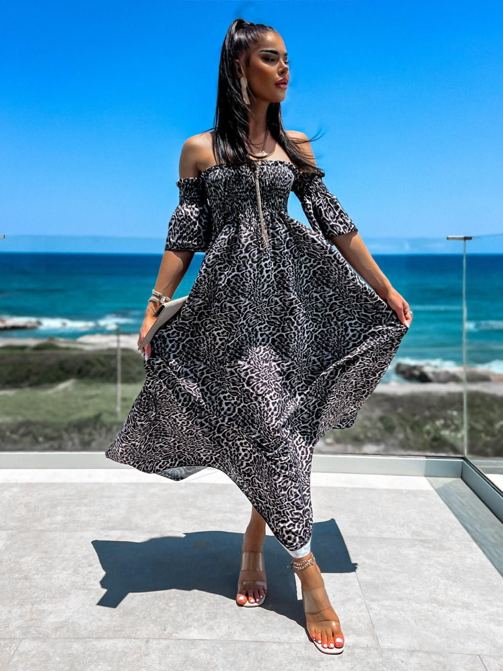 Černé dlouhé elegantní šaty MARIGOL s gepardím vzorem