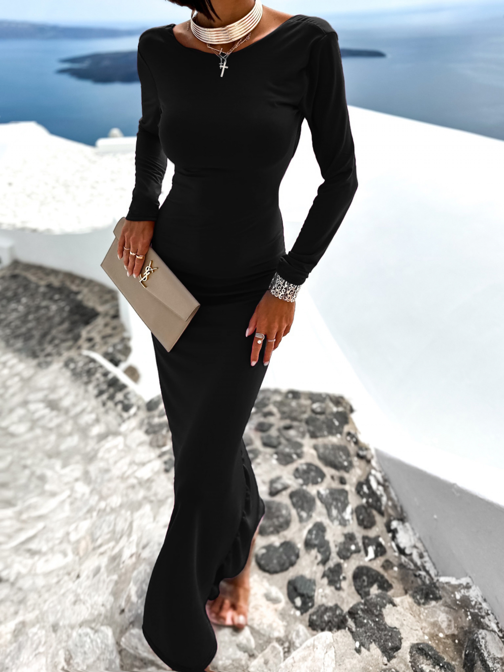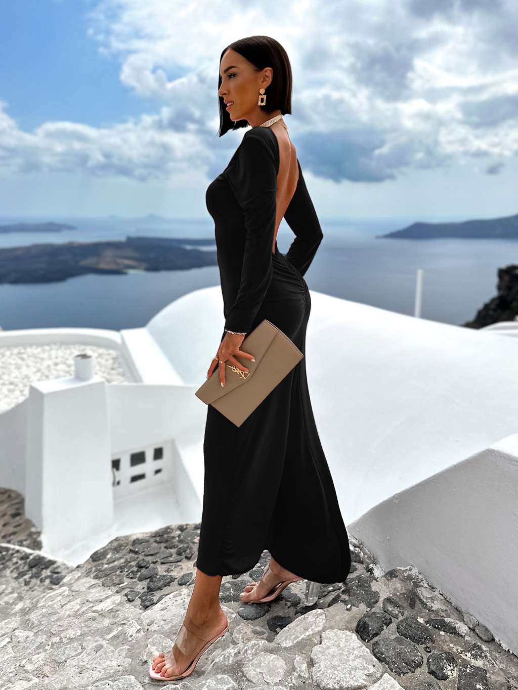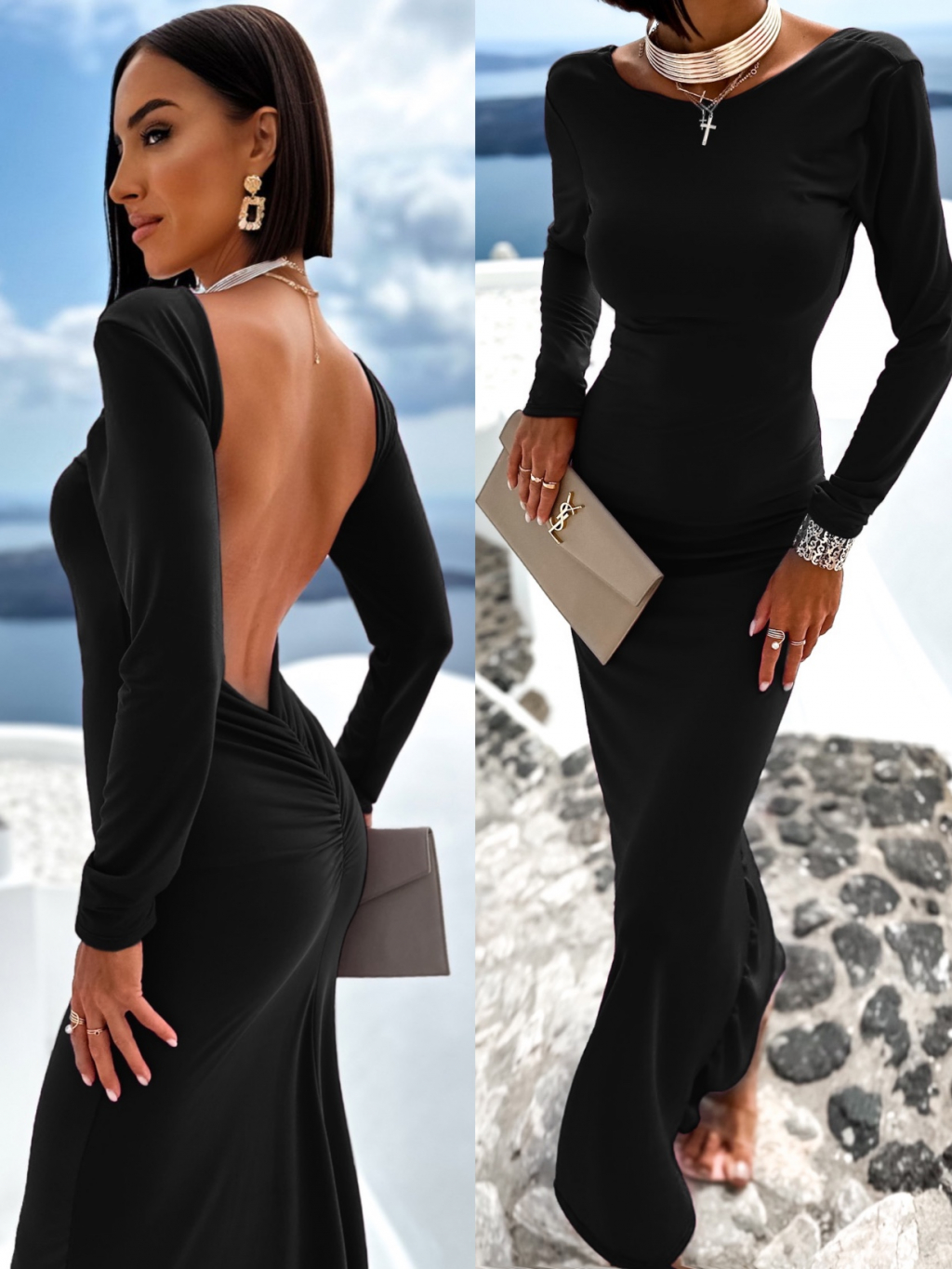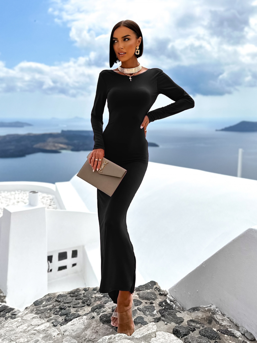 Černé dlouhé elegantní šaty NINTENI s průstřihem na zádech