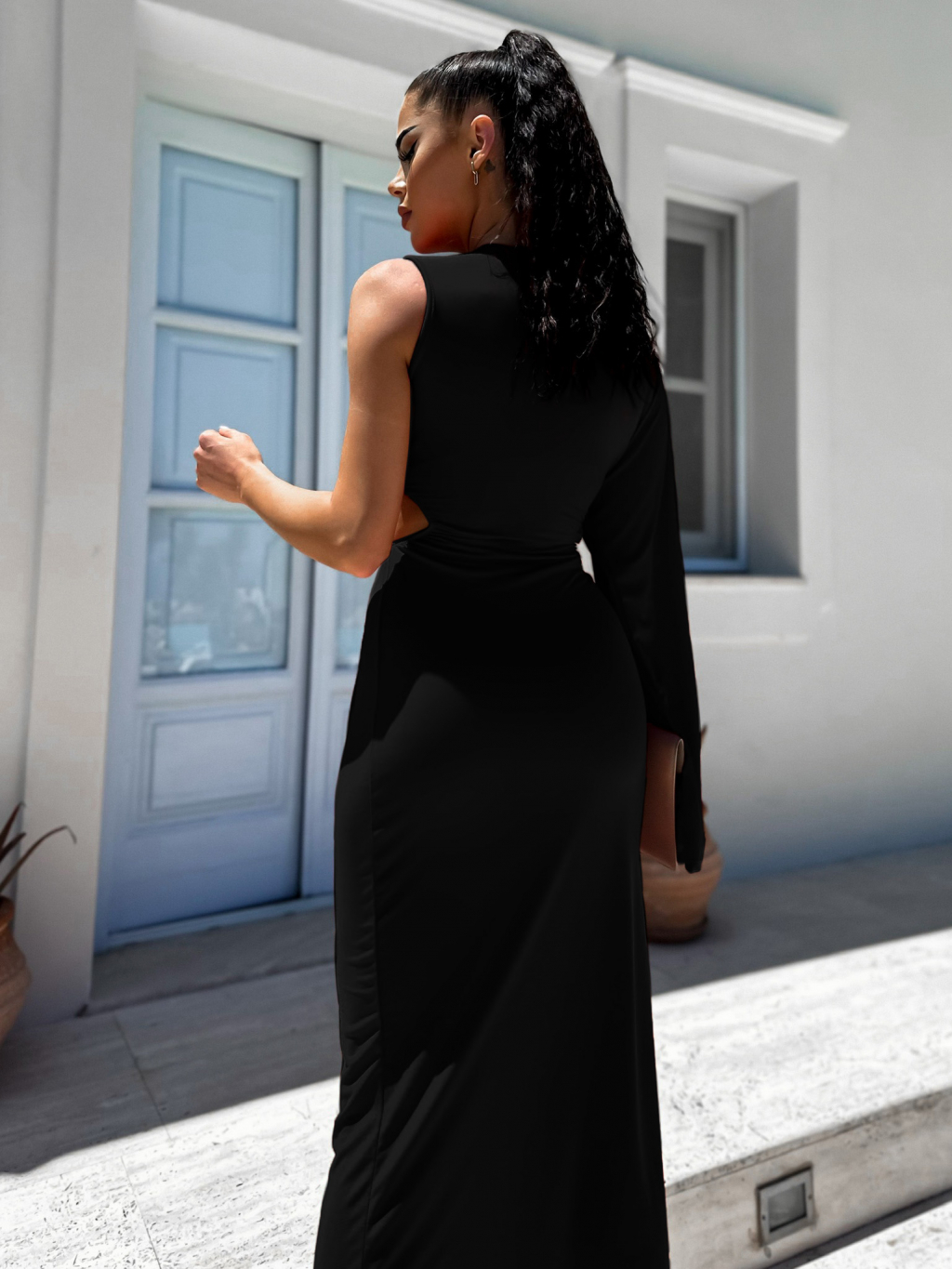Černé dlouhé elegantní šaty NONIENY s průstřihem