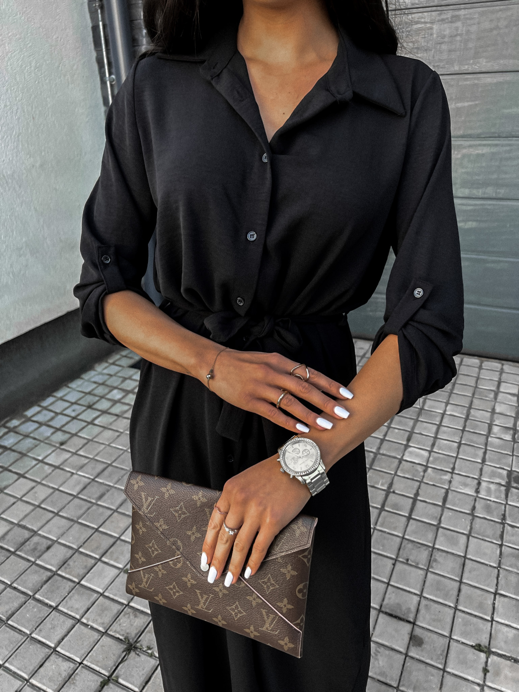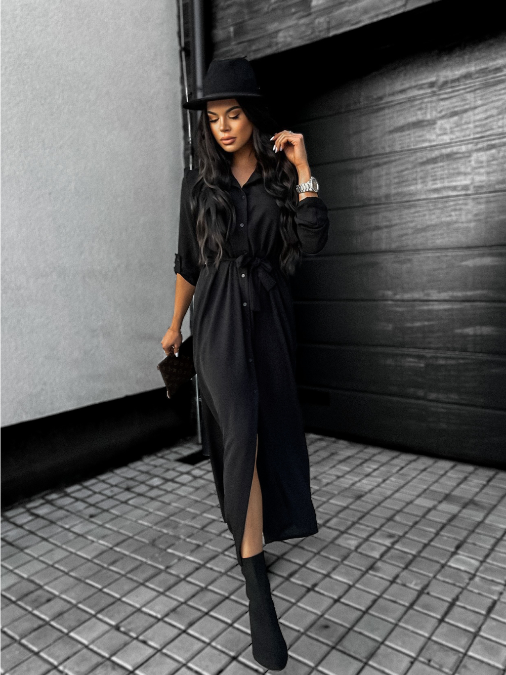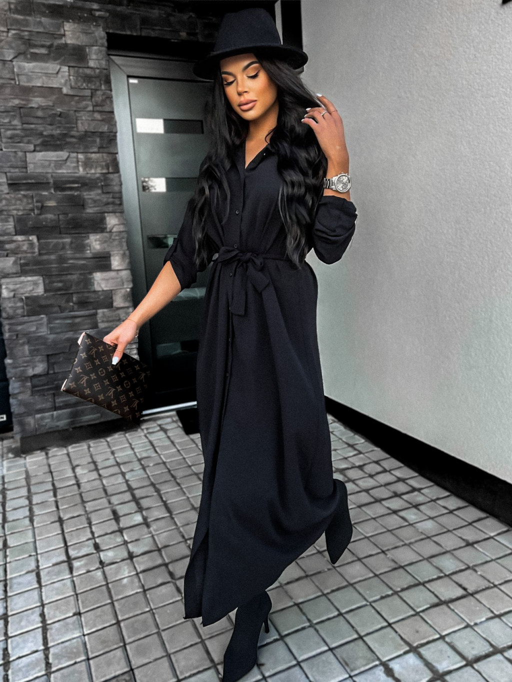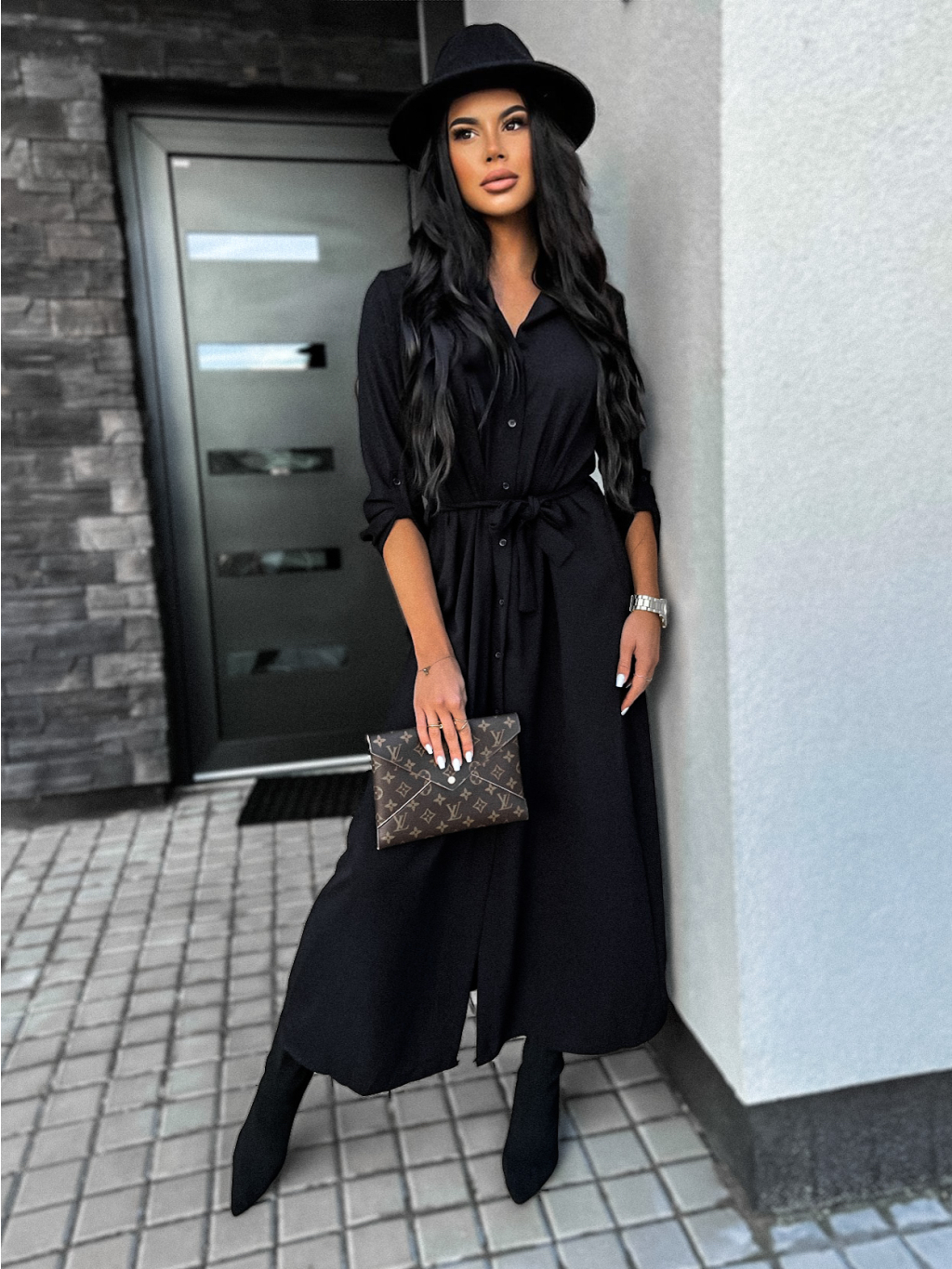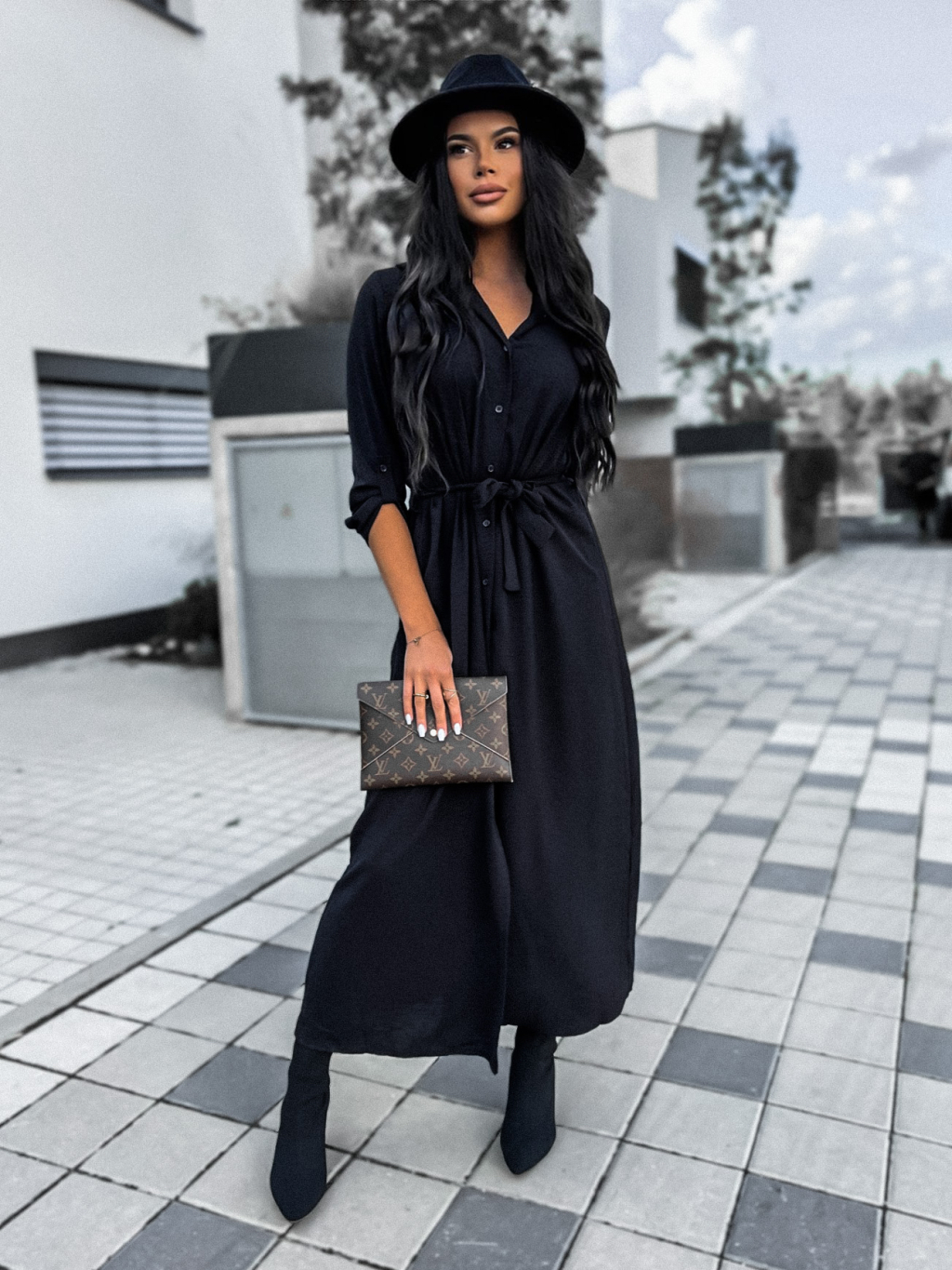 Černé dlouhé košilové šaty AMARILLO na zavazování