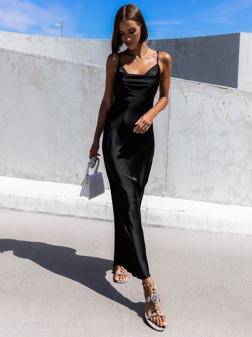Černé dlouhé lesklé šaty KARRIN