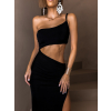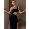 Černé dlouhé šaty VAPORYN přes jedno rameno