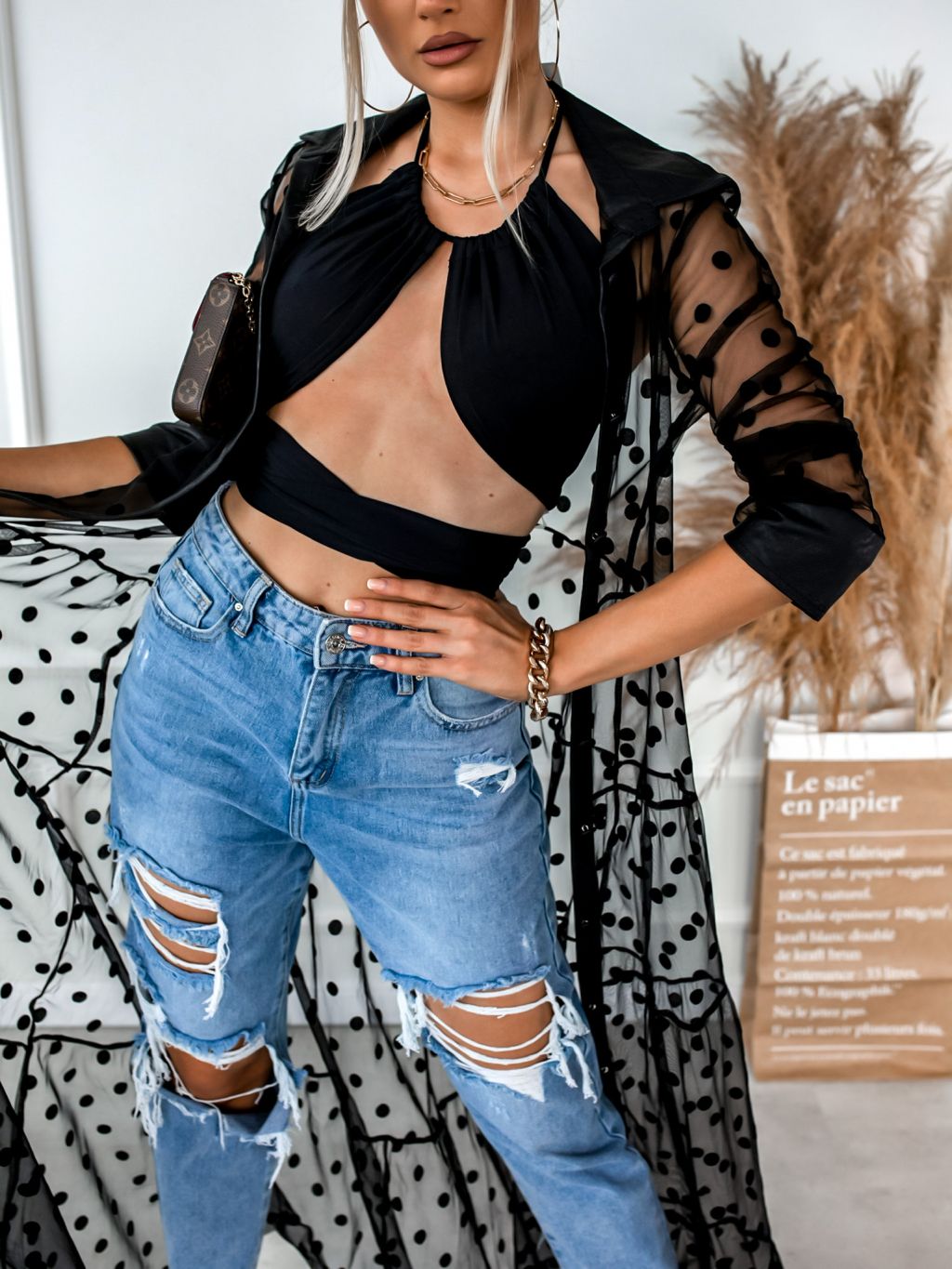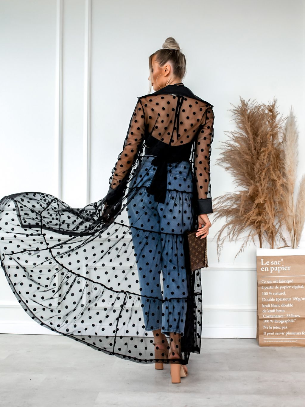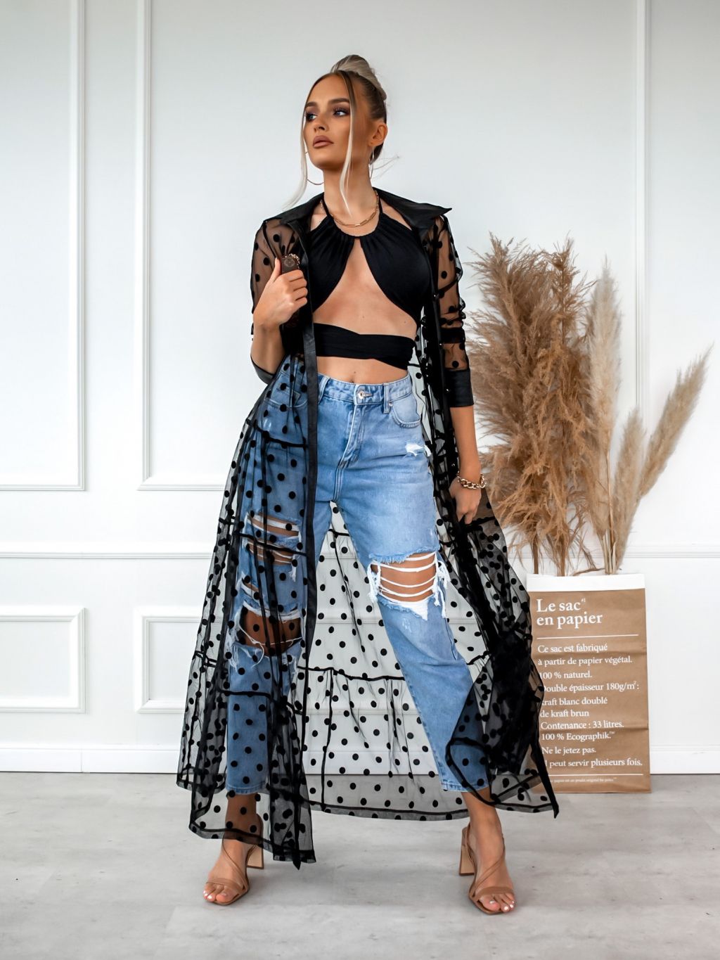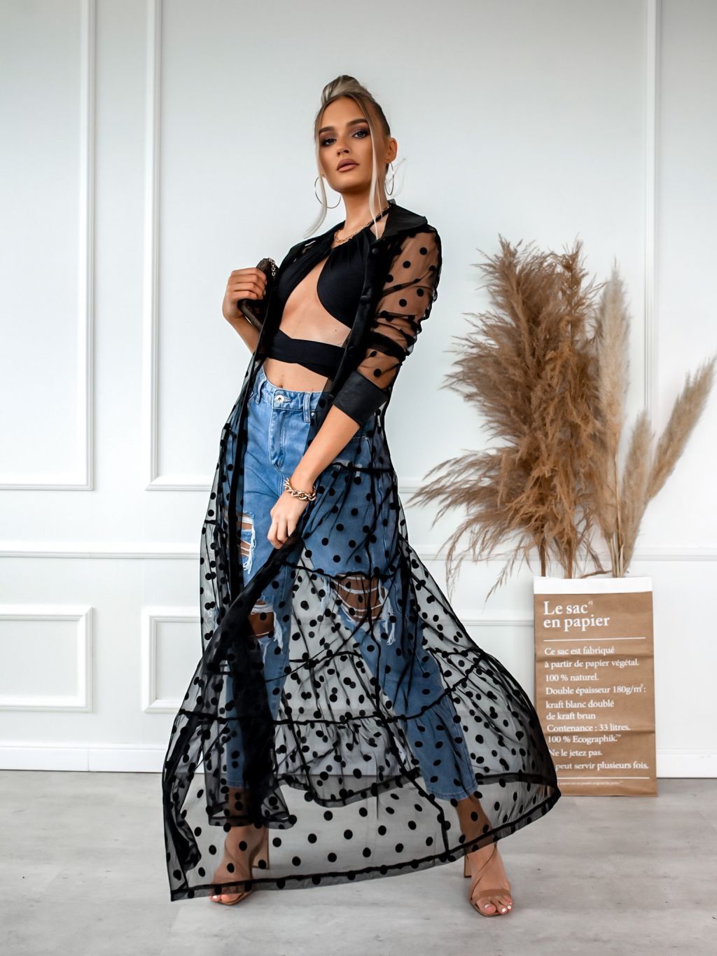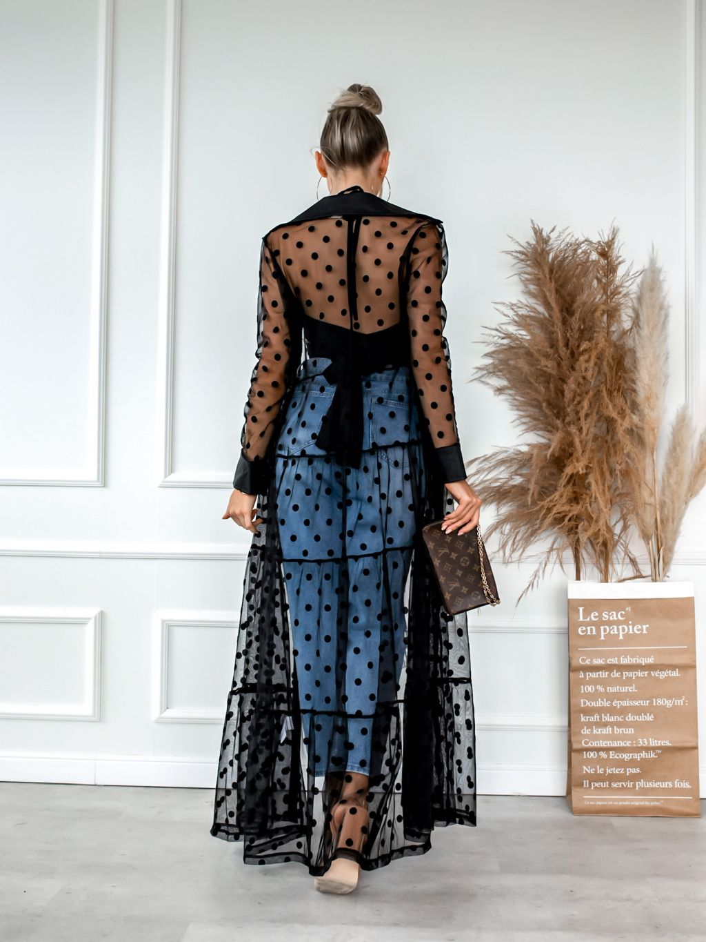 Černé dlouhé síťované šaty SUZETTA se vzorem