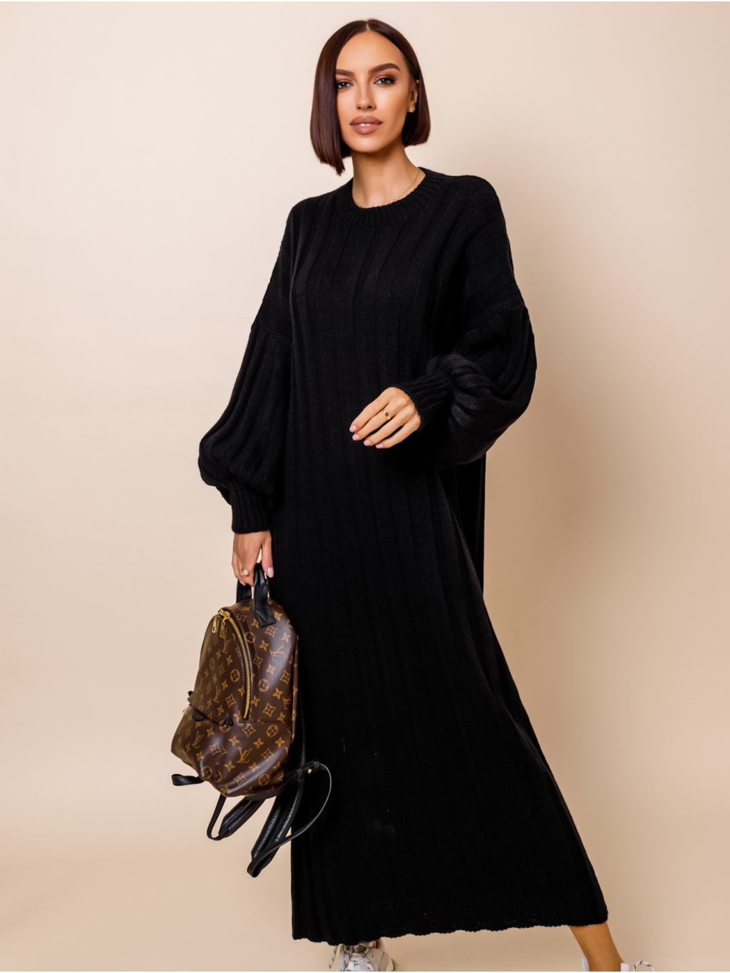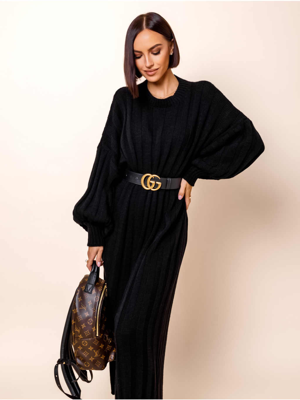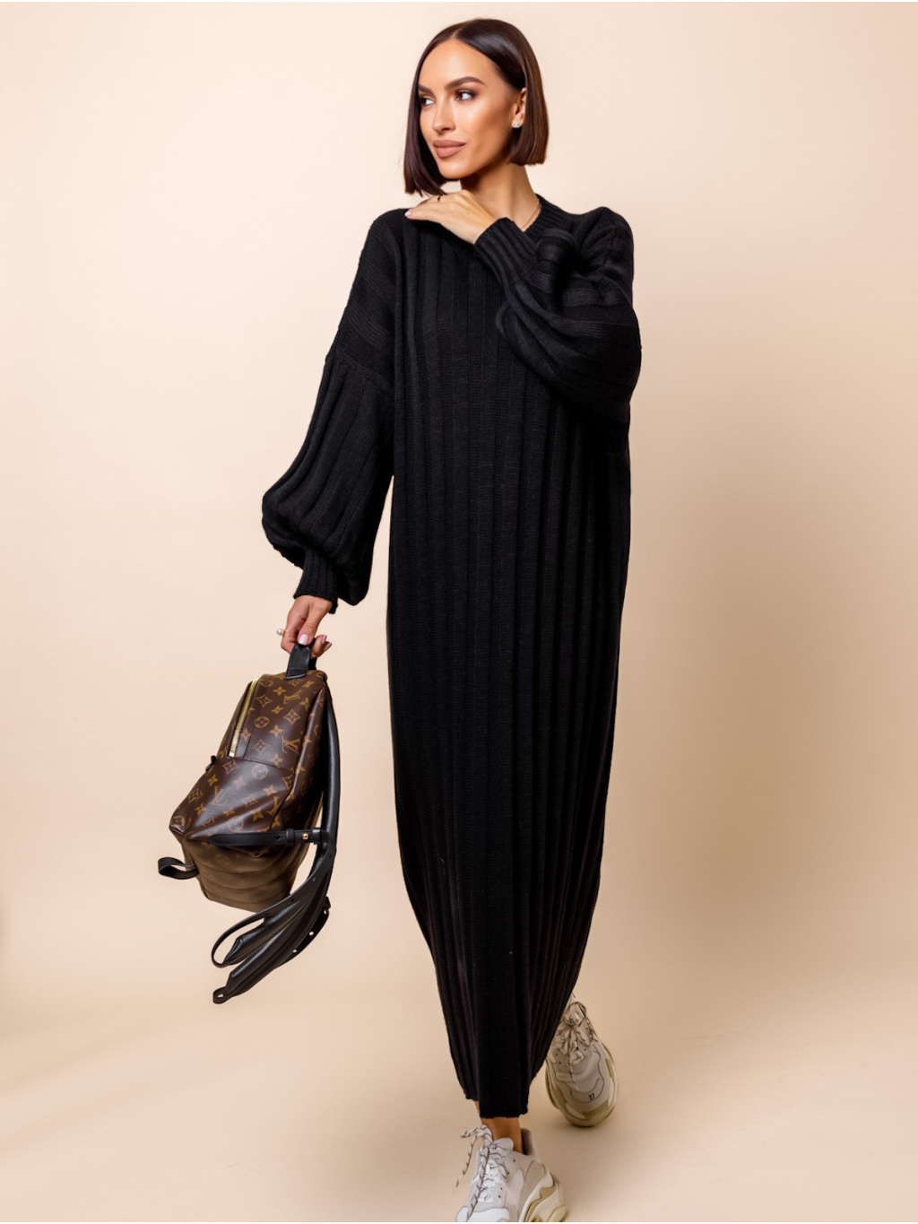 Černé dlouhé svetrové šaty ATIKY