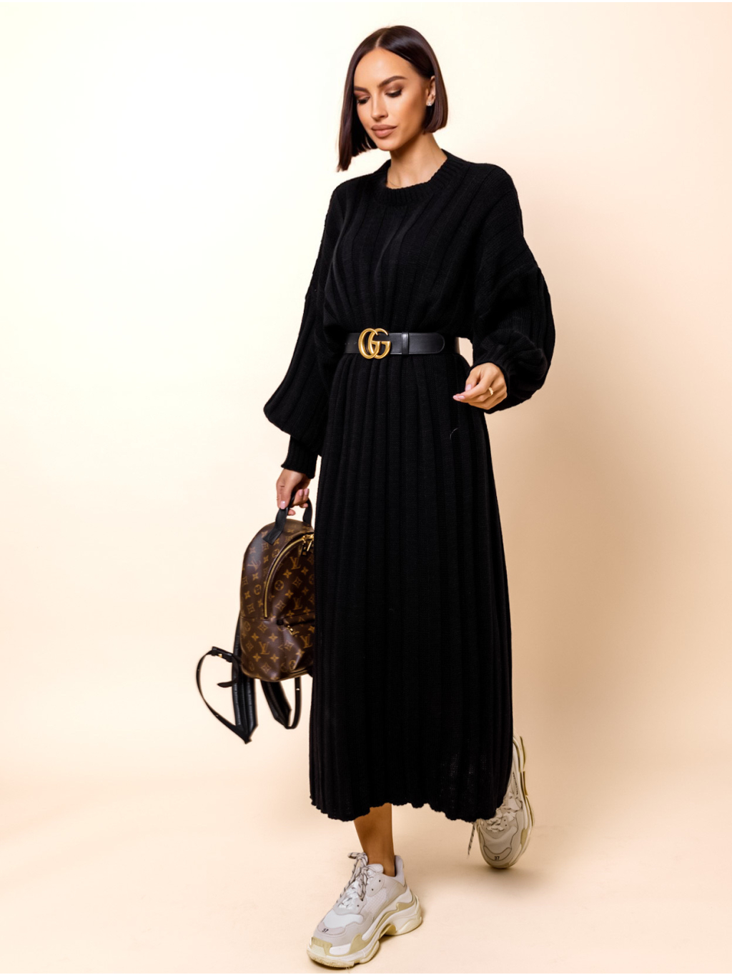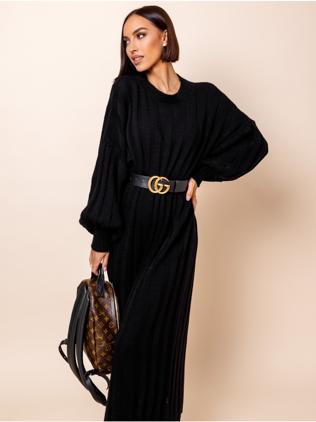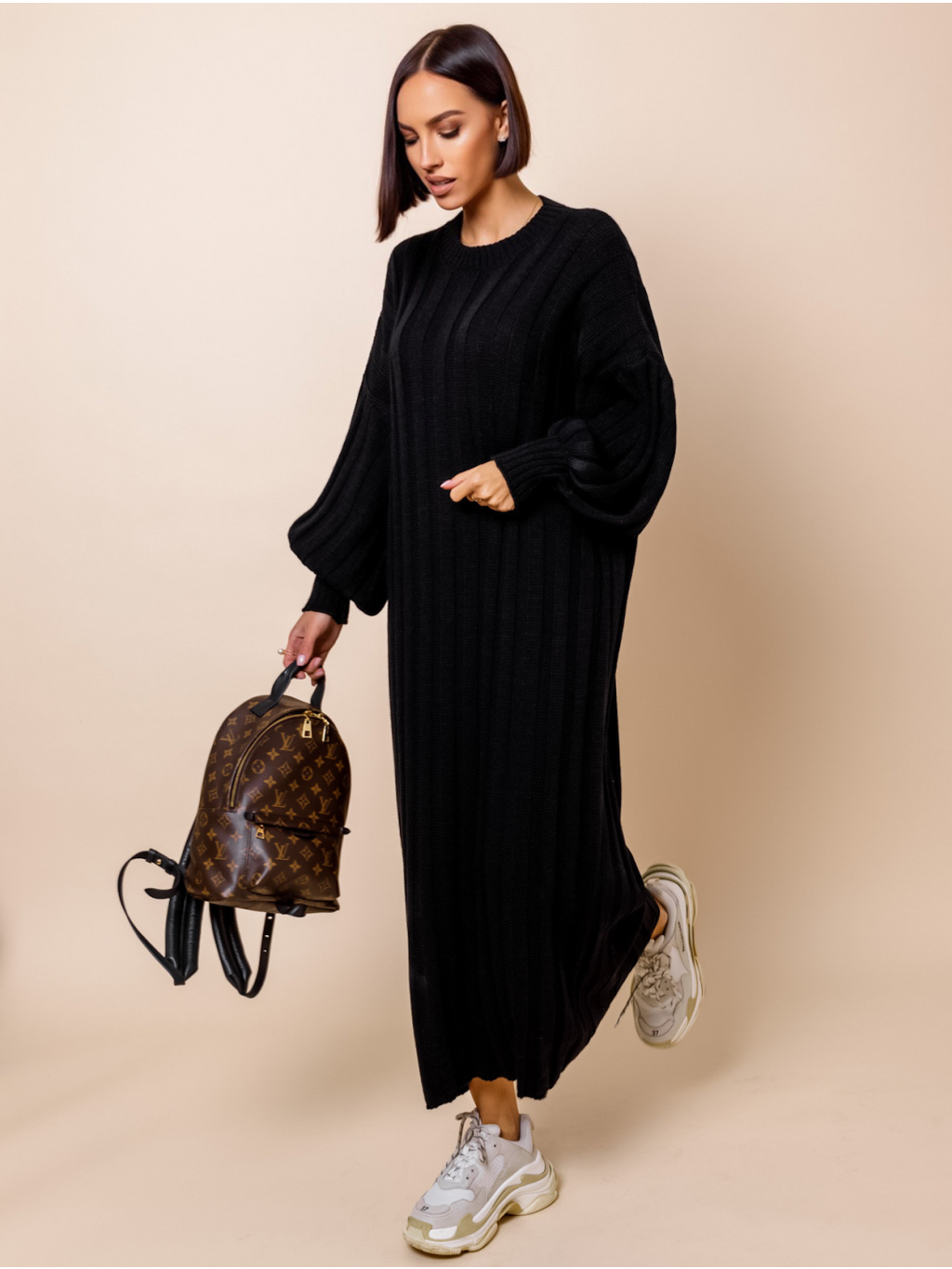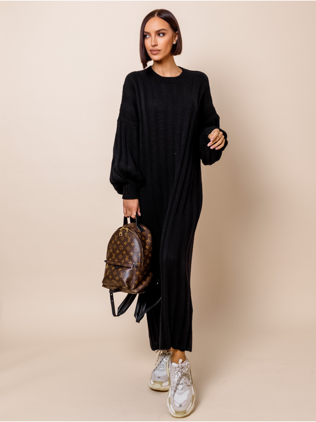 Černé dlouhé svetrové šaty ATIKY