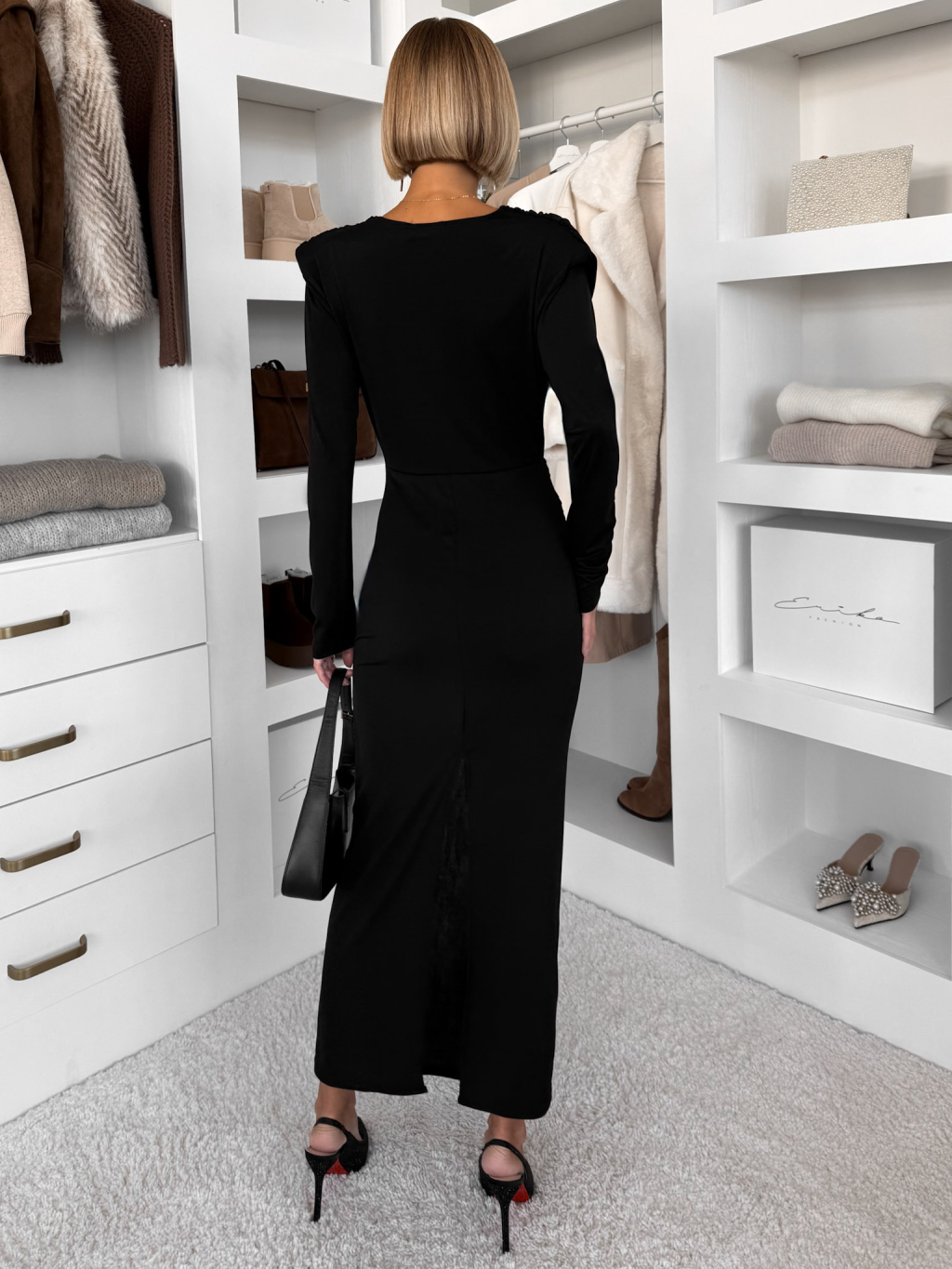 Černé elegantní dlouhé šaty MARVO s řasením