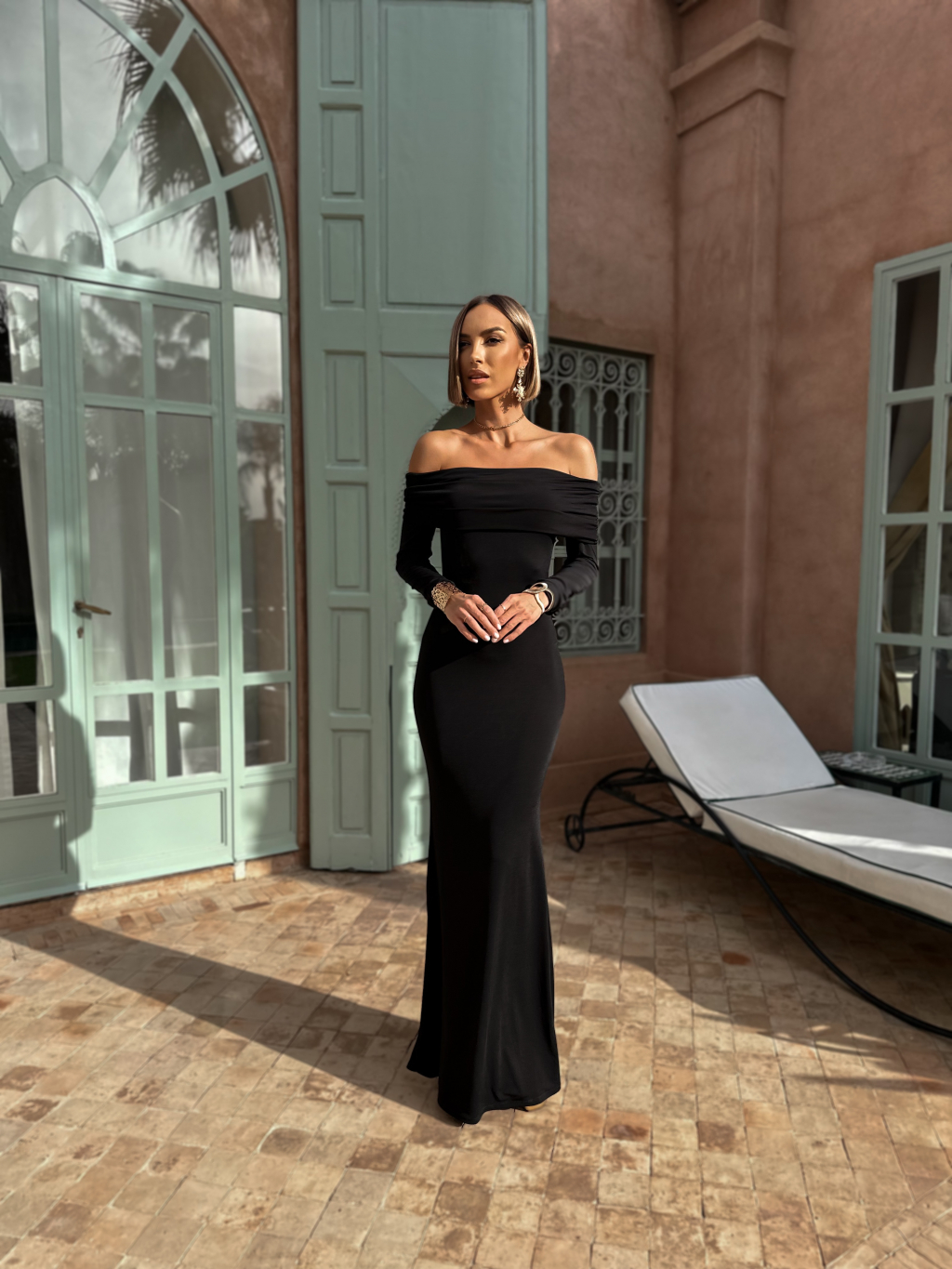 Černé elegantní dlouhé šaty TITHOMOS se spadlými rameny