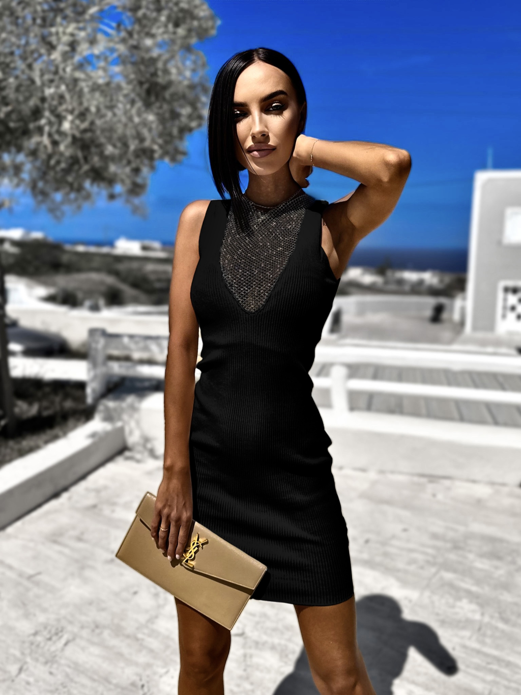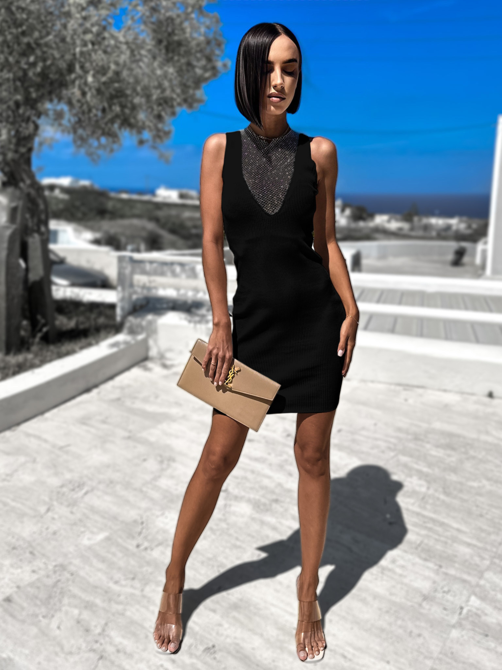 Černé elegantní šaty GLITTERN s detailem