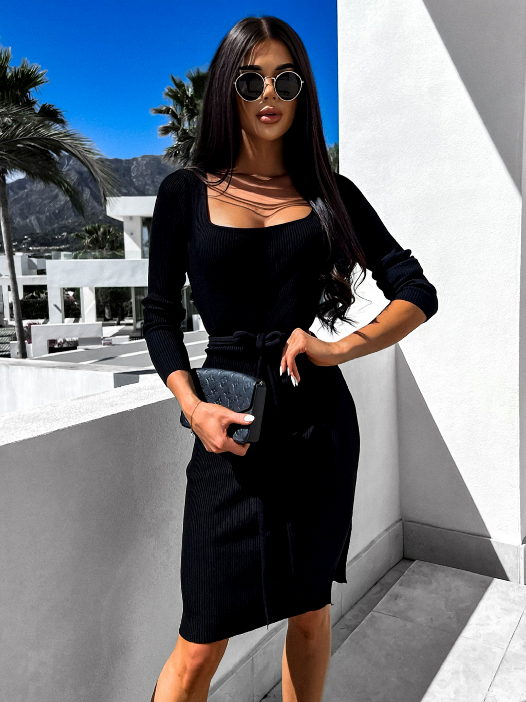 Černé elegantní šaty LEANDERY s vázáním