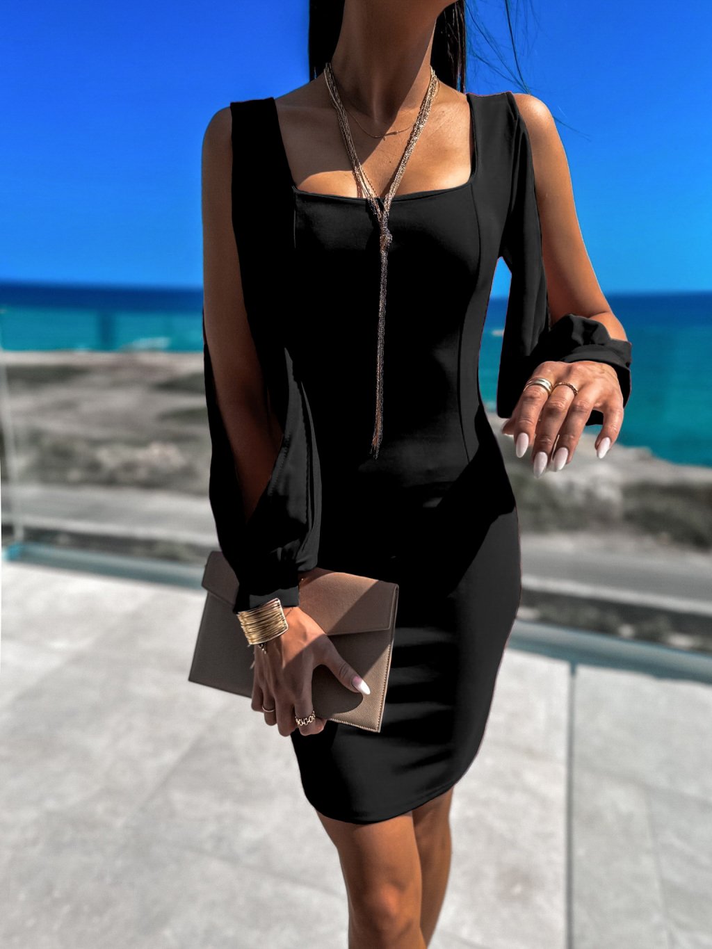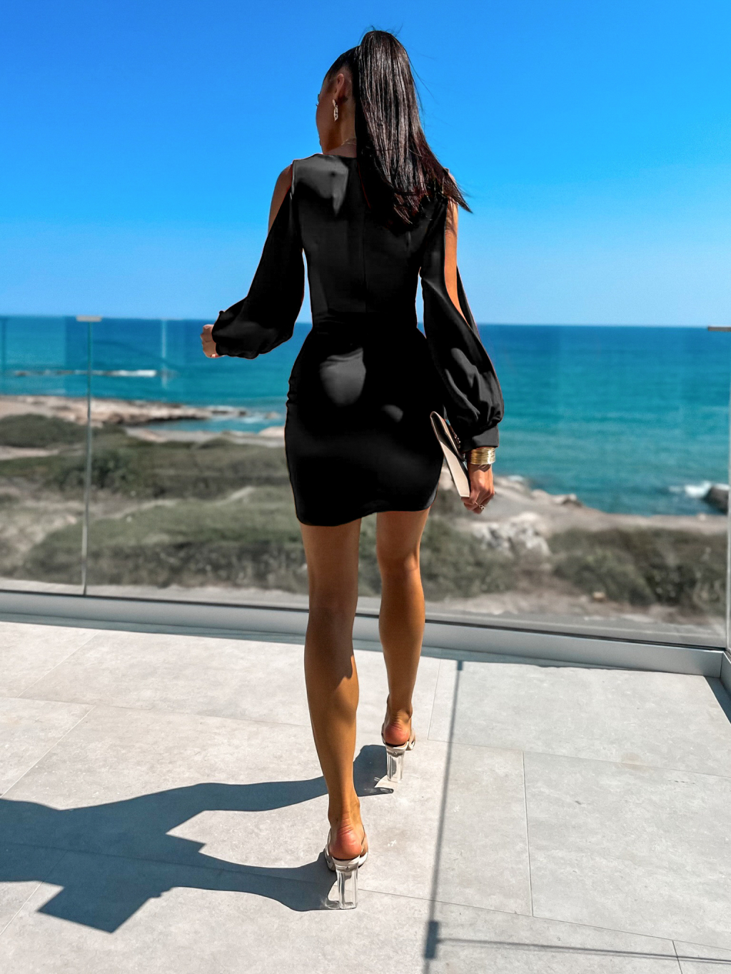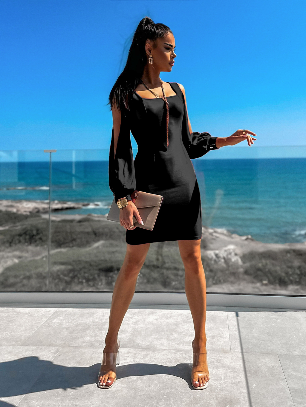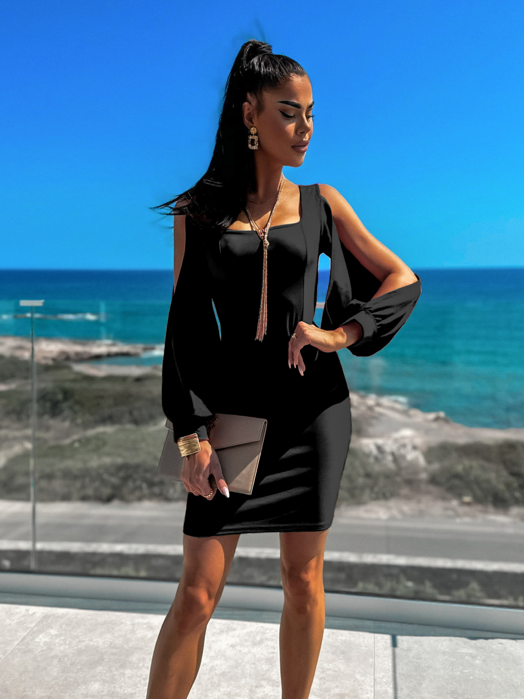 Černé elegantní šaty RENDAE s průstřihy na rukávu