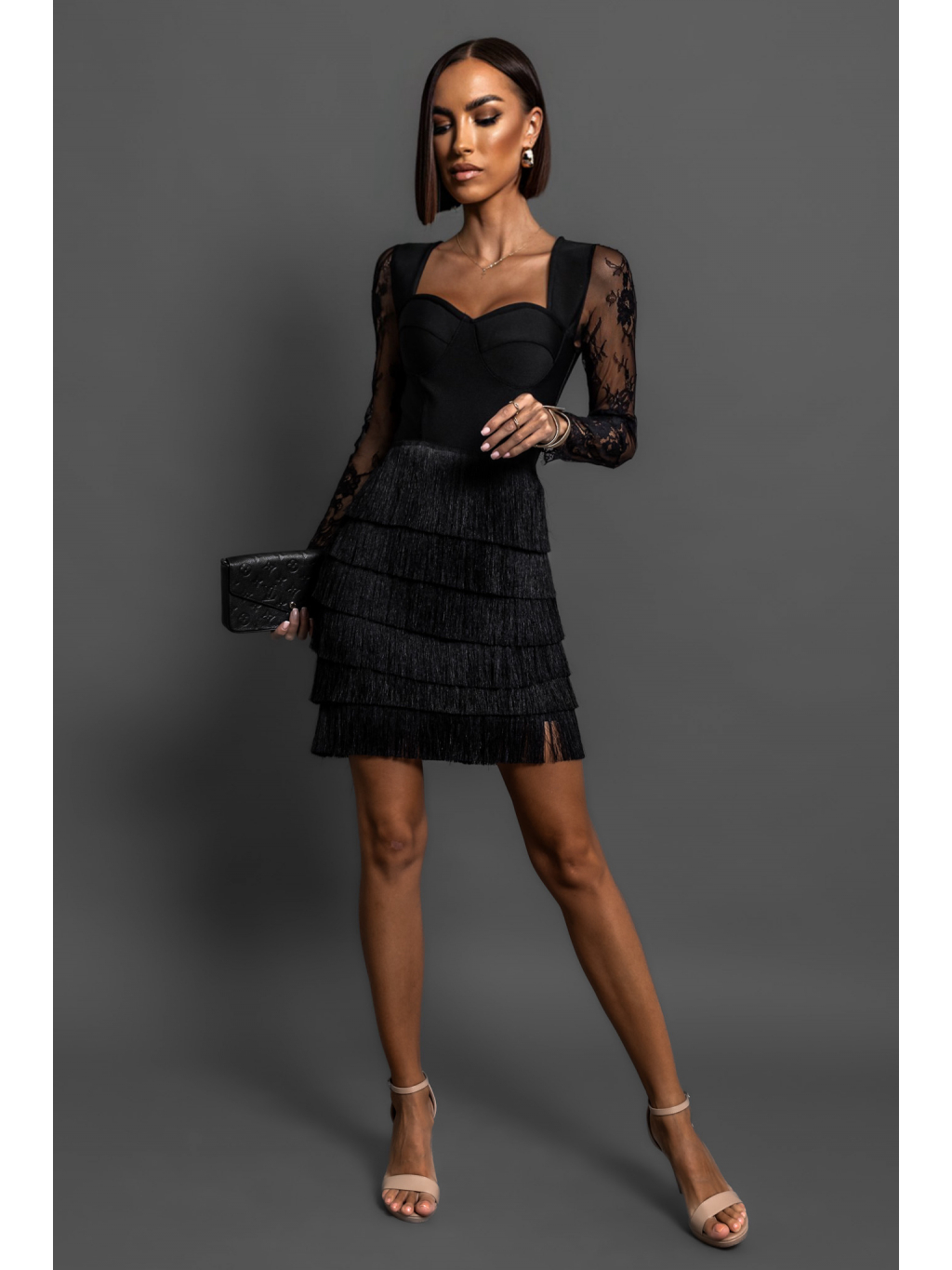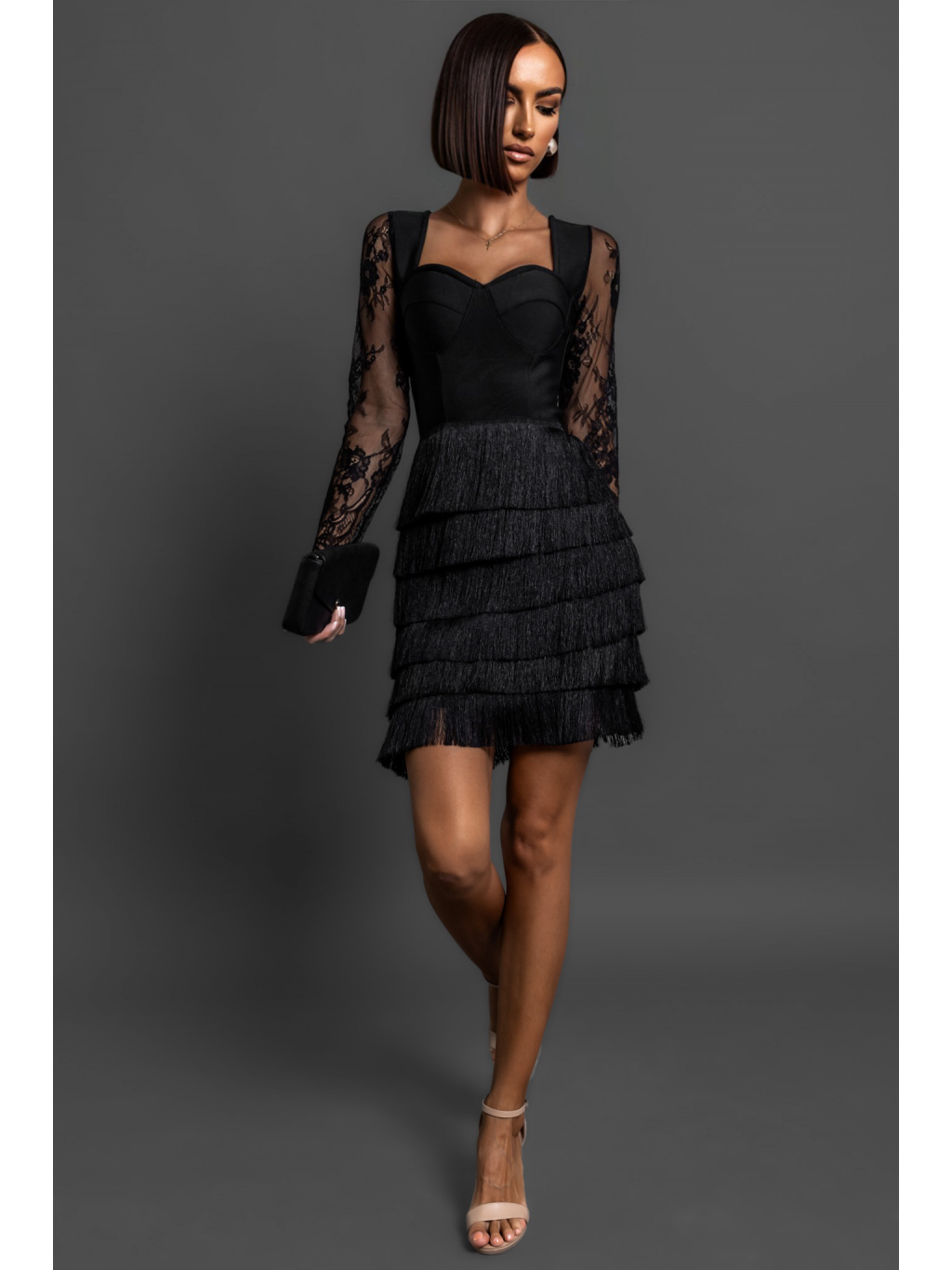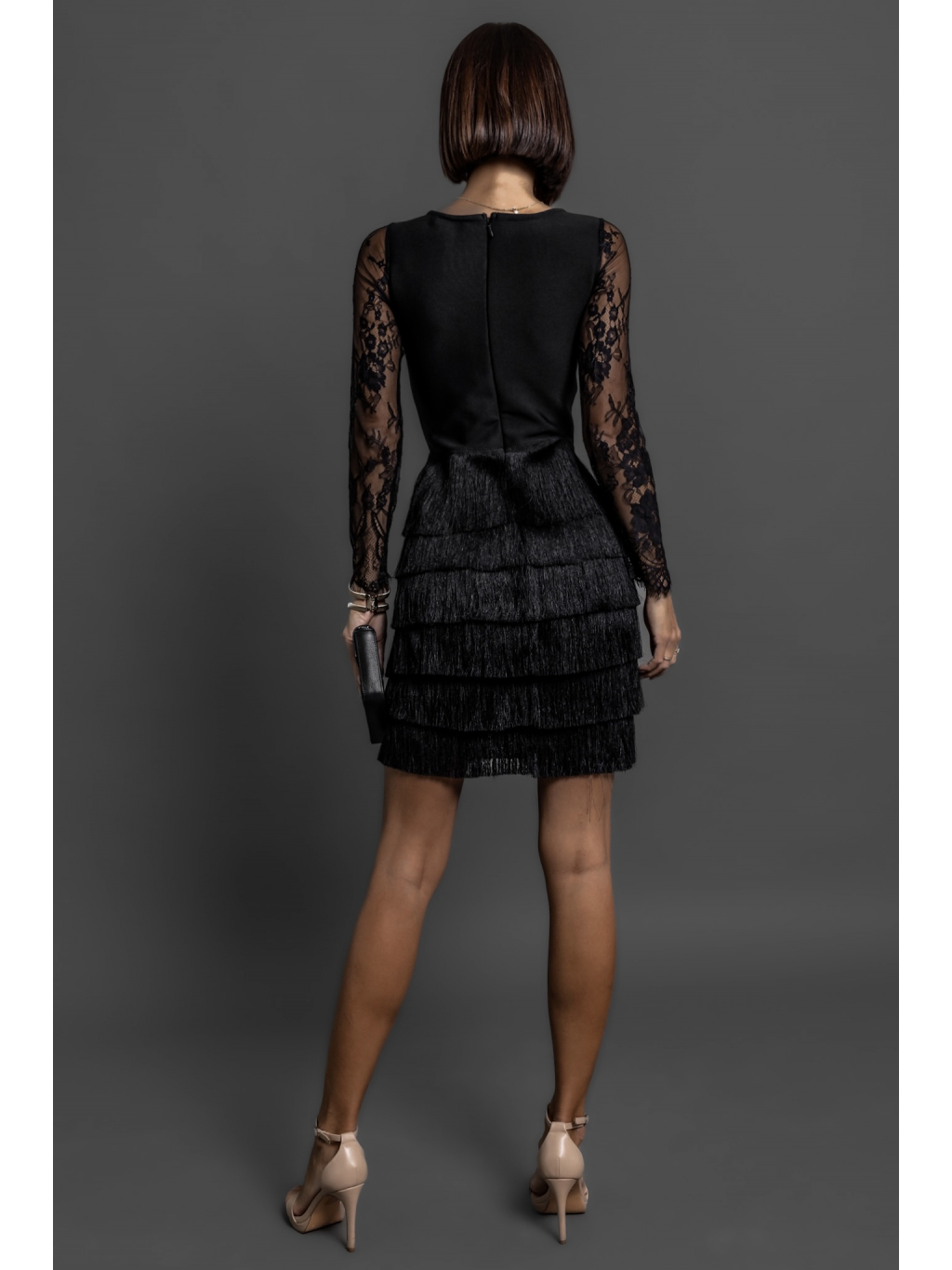 Černé koktejlové elegantní šaty HOLLDER s třásněmi