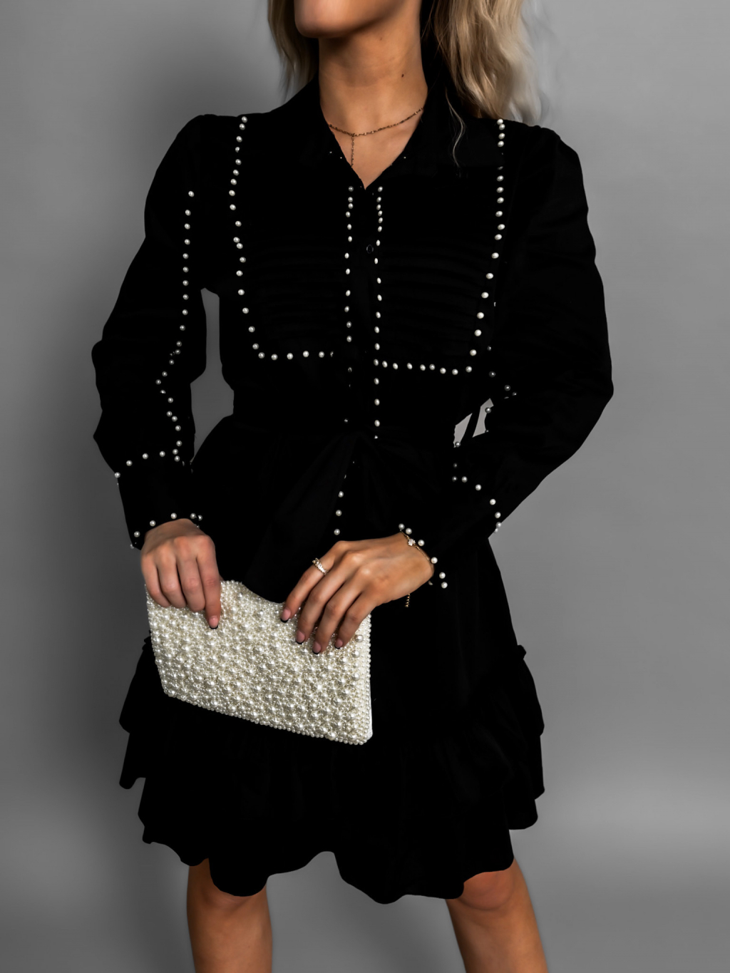 Černé košilové šaty MUSTAFA s perličkami 95% bavlna