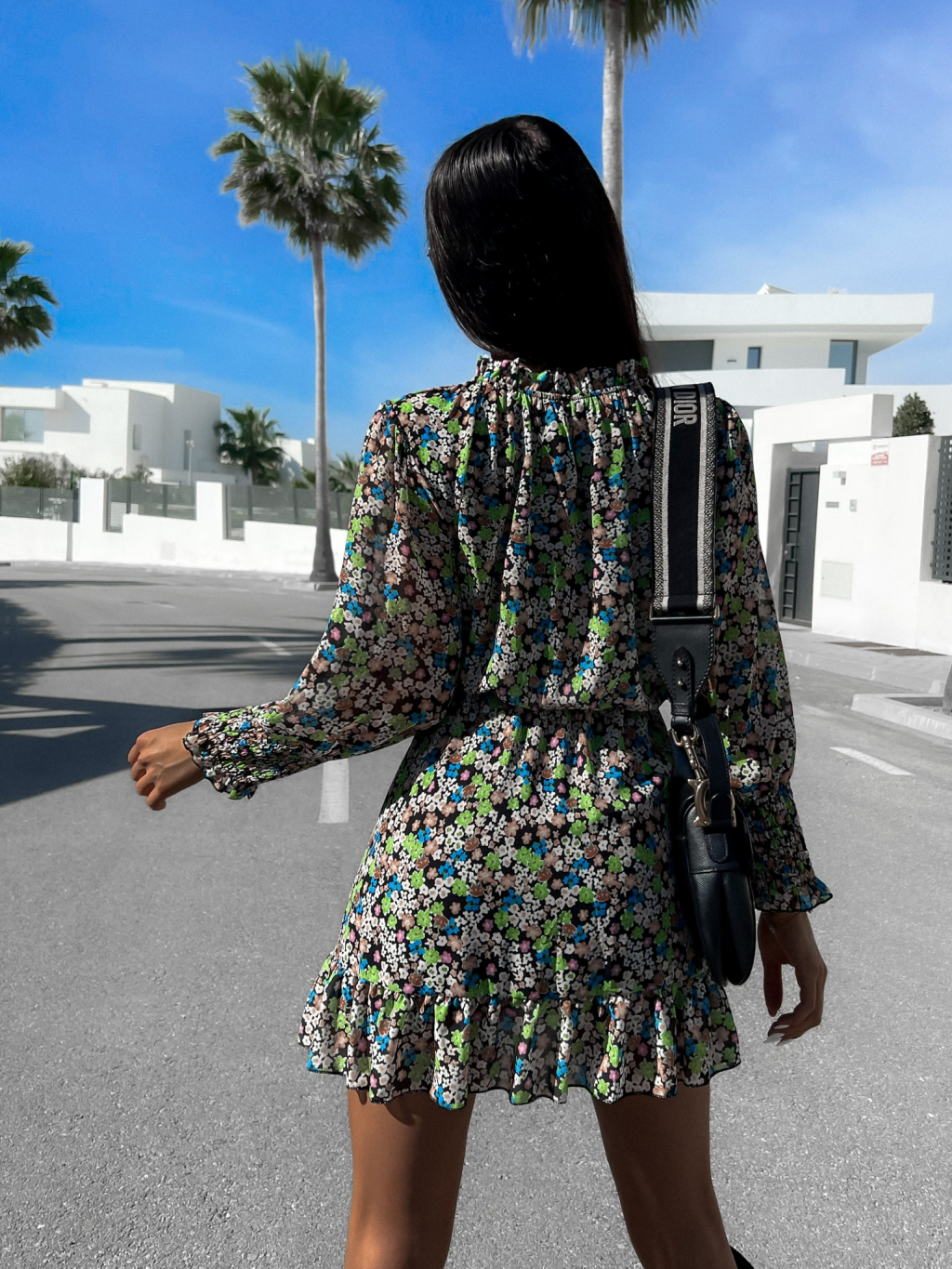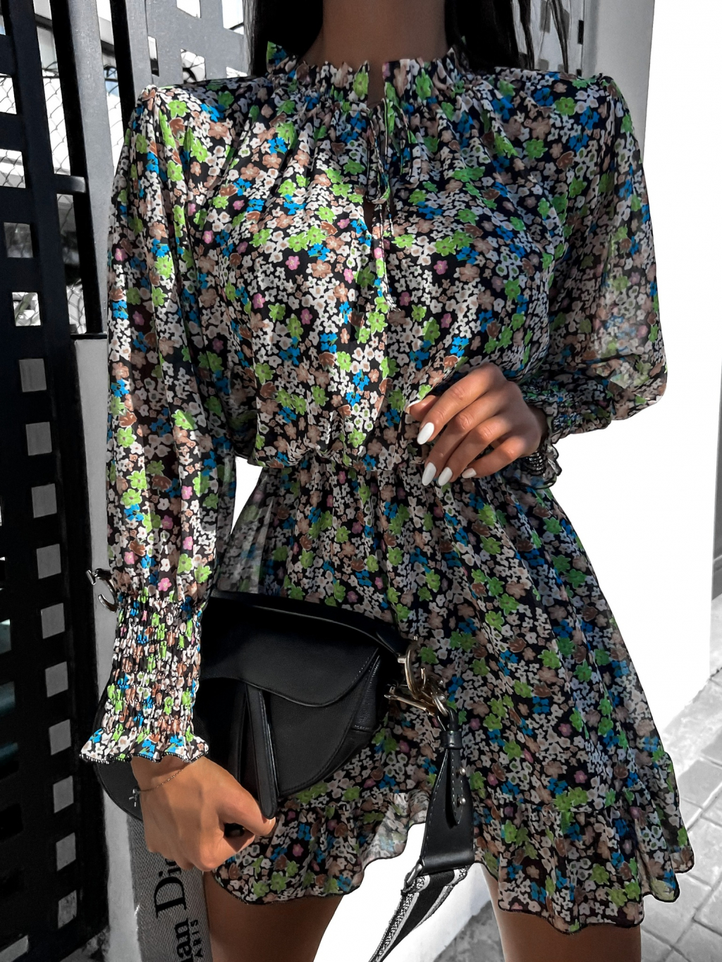 Černé květinové šaty BONDI s volánky