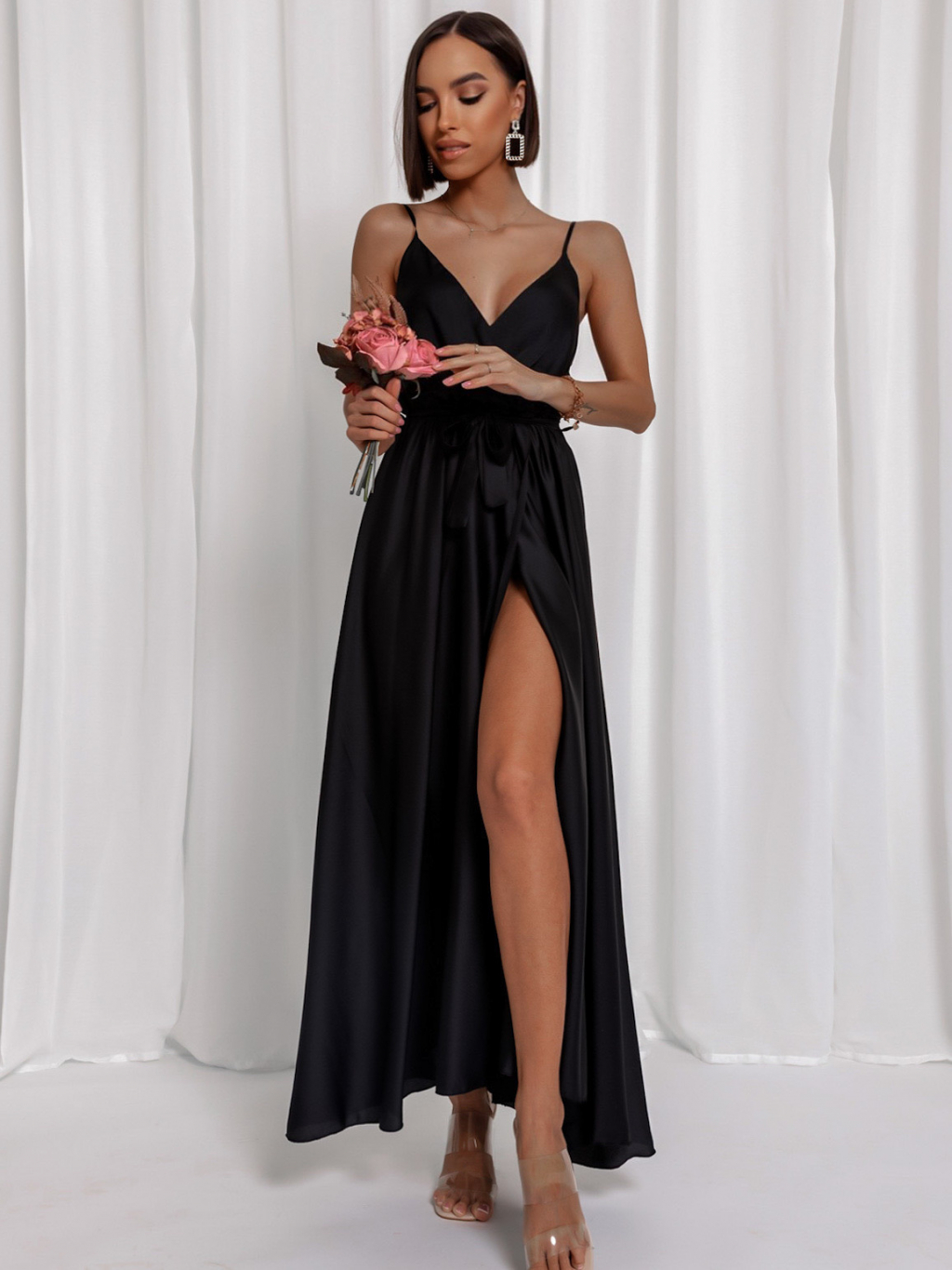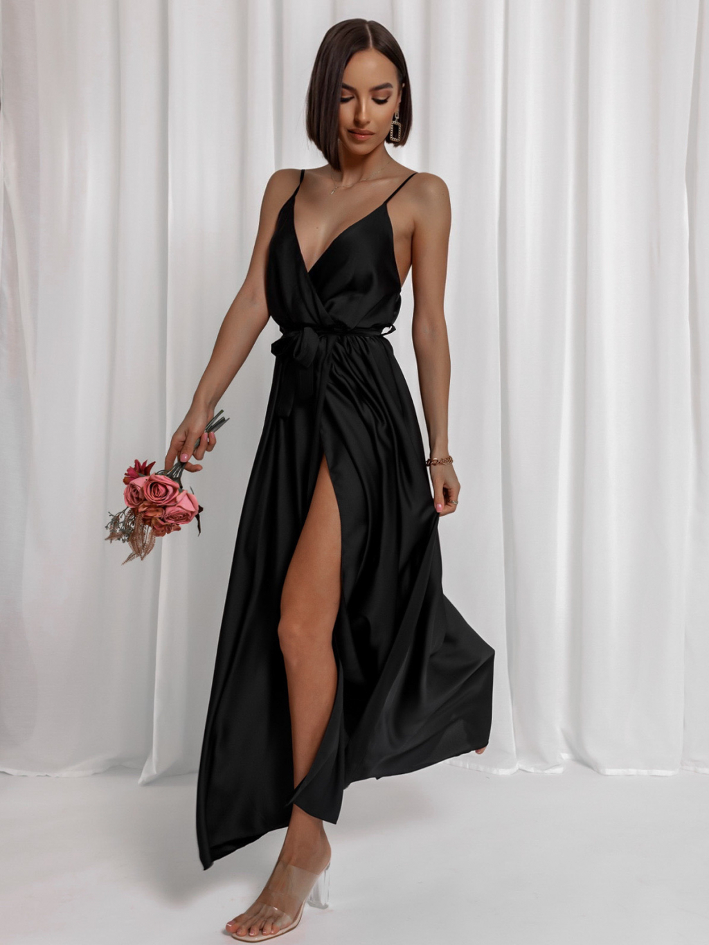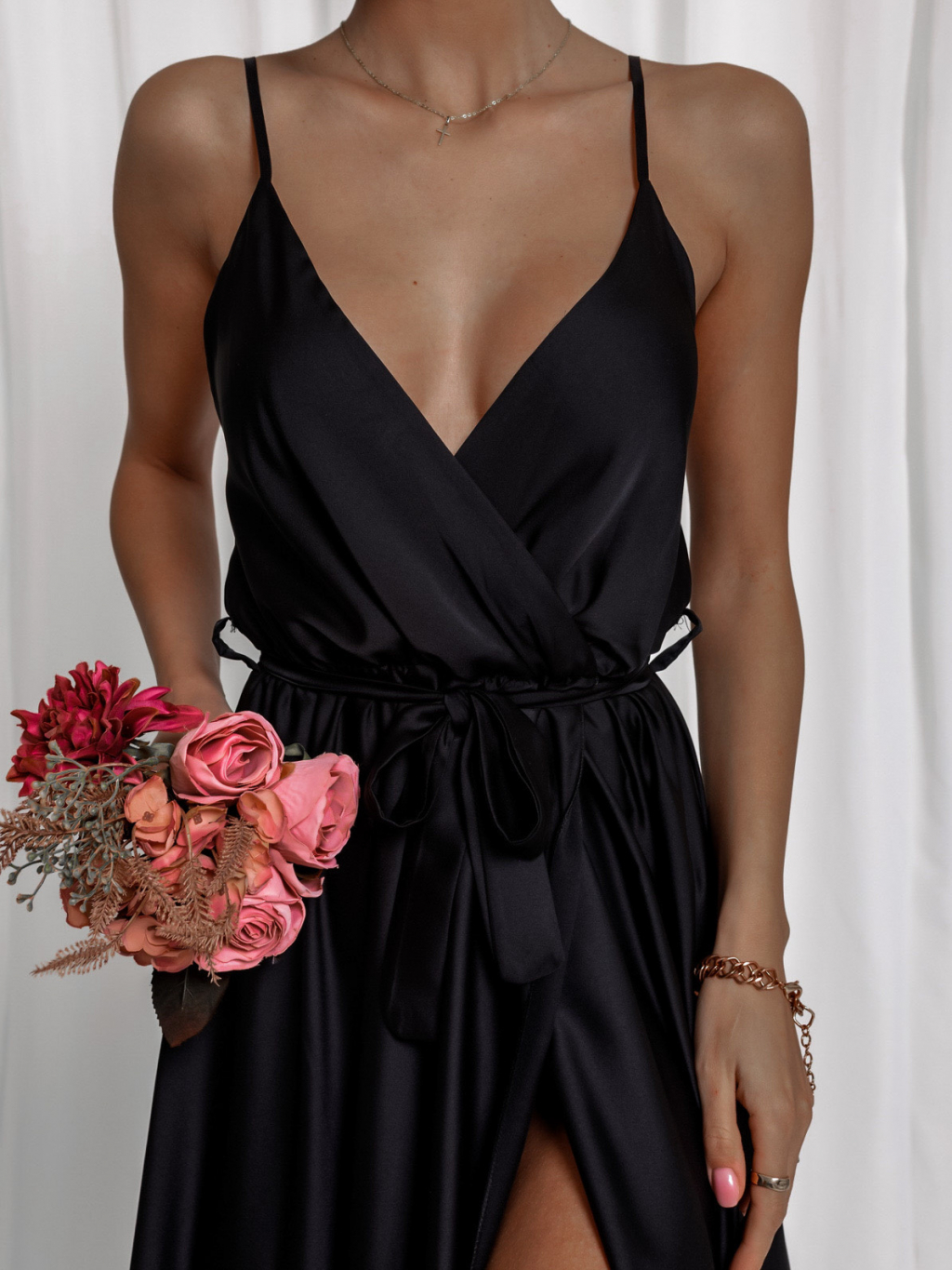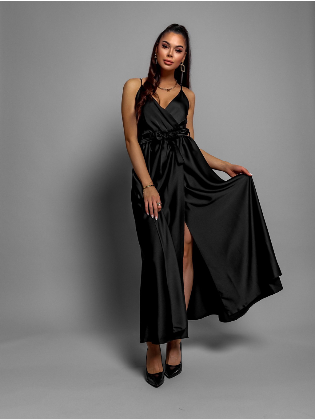 Černé lesklé dlouhé plesové šaty FAIRYTALE pro družičky