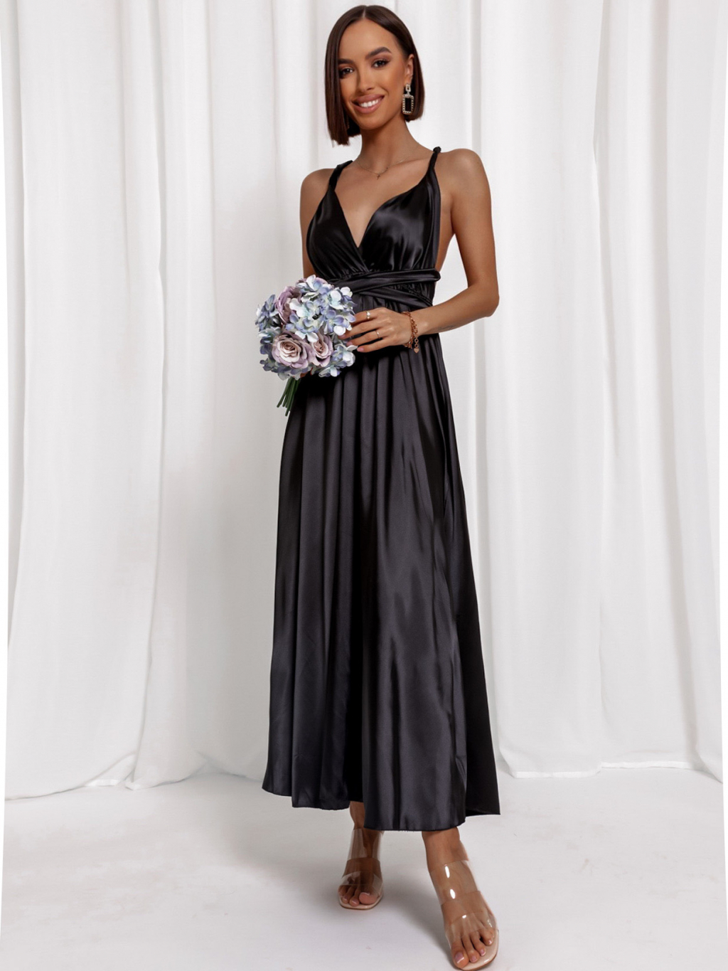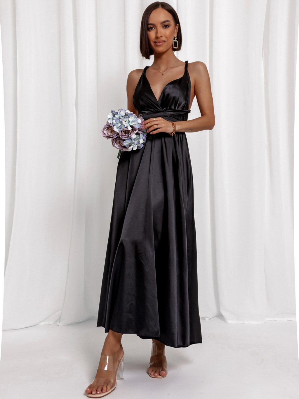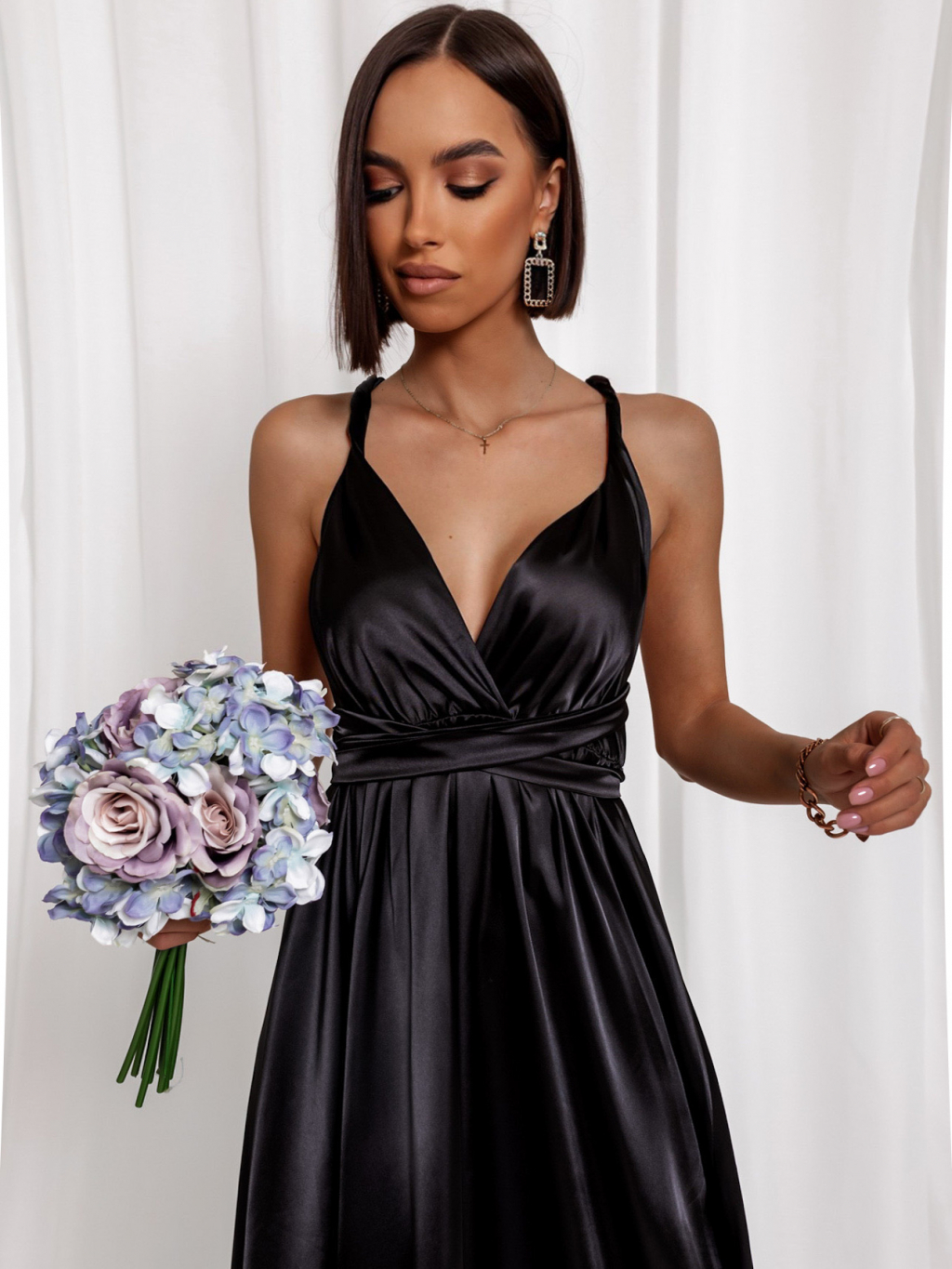 Černé lesklé šaty VALERDY s variabilním vázáním / bez rozparku