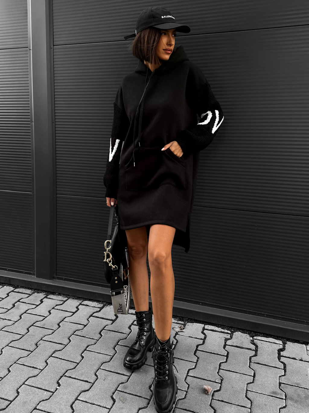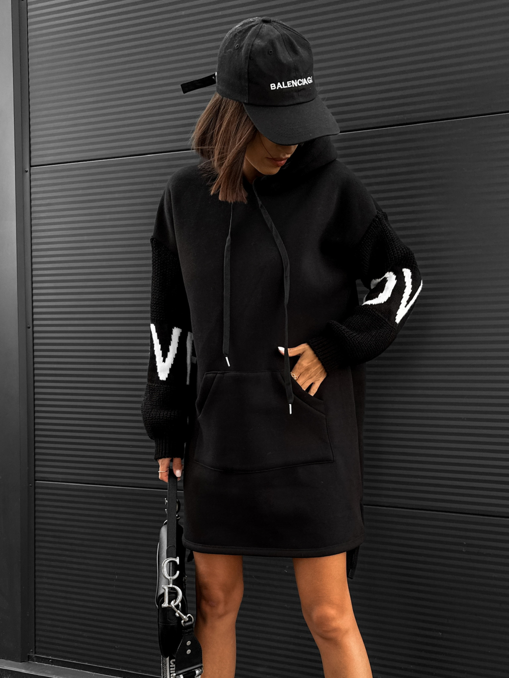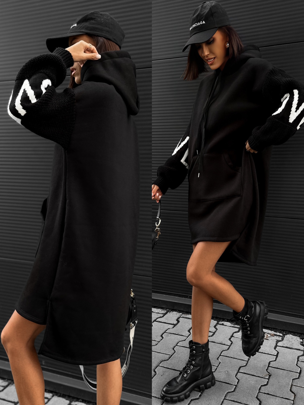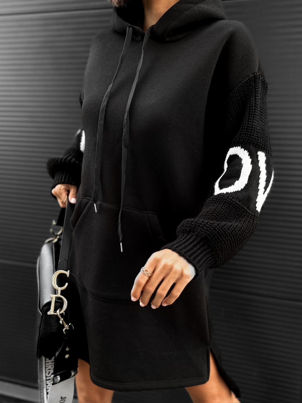Černé mikinové šaty ISHIK se svetrovými rukávy