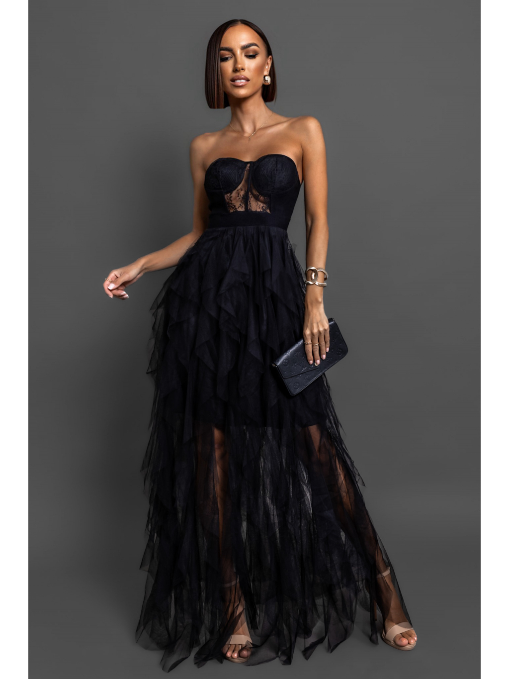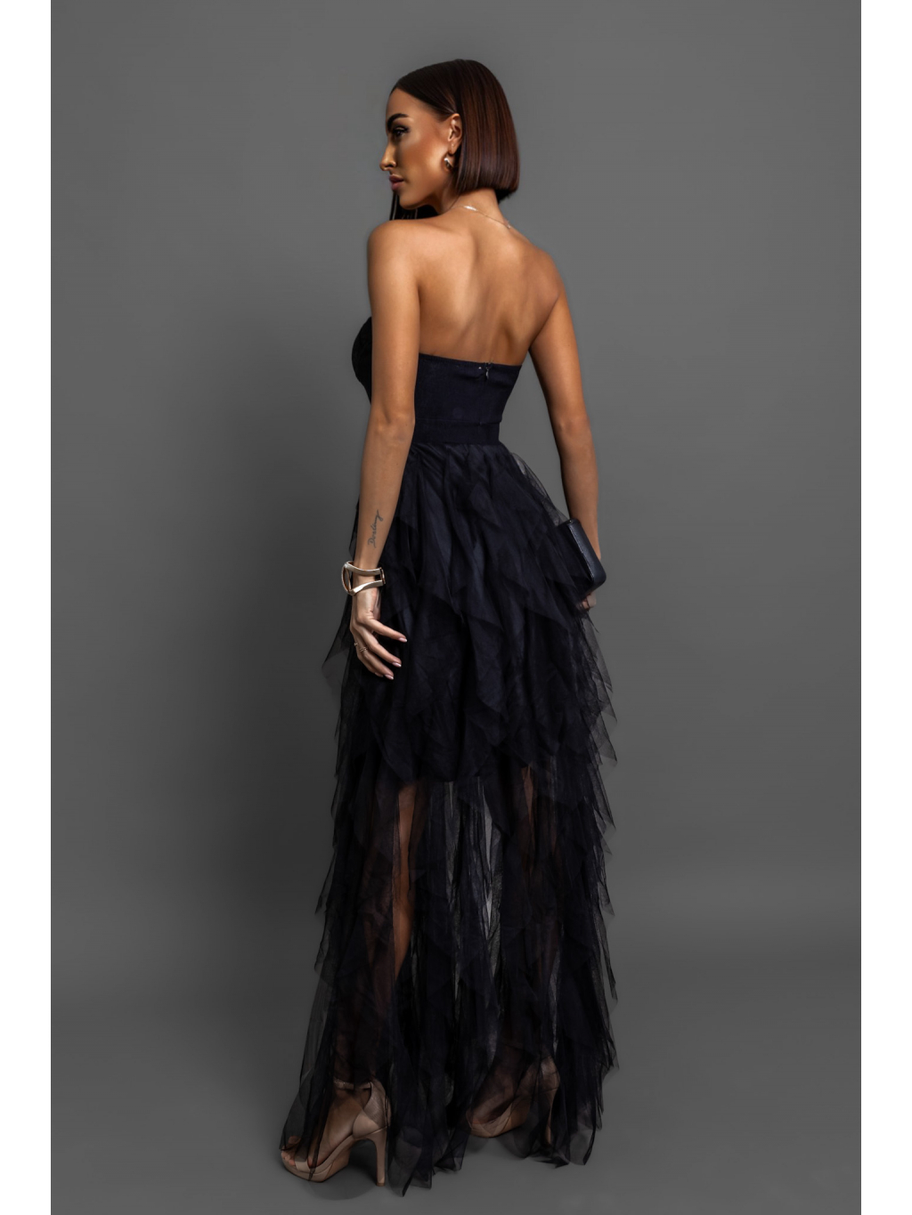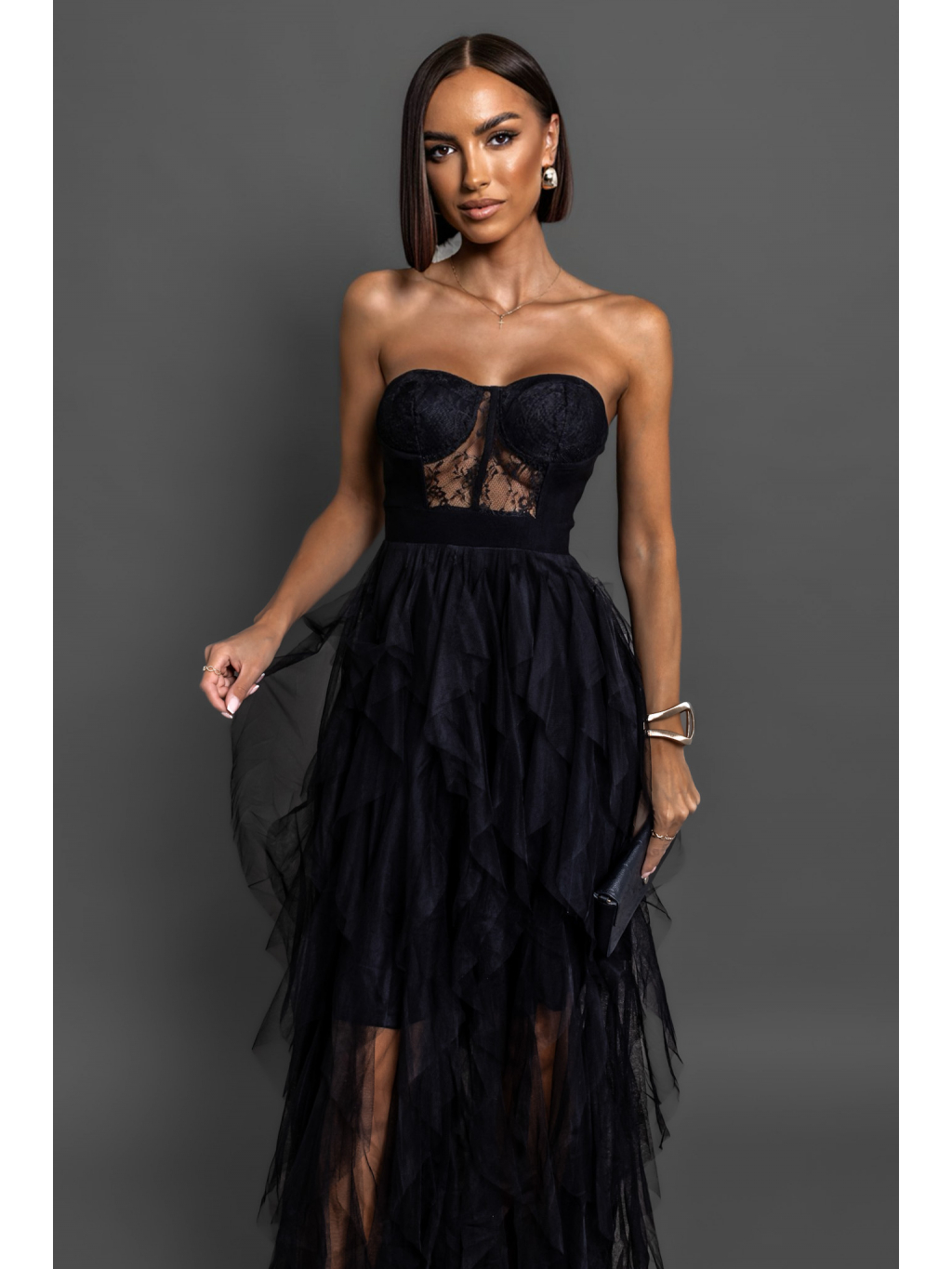 Černé plesové tylové šaty VESTA s korzetem