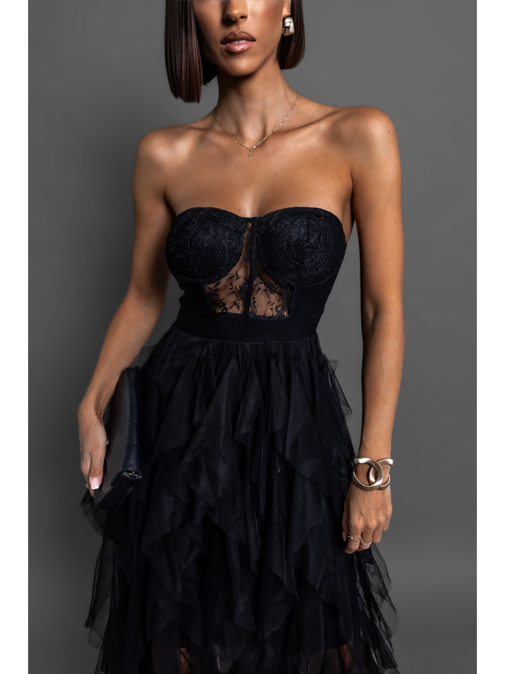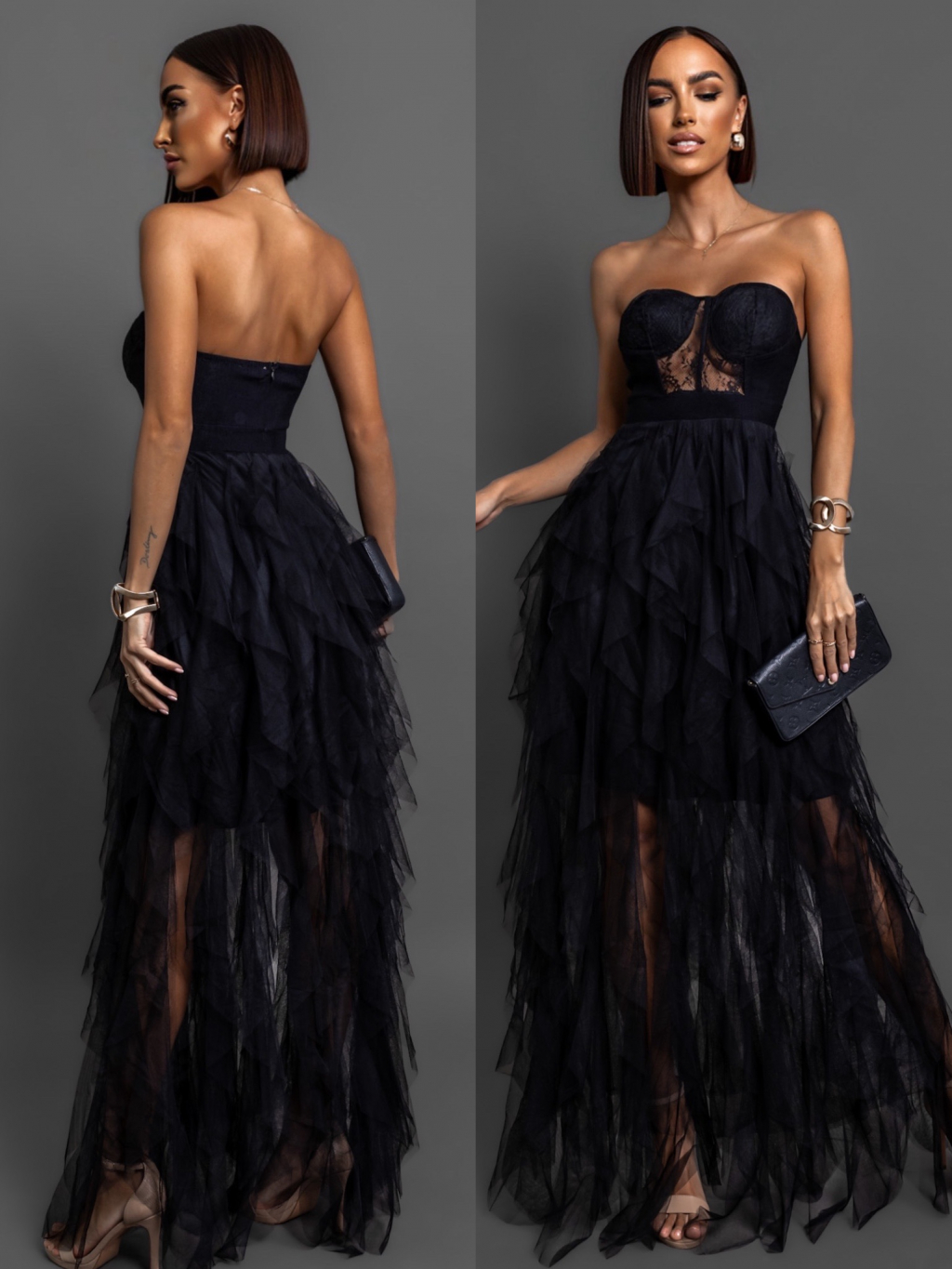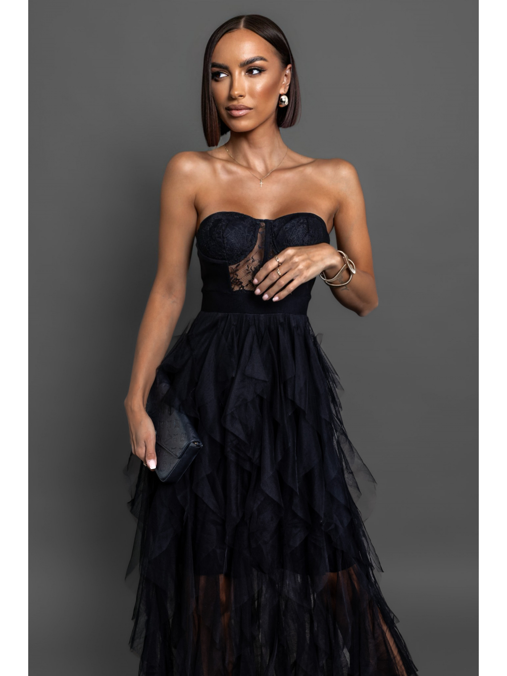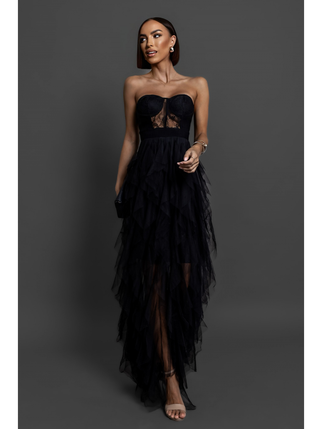 Černé plesové tylové šaty VESTA s korzetem